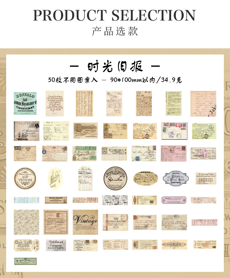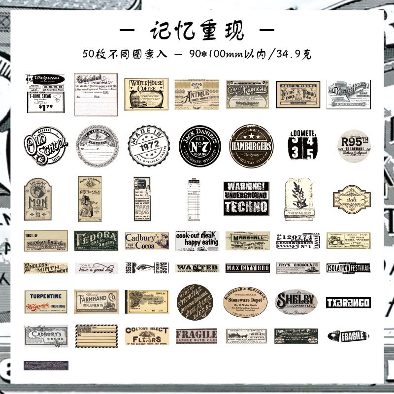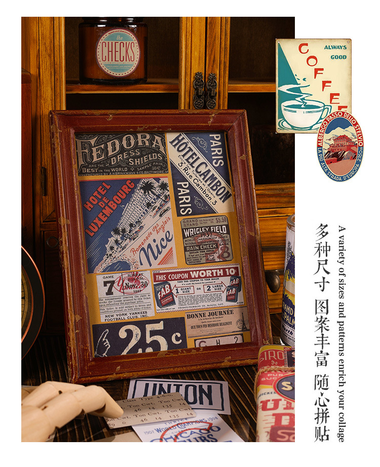 조용한 손 계정 스티커 패키지의 Yuezhen 년 예술적 복고풍 스타일 재료 장식 스티커 미국 어린이 손 계정 스티커스토어 가기