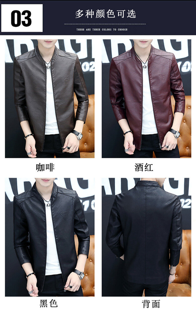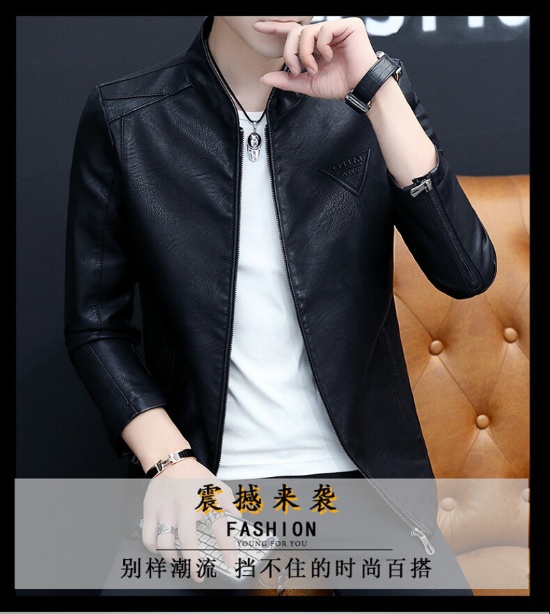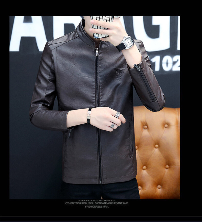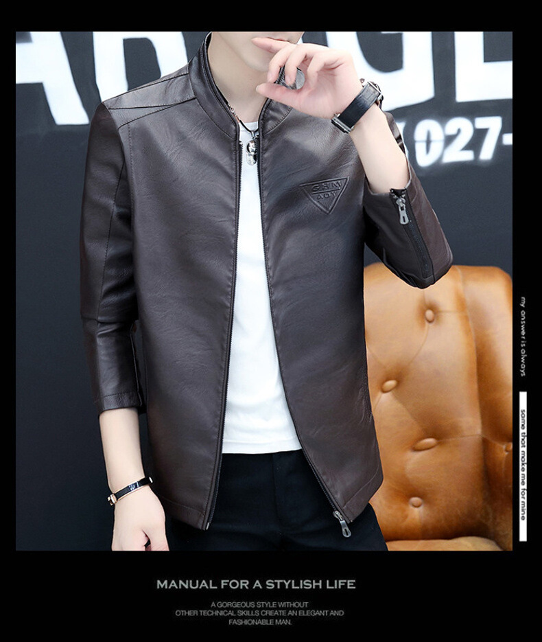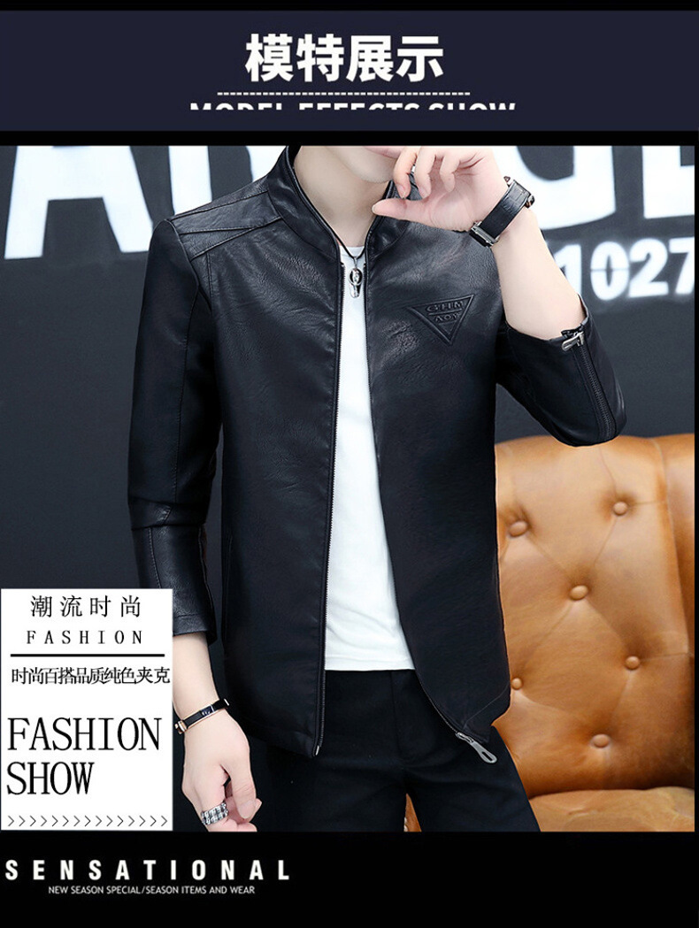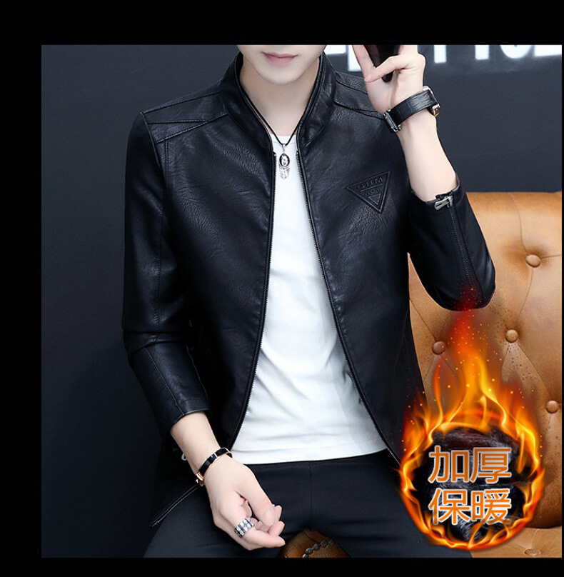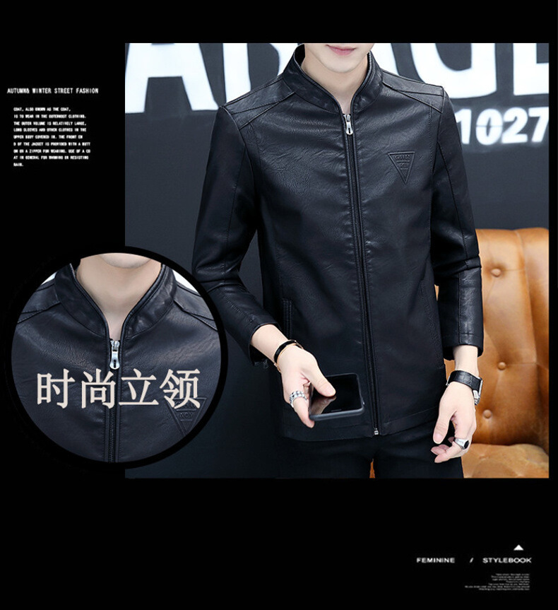 2023 가을 새 가죽 남성 자켓 청소년 스탠드 칼라 가죽 코트 캐주얼 기모 패딩 가죽 PU 가죽스토어 가기