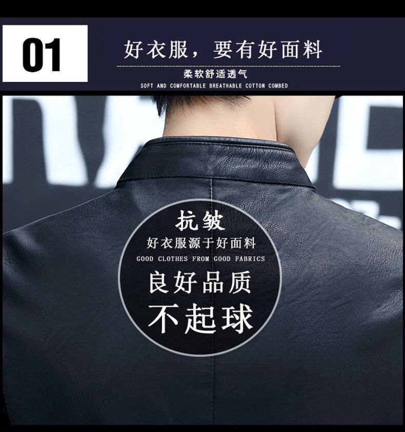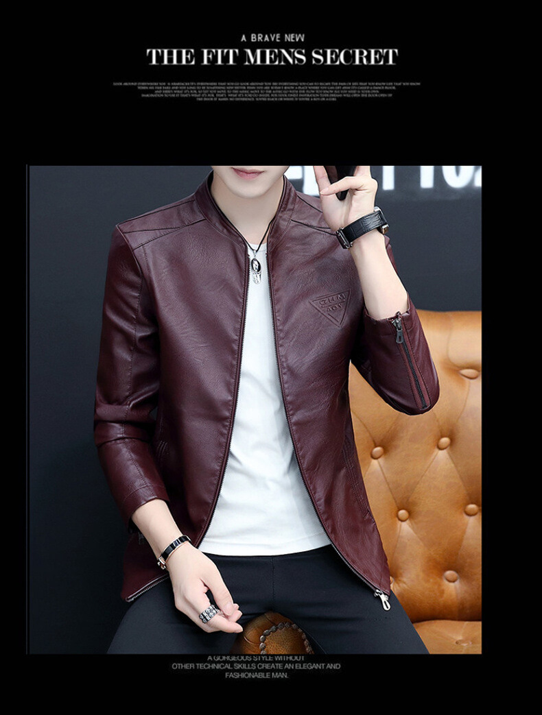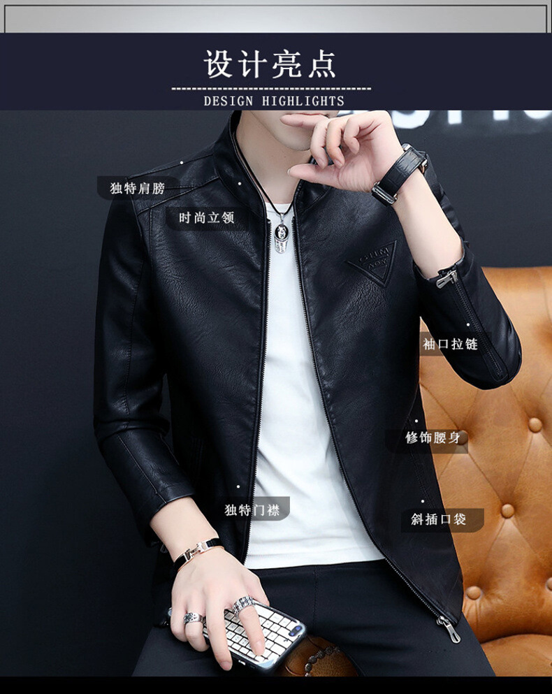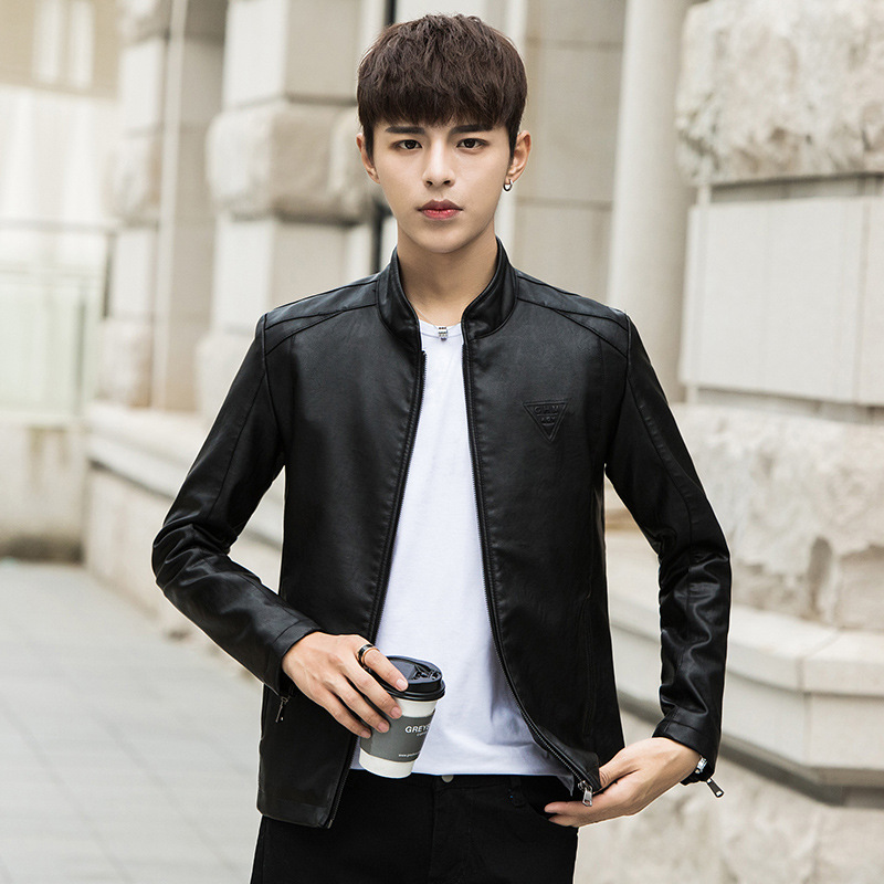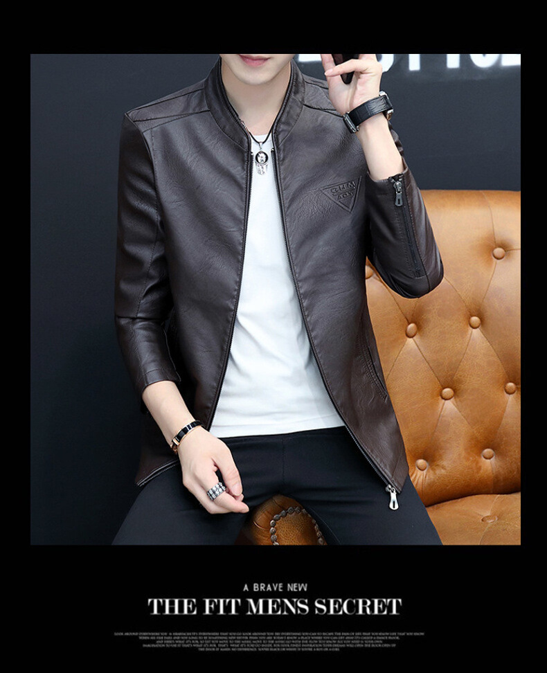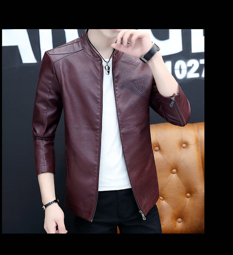 2023 가을 새 가죽 남성 자켓 청소년 스탠드 칼라 가죽 코트 캐주얼 기모 패딩 가죽 PU 가죽스토어 가기