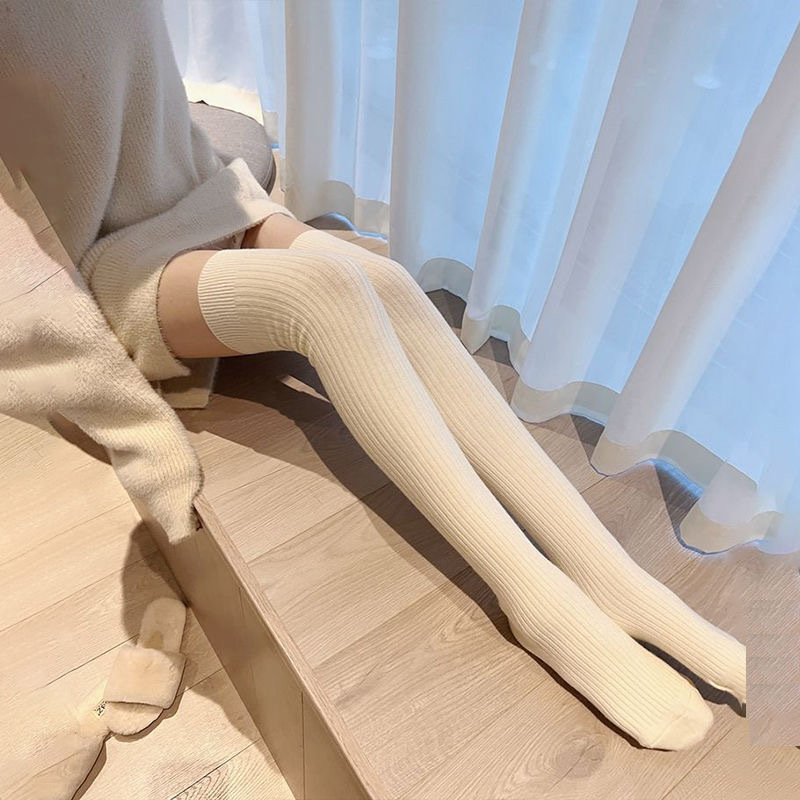 가을과 겨울 단색 무릎 양말 일본어 스위트 조커 흑백 회색 인 조수 jk 양말 공장 도매