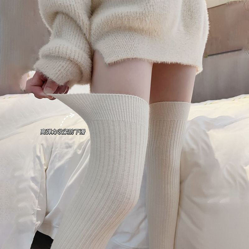 가을과 겨울 단색 무릎 양말 일본어 스위트 조커 흑백 회색 인 조수 jk 양말 공장 도매스토어 가기