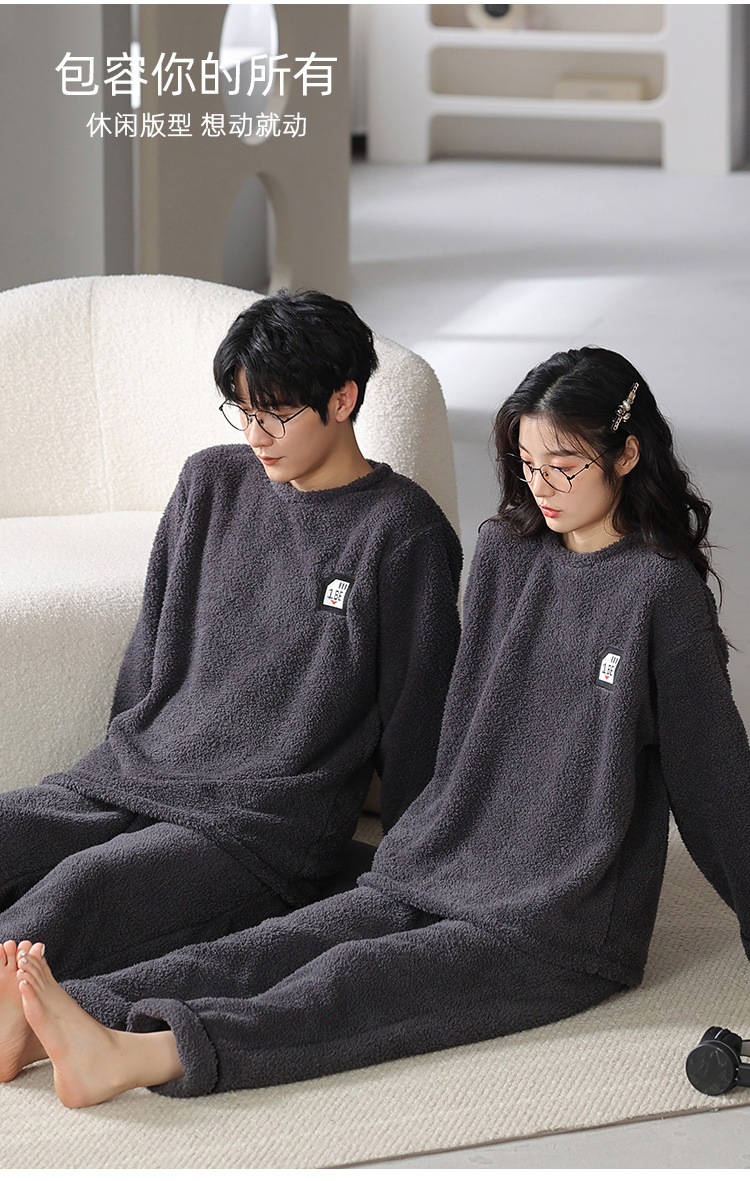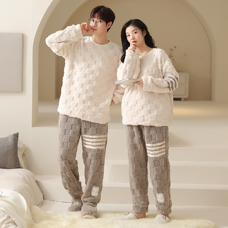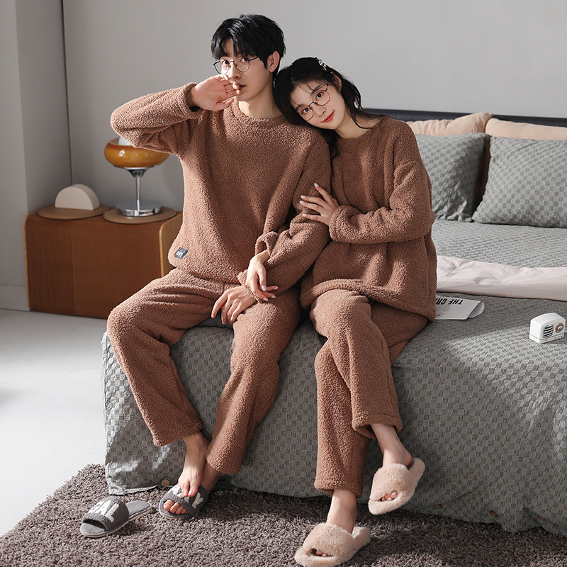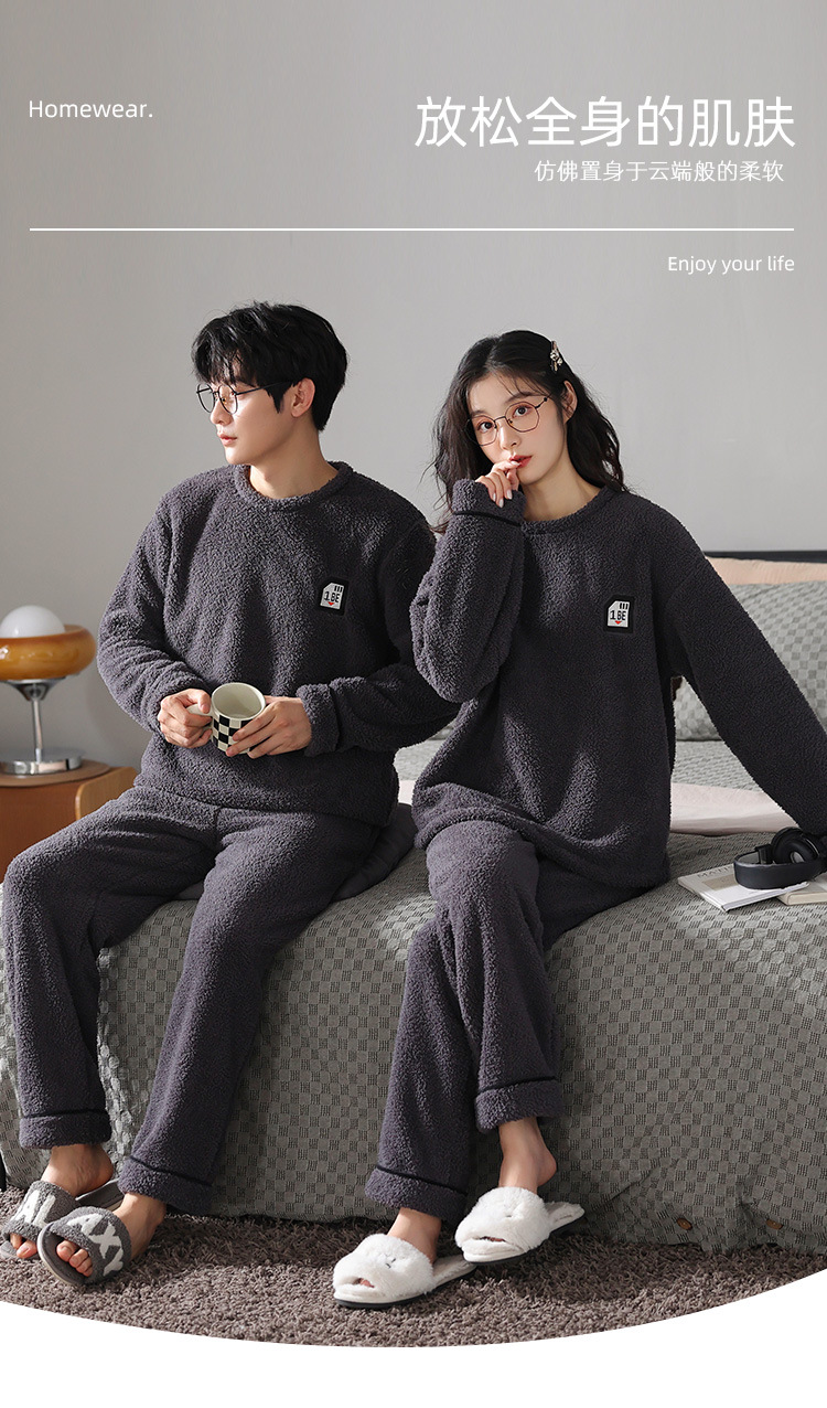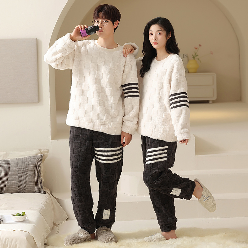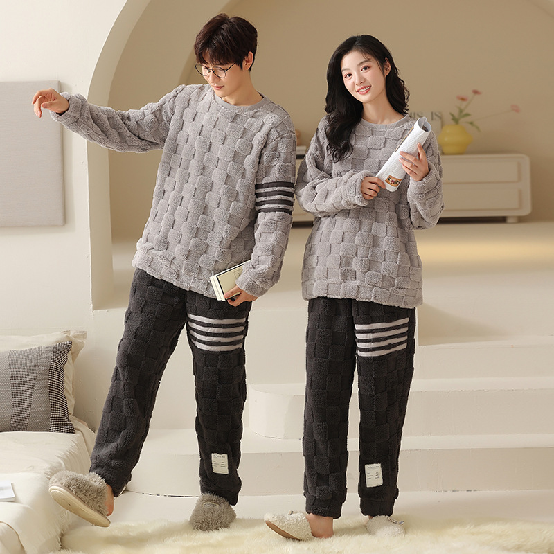 가을과 겨울 플란넬 풀오버 커플 잠옷 두꺼운 기모 긴 소매 바지 봉제 가정 의류 소년과 소녀를위한 세트