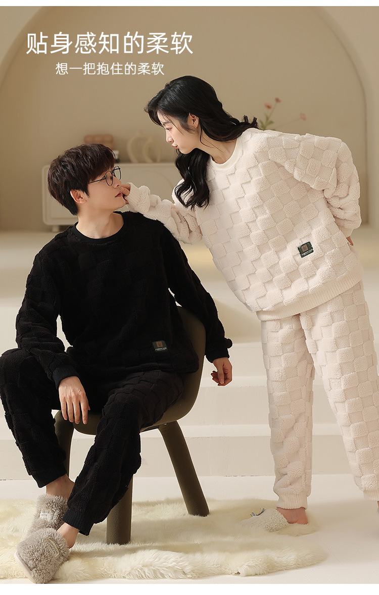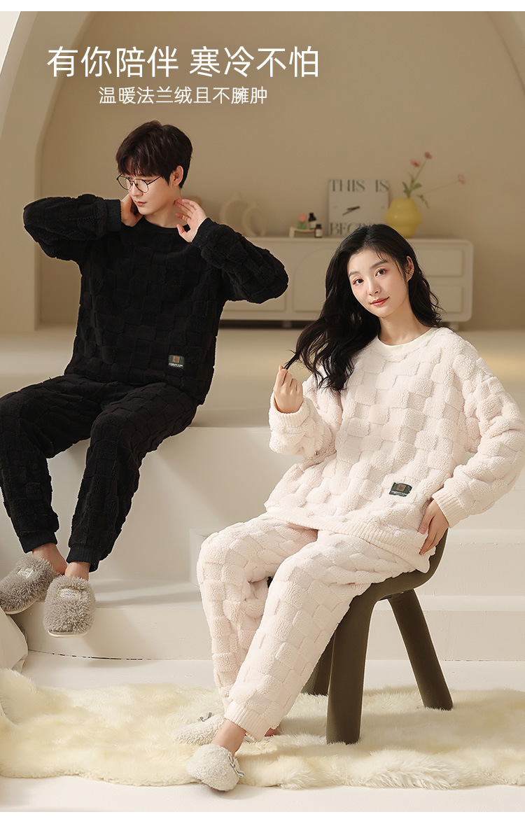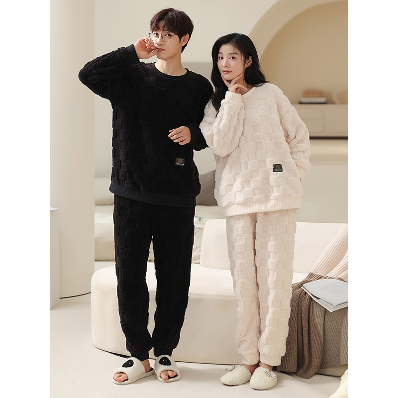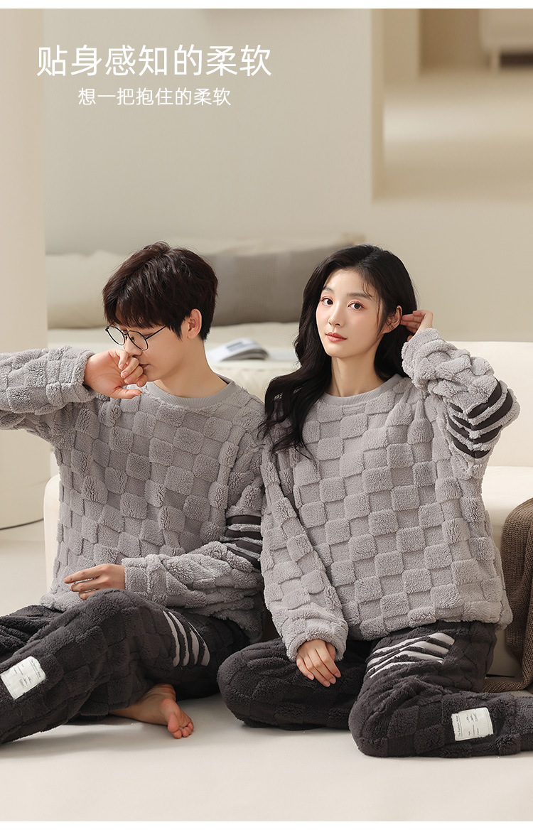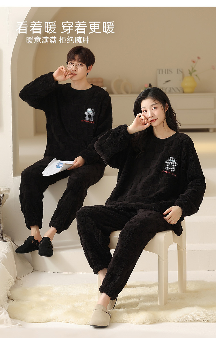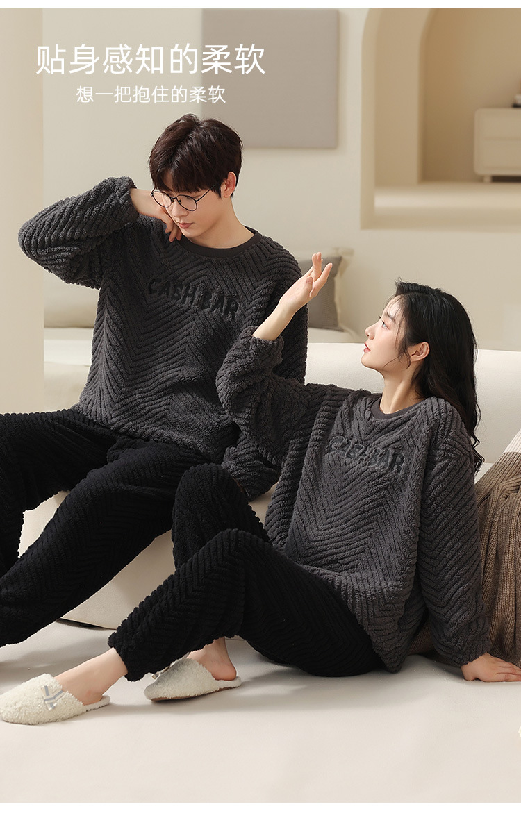 가을과 겨울 플란넬 풀오버 커플 잠옷 두꺼운 기모 긴 소매 바지 봉제 가정 의류 소년과 소녀를위한 세트
