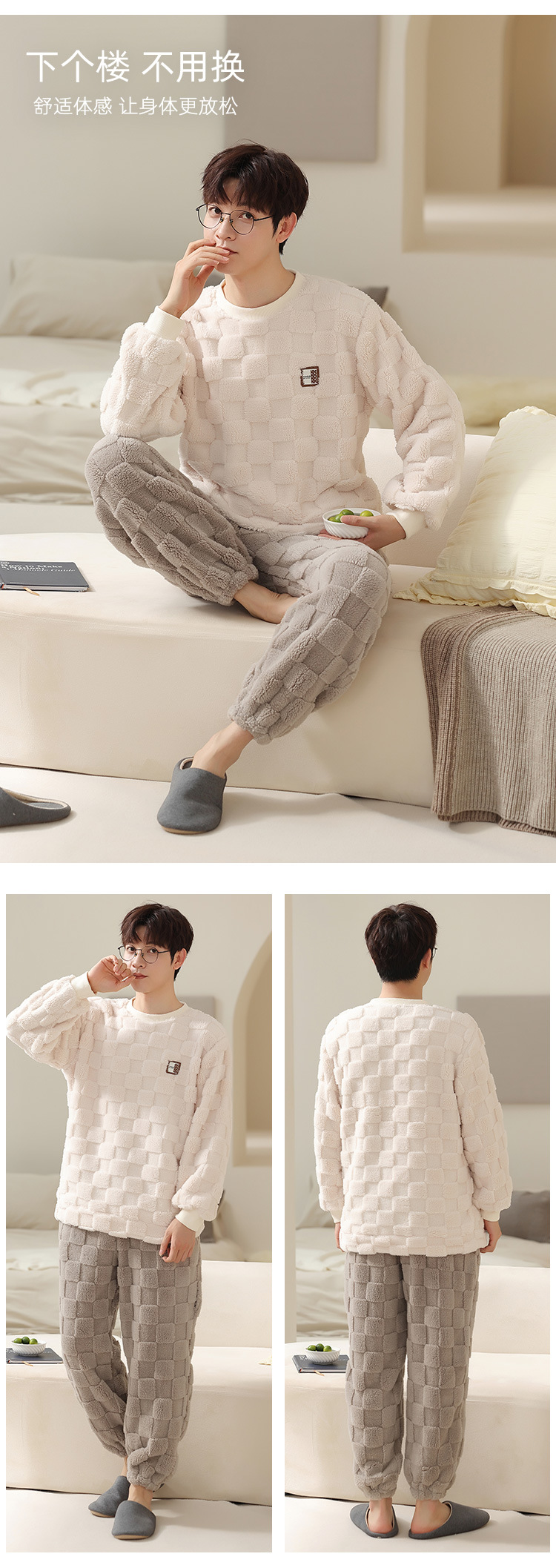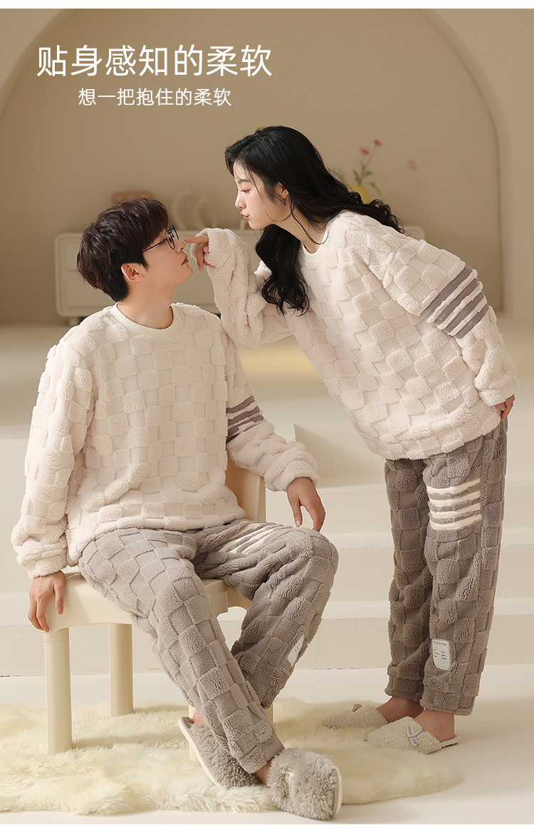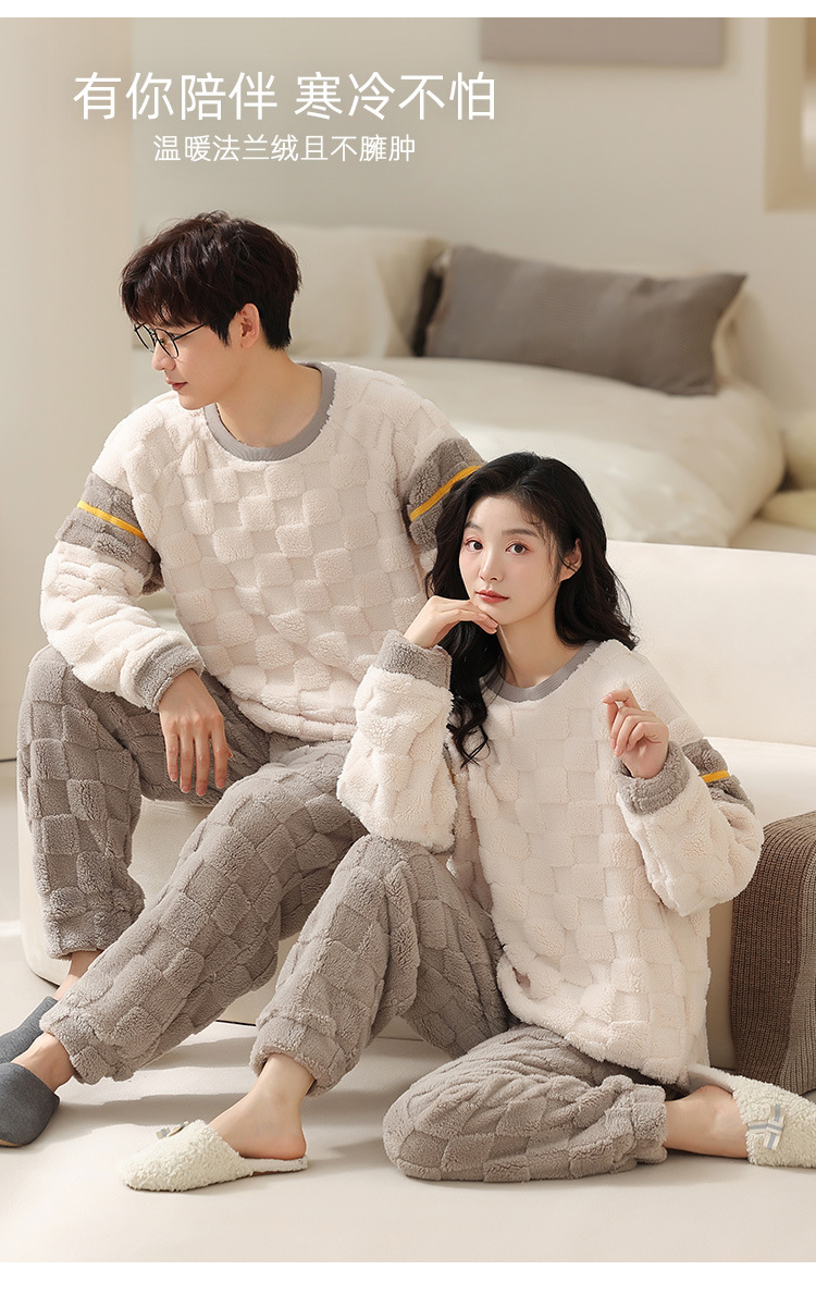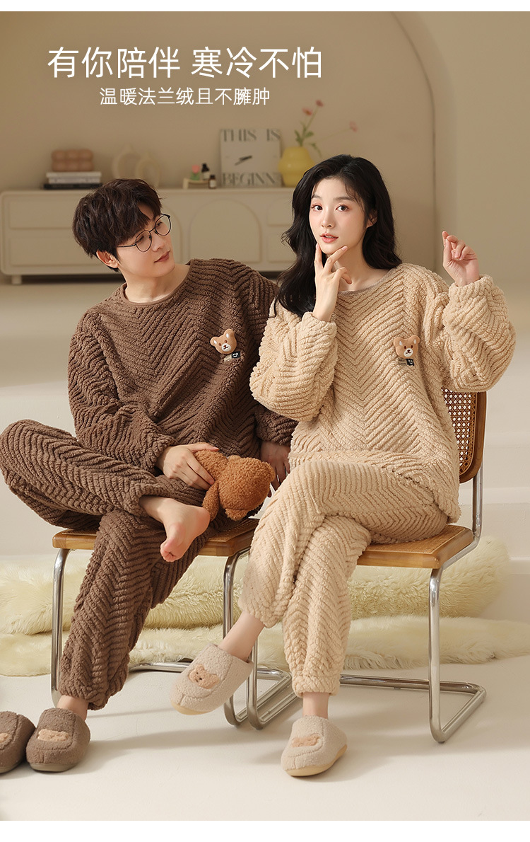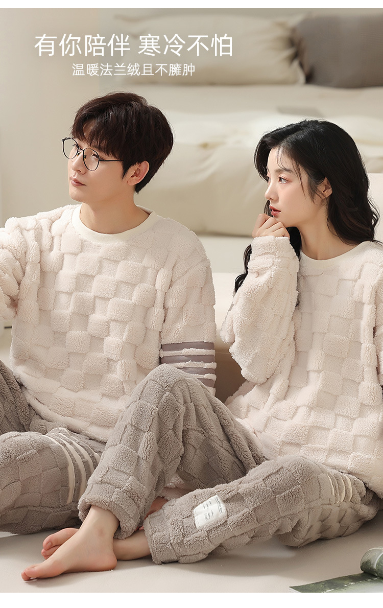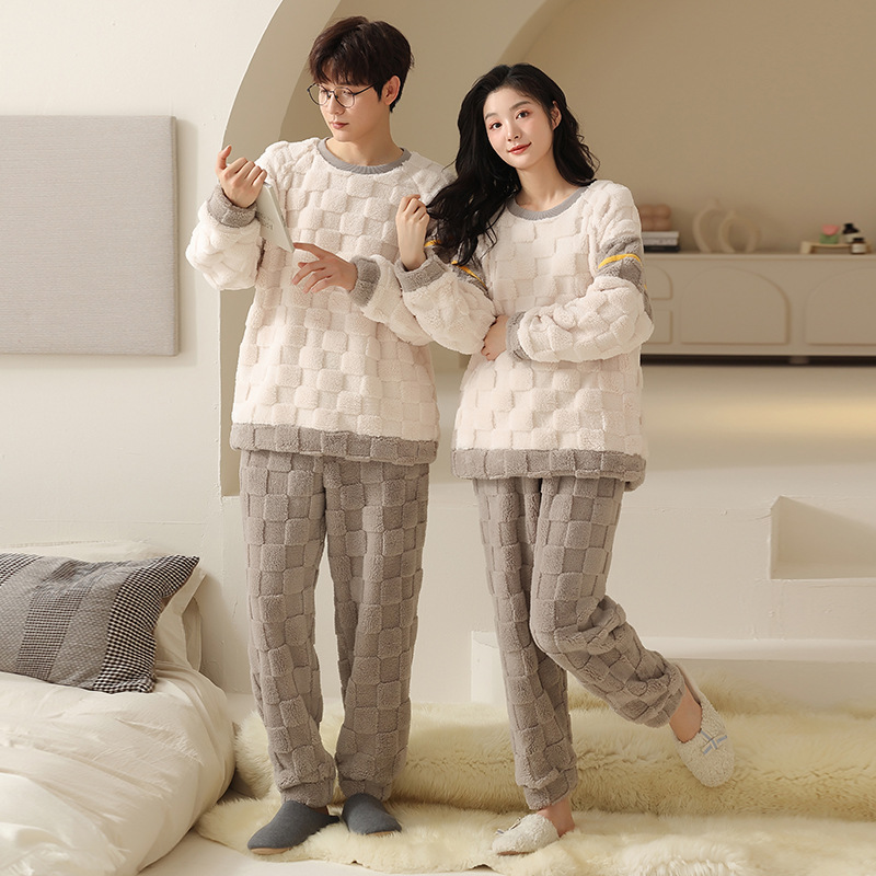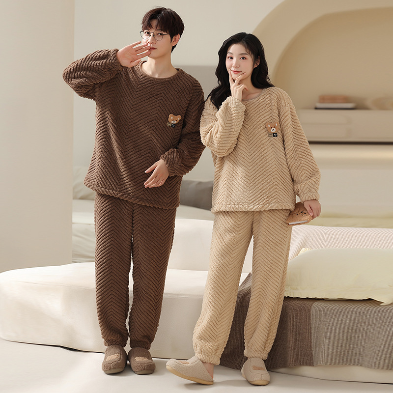 가을과 겨울 플란넬 풀오버 커플 잠옷 두꺼운 기모 긴 소매 바지 봉제 가정 의류 소년과 소녀를위한 세트스토어 가기
