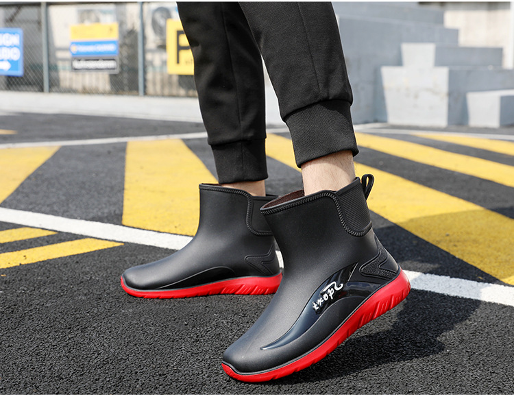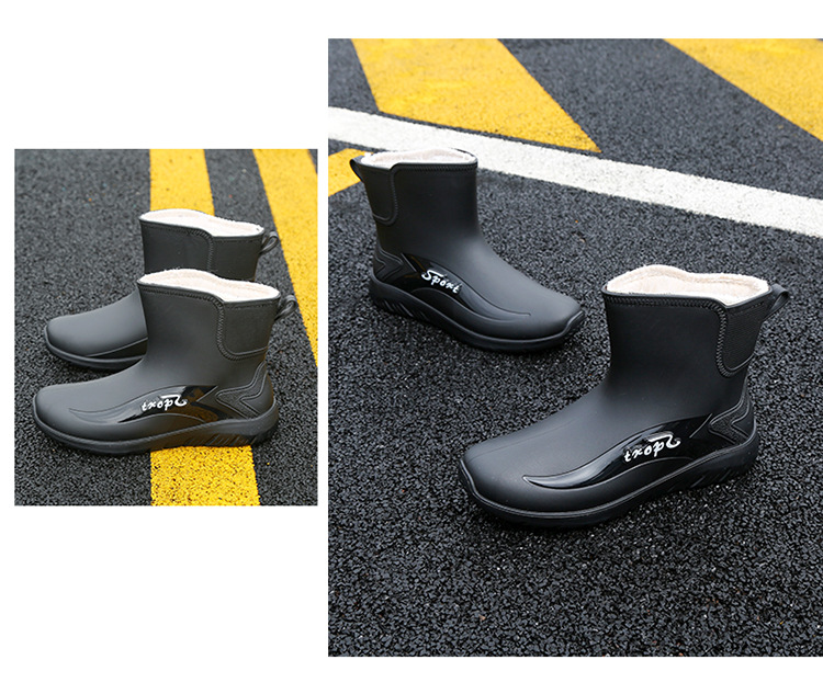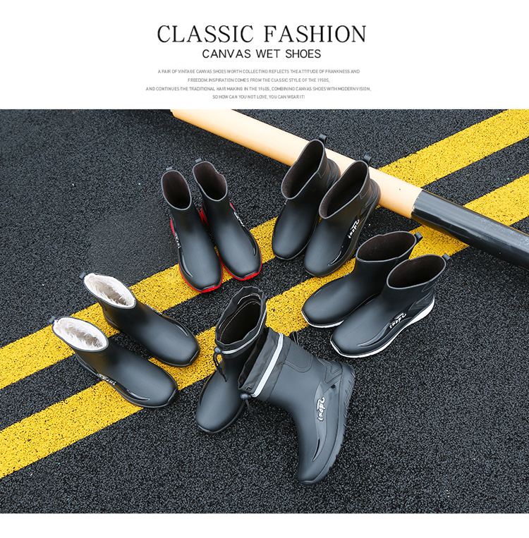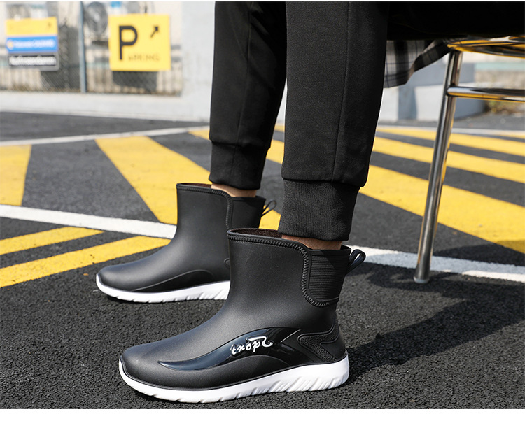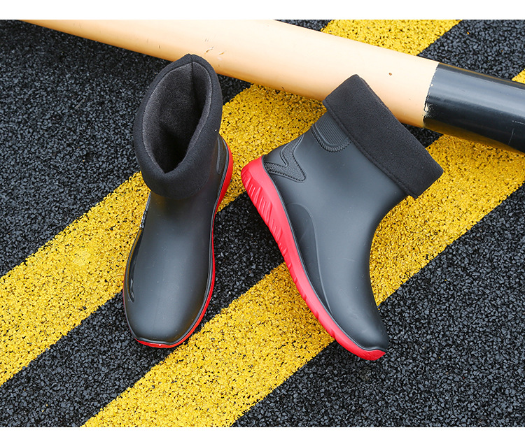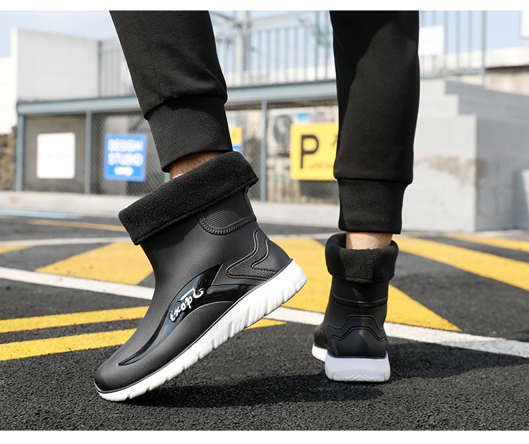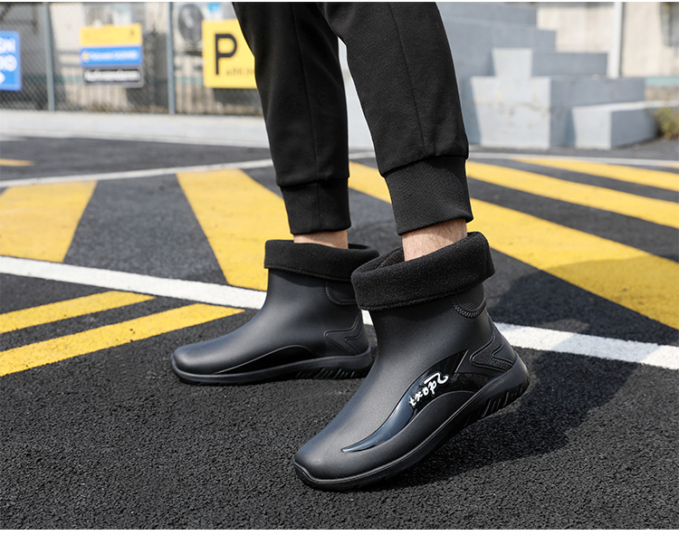 도매 레인 부츠 남자의 짧은 튜브 원피스 방수 신발 기모 따뜻한 비 부츠 주방 미끄럼 방지 고무 신발 낮은 낚시 신발스토어 가기