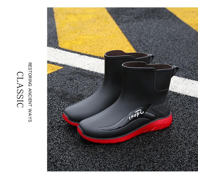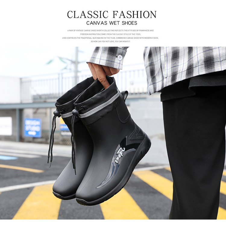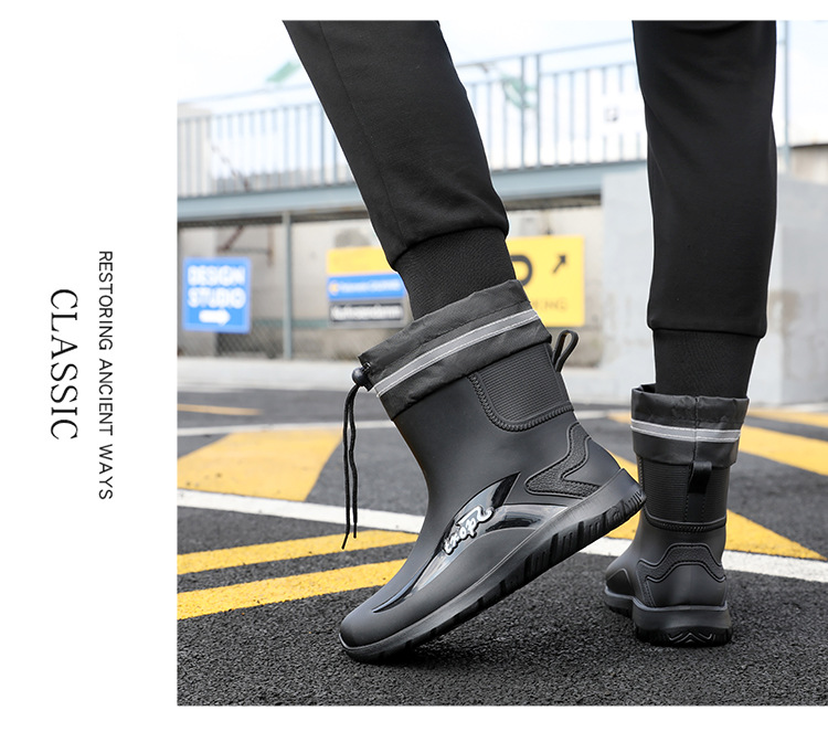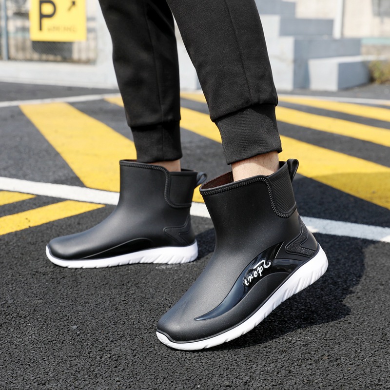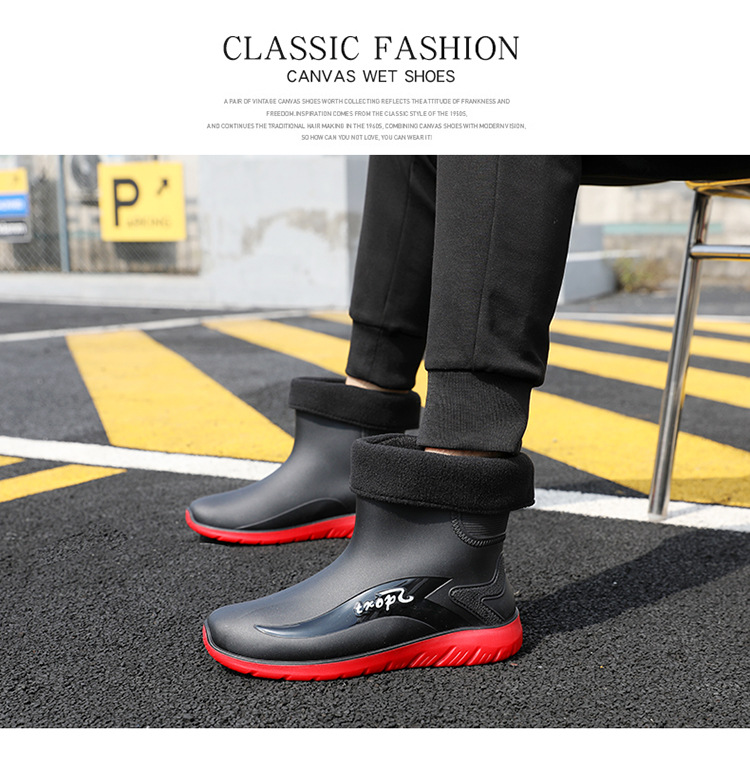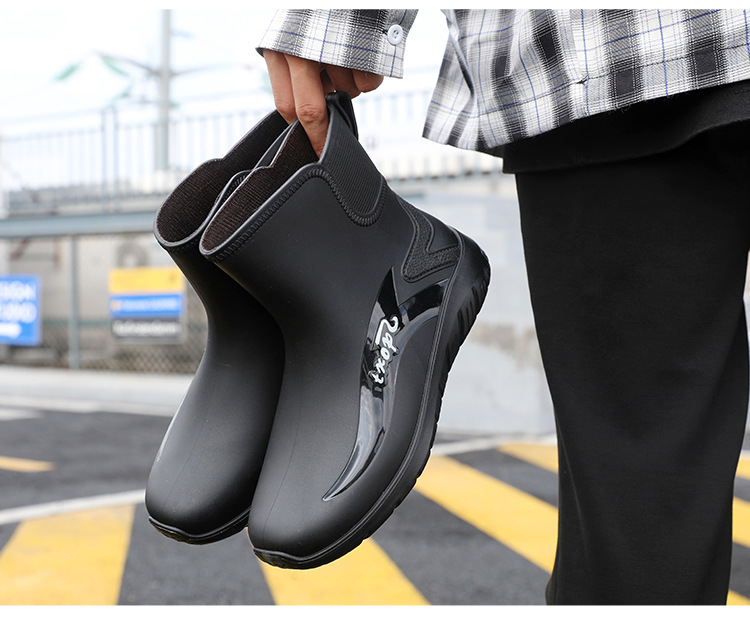 도매 레인 부츠 남자의 짧은 튜브 원피스 방수 신발 기모 따뜻한 비 부츠 주방 미끄럼 방지 고무 신발 낮은 낚시 신발스토어 가기
