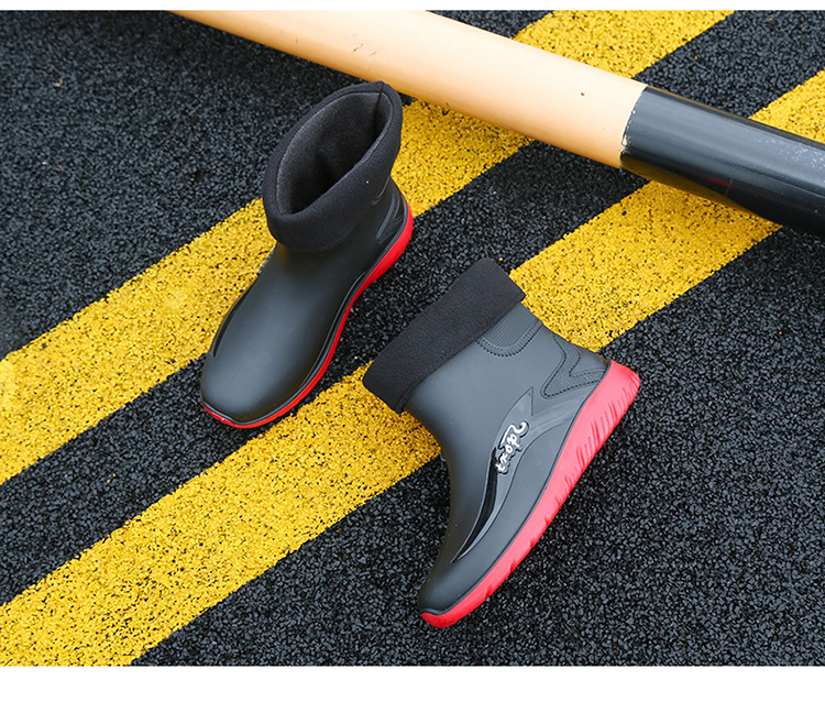 도매 레인 부츠 남자의 짧은 튜브 원피스 방수 신발 기모 따뜻한 비 부츠 주방 미끄럼 방지 고무 신발 낮은 낚시 신발