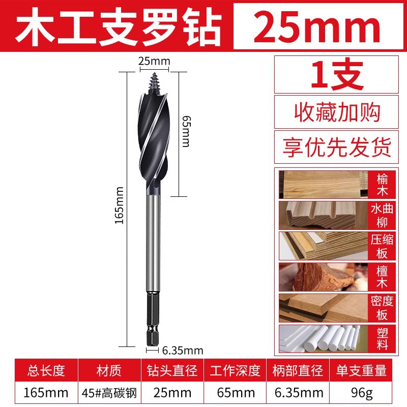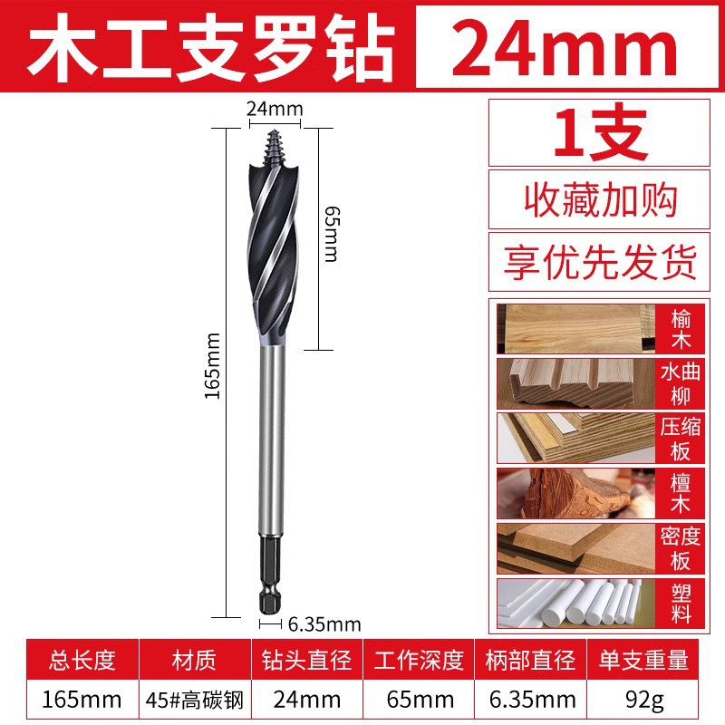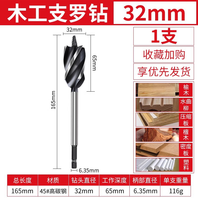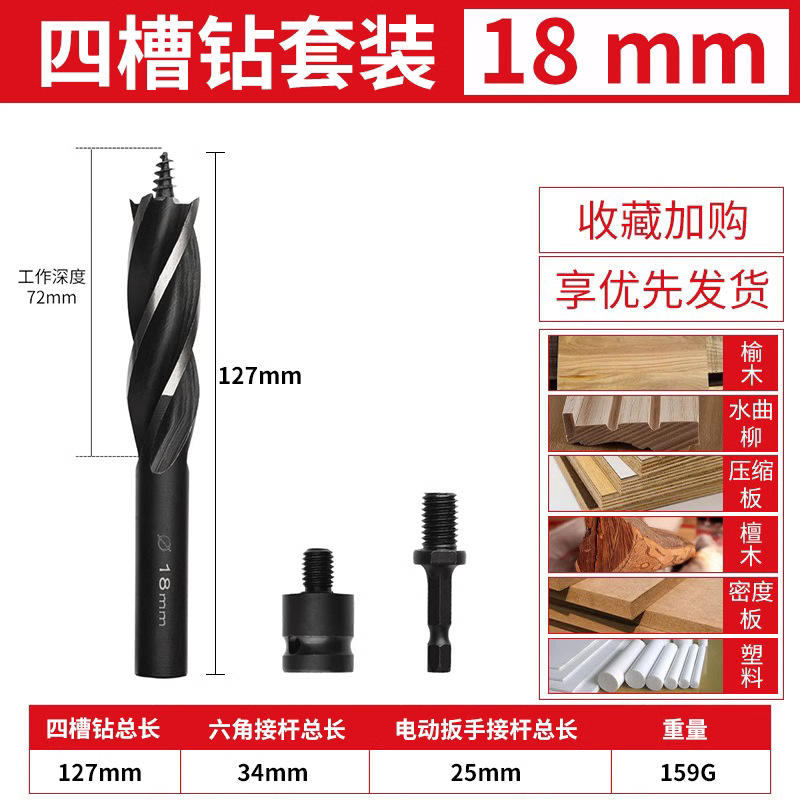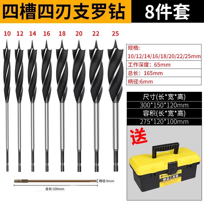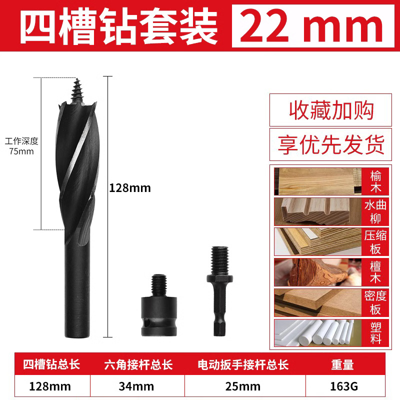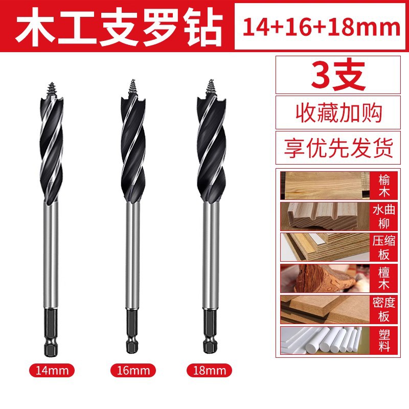 목공 분기 드릴 4 홈 4 블레이드 목공 드릴 길어진 육각 핸들 도어 잠금 서랍 구멍 리머 드릴 구멍 오프너
