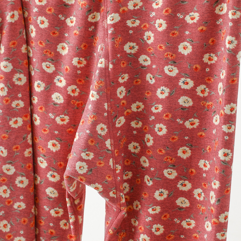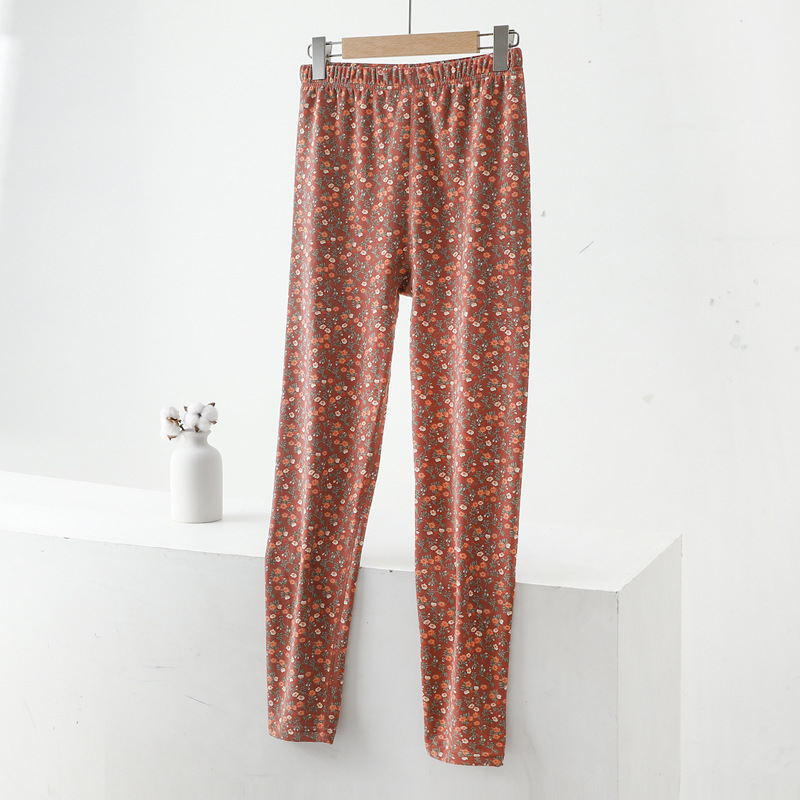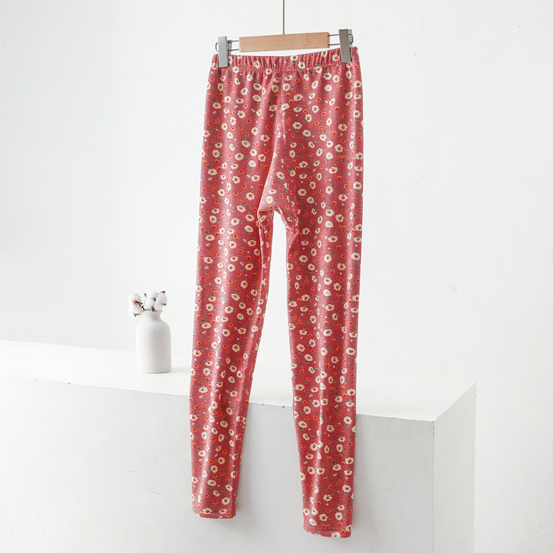 가을 겨울 여성용 DeRong 꽃무늬 레깅스, 벨벳과 두꺼운 색상의 따뜻한 바지, 가을 바지, 벨벳 바지