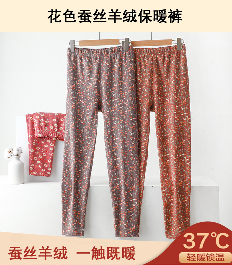 가을 겨울 여성용 DeRong 꽃무늬 레깅스, 벨벳과 두꺼운 색상의 따뜻한 바지, 가을 바지, 벨벳 바지스토어 가기