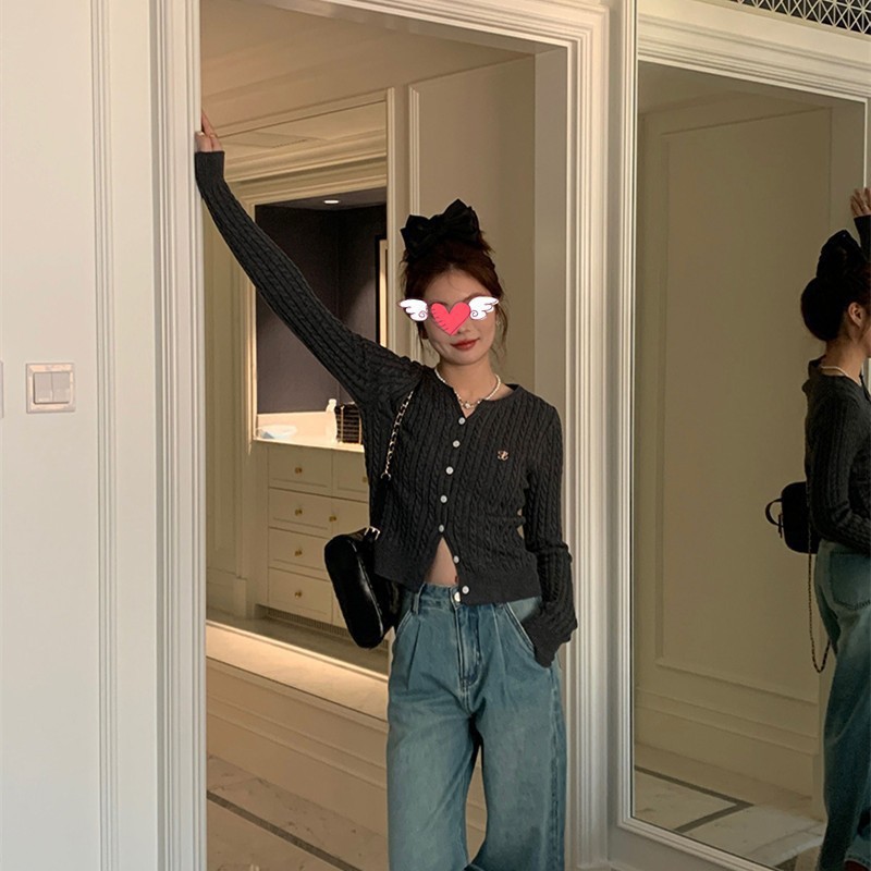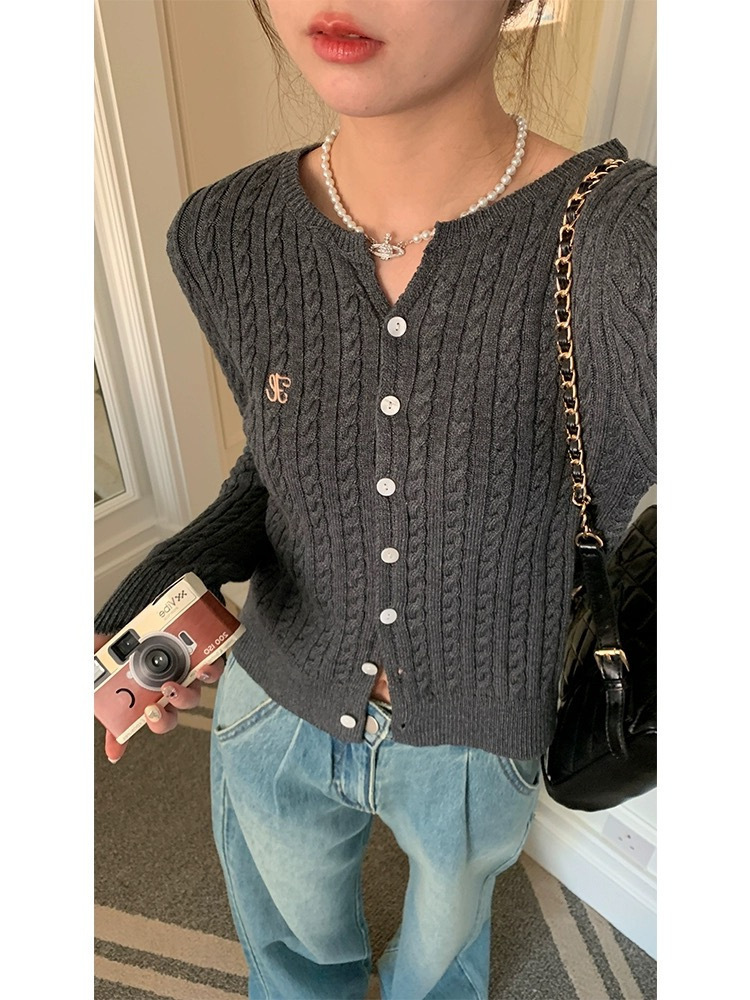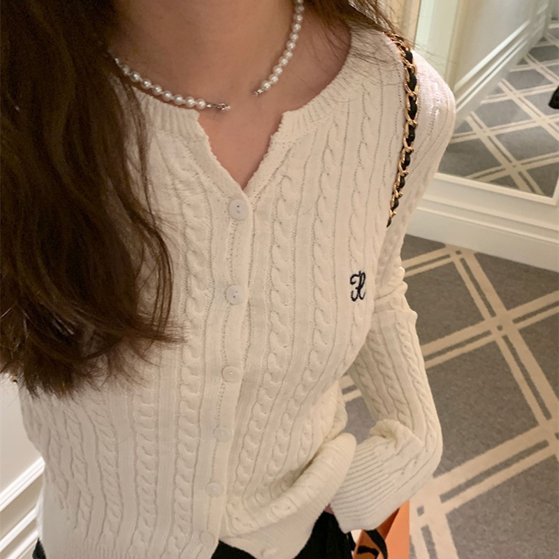 가을과 겨울 니트 스웨터 멀티 컬러 트위스트 코트 니트 작은 가디건 게으른 패션 편지 자수 패션 싱글웨어스토어 가기