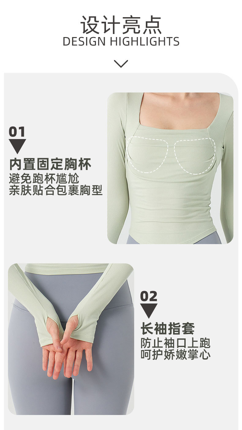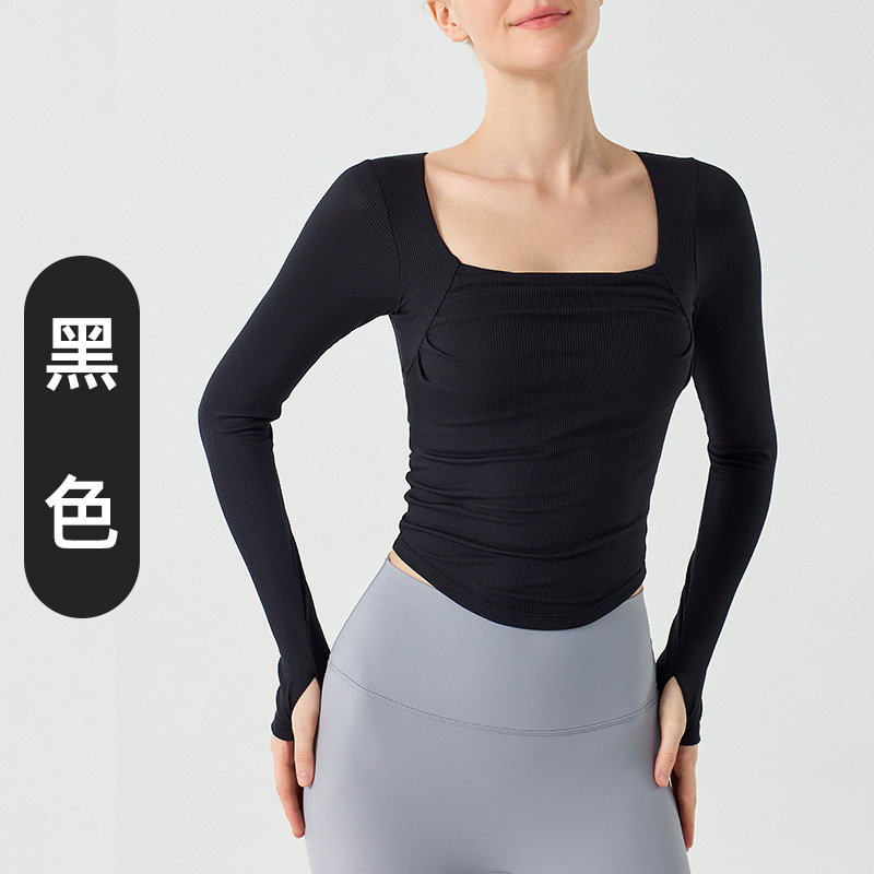 가을 새로운 립 요가 옷 긴팔 여성 고정 컵 슬림 허리 주름 스포츠 티셔츠 피트니스 탑 여성스토어 가기