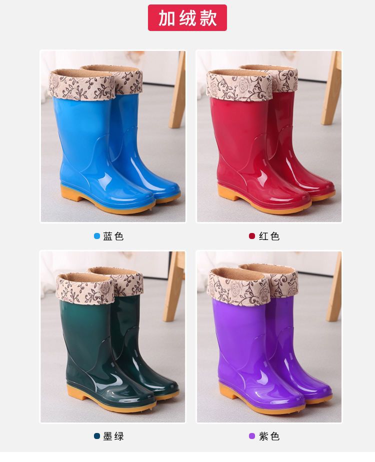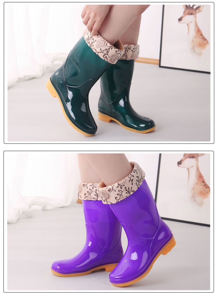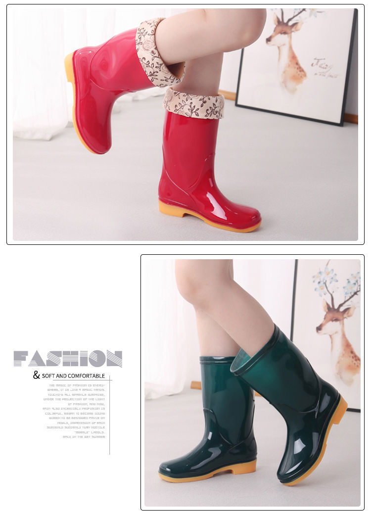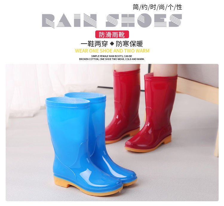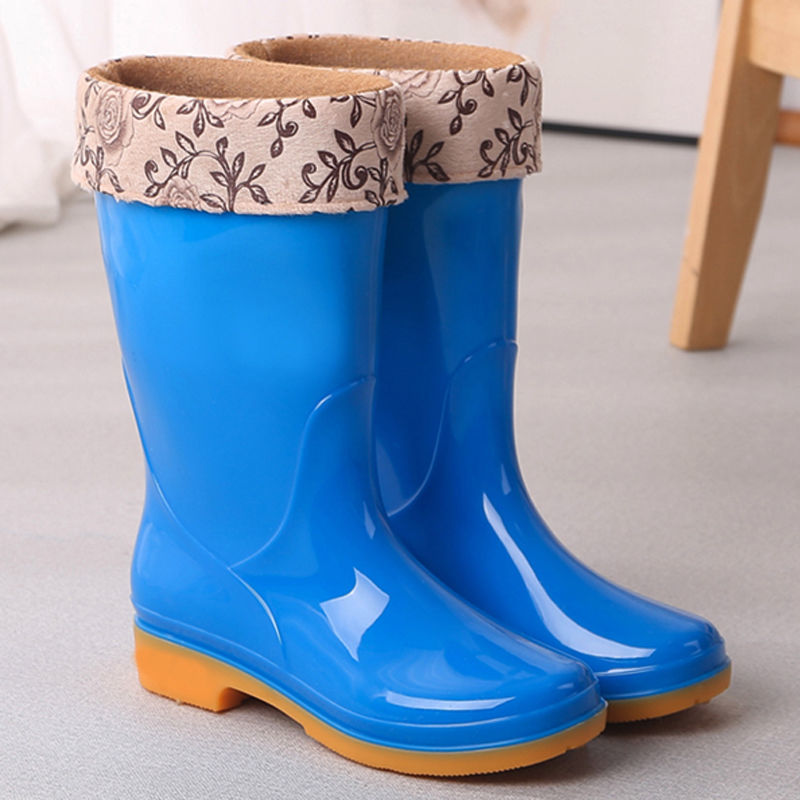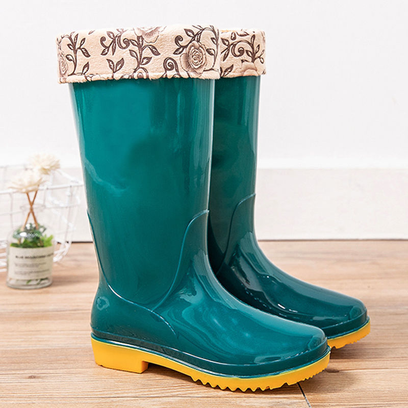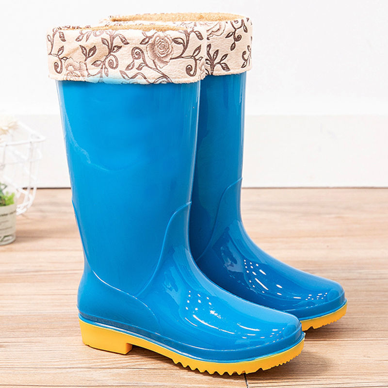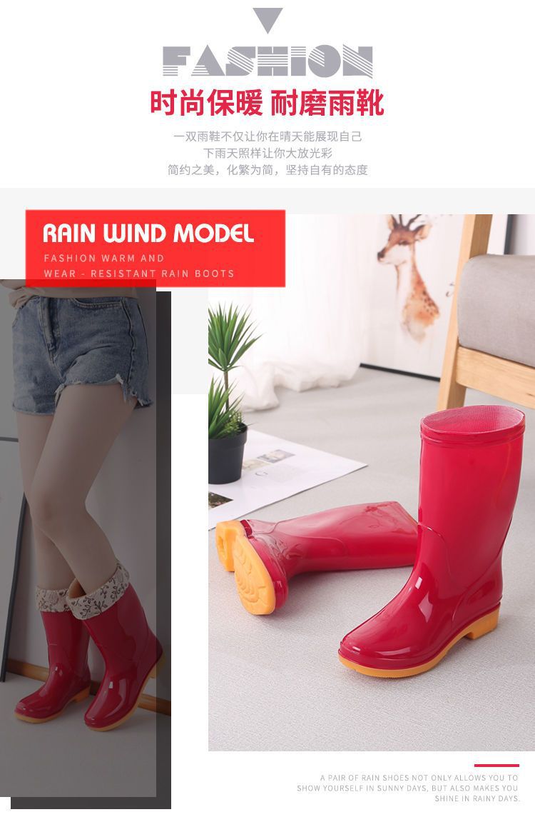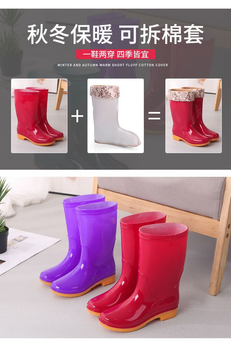 새로운 숙녀 성인 레인 부츠 높은 튜브 미드 튜브 방수 미끄럼 방지 고무 신발 면화 따뜻한 주방 세차 작업 레인 부츠