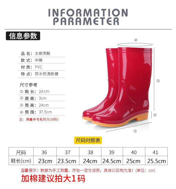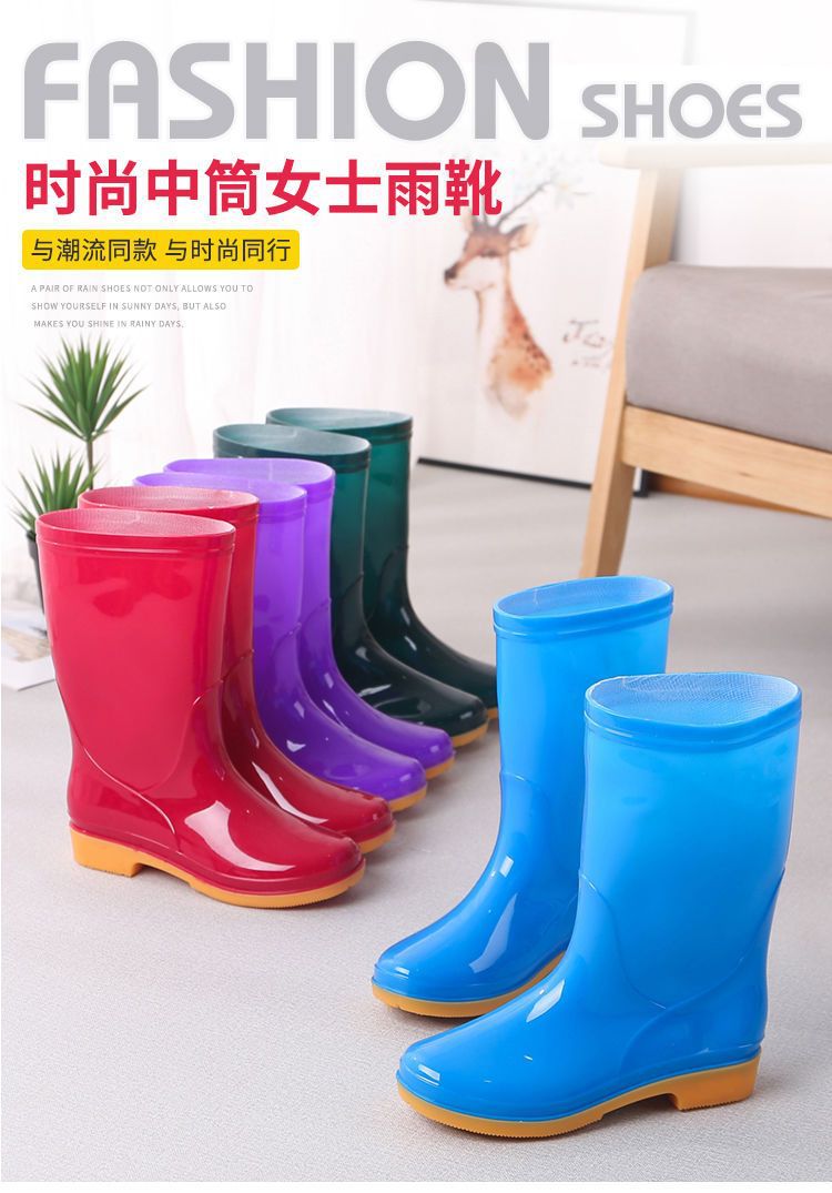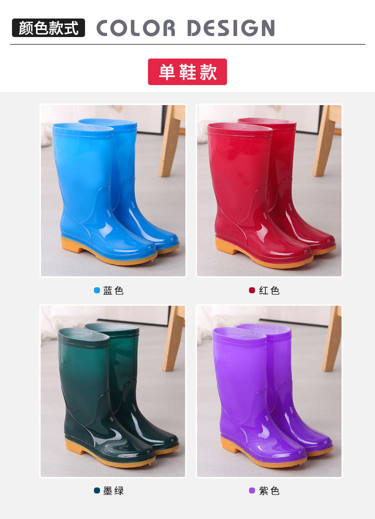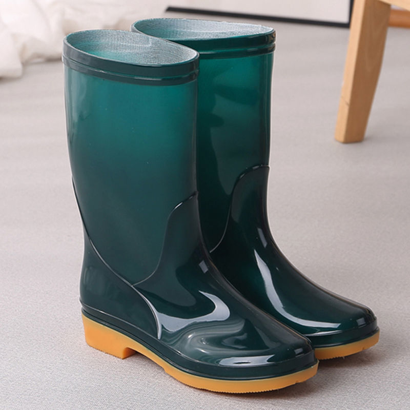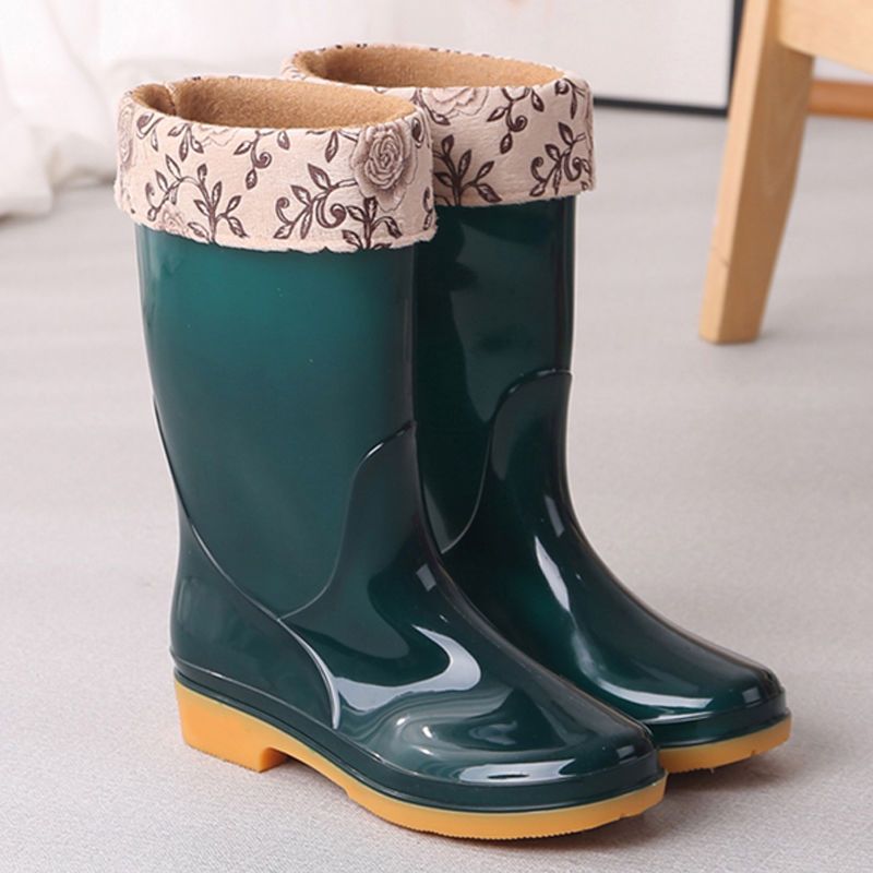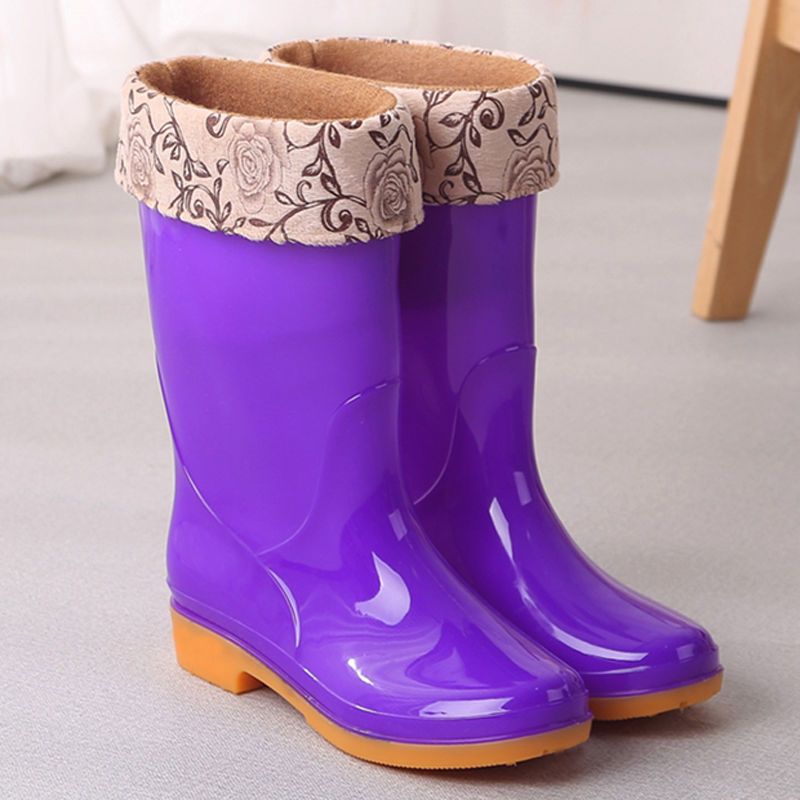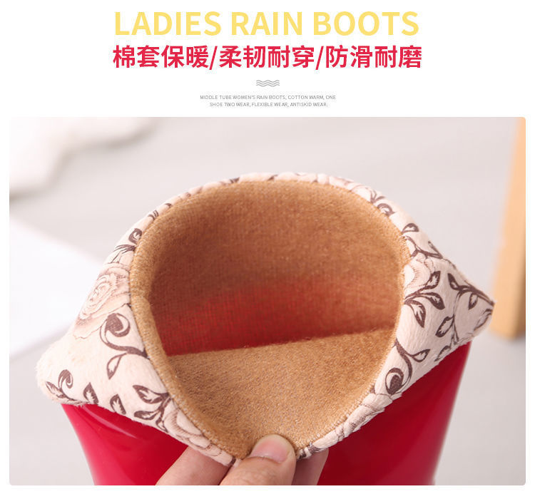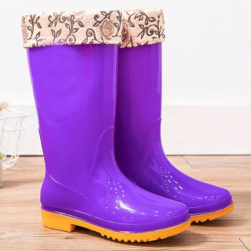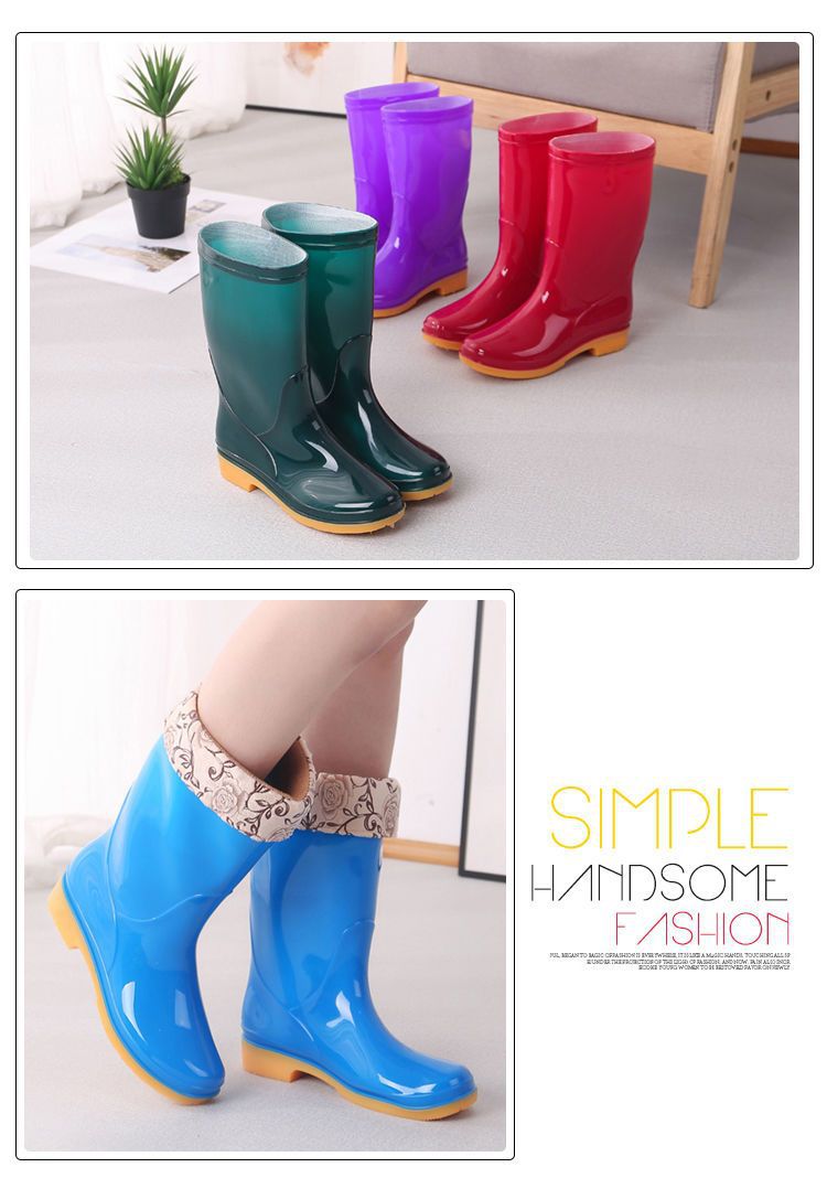 새로운 숙녀 성인 레인 부츠 높은 튜브 미드 튜브 방수 미끄럼 방지 고무 신발 면화 따뜻한 주방 세차 작업 레인 부츠