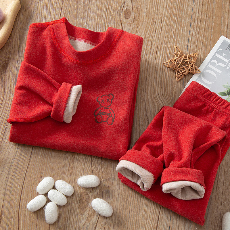 가을/겨울 어린이 열 속옷 새로운 캐시미어 실크 가정 의류 세트 100-180 어린이 청소년 의류스토어 가기