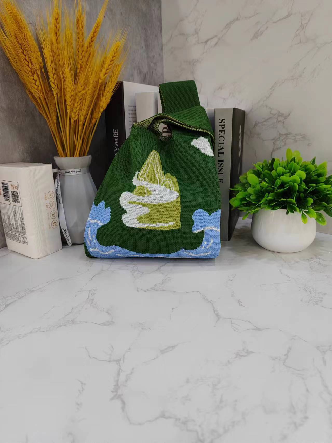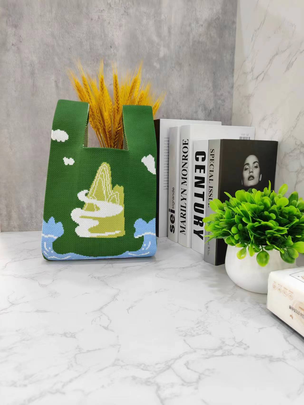 03 새로운 꽃 줄무늬 니트 휴대용 어깨 가방 모든 경기 패션 브레이크 트렌디 한 가방 크로스 바디 백스토어 가기