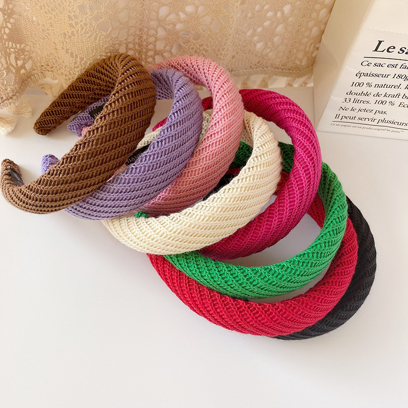 가을과 겨울 새 울 니트 와이드 브림 스폰지 하이 두개골 탑 헤드밴드 우아한 모든 매치 캔디 컬러 헤드밴드 프레스 헤어 액세서리스토어 가기