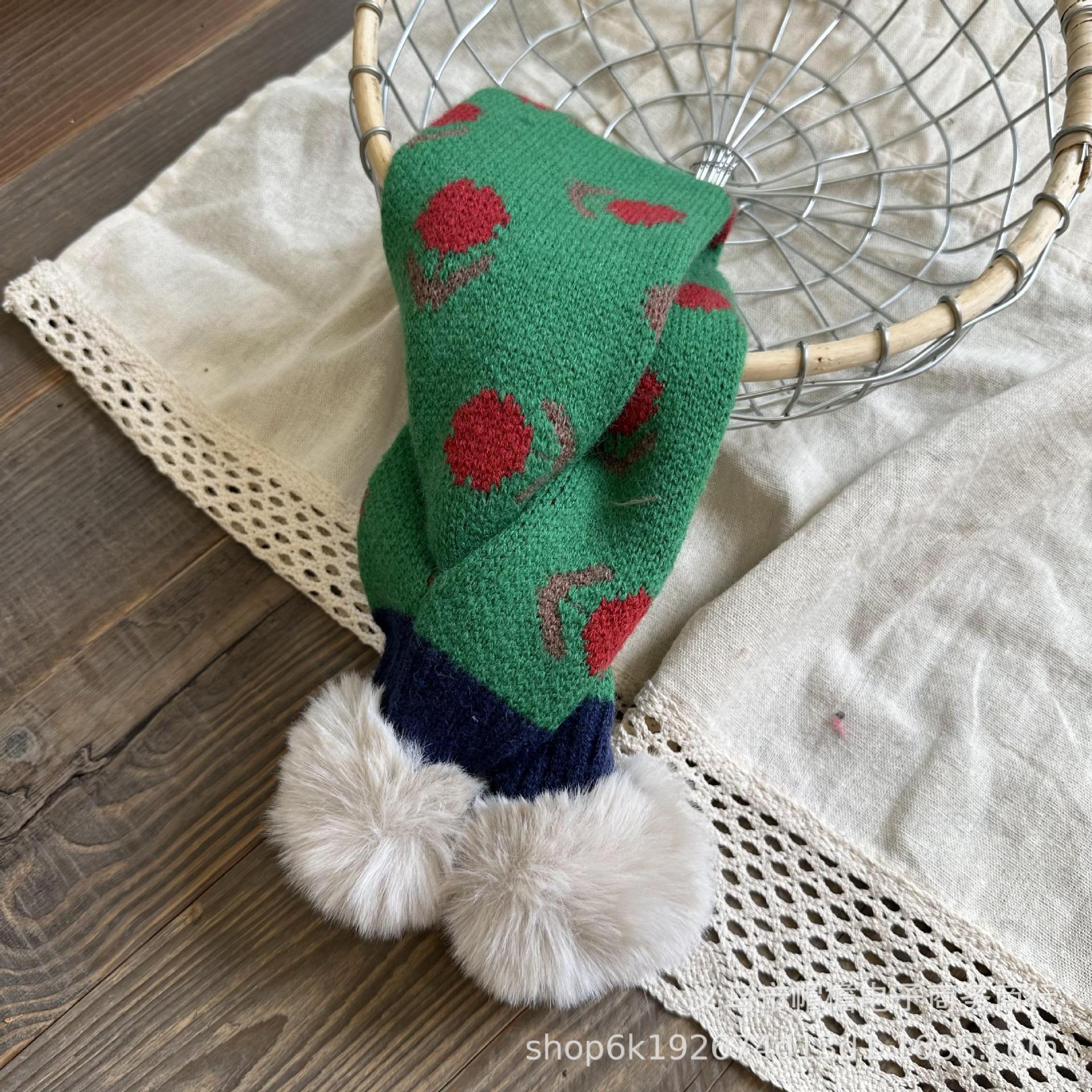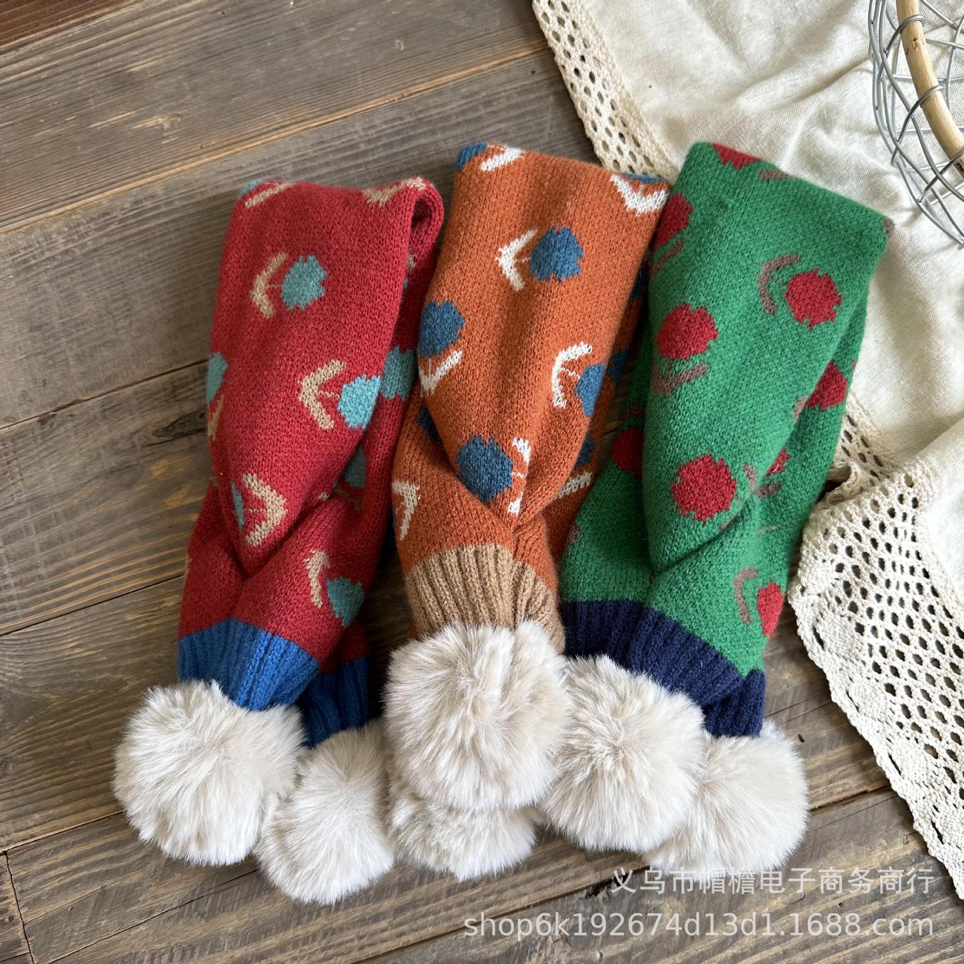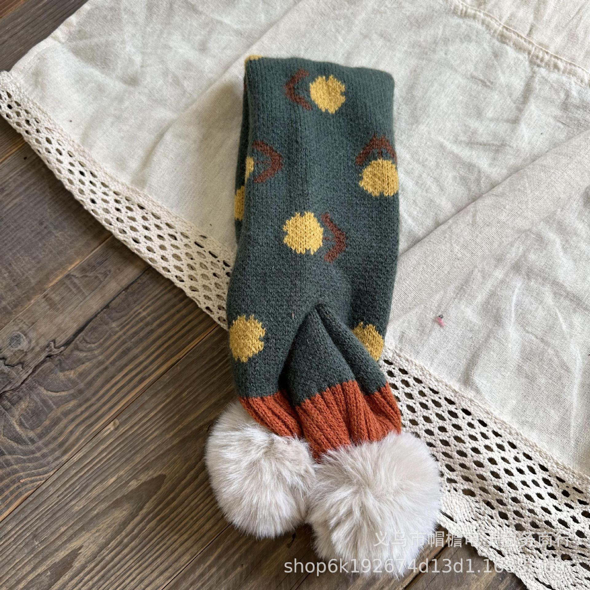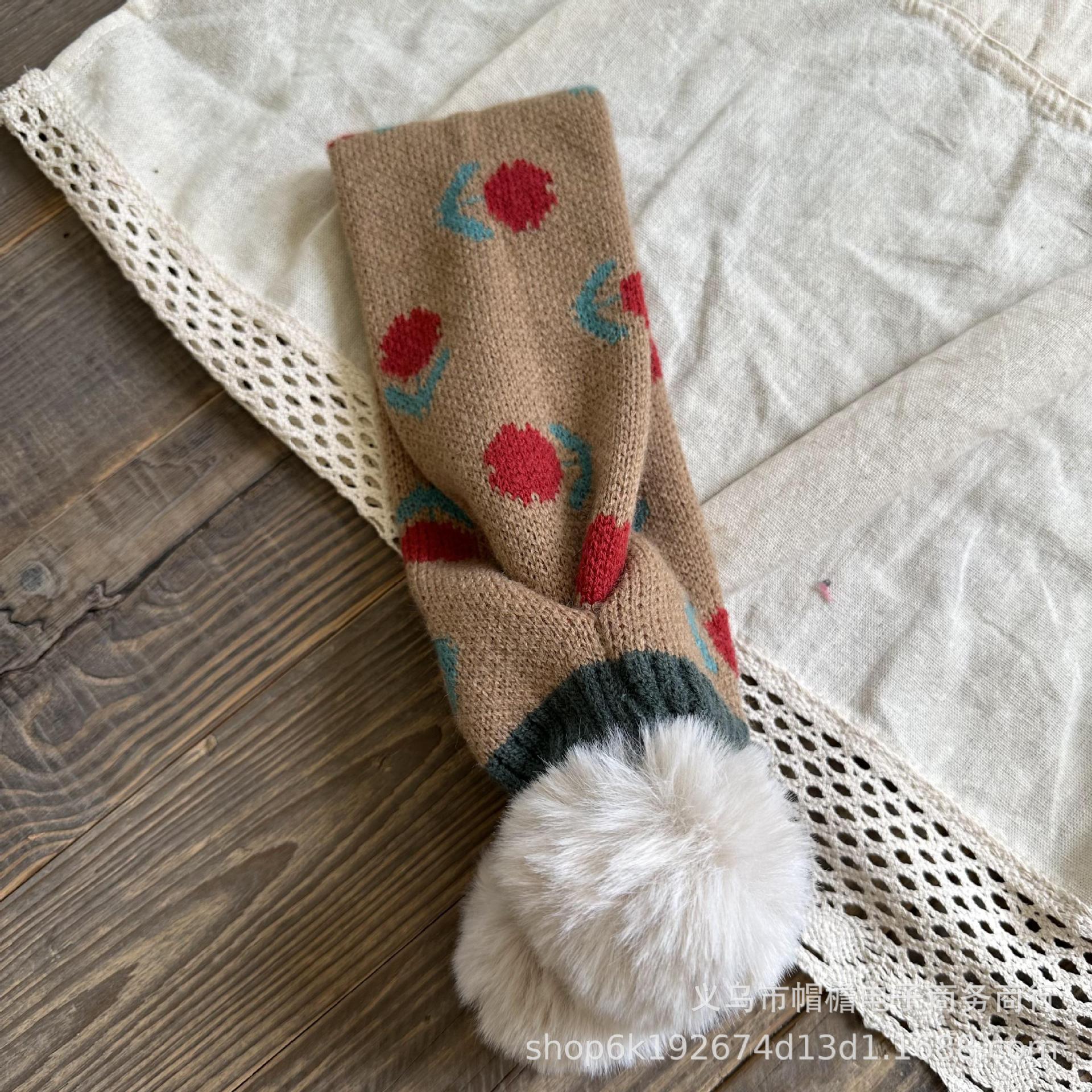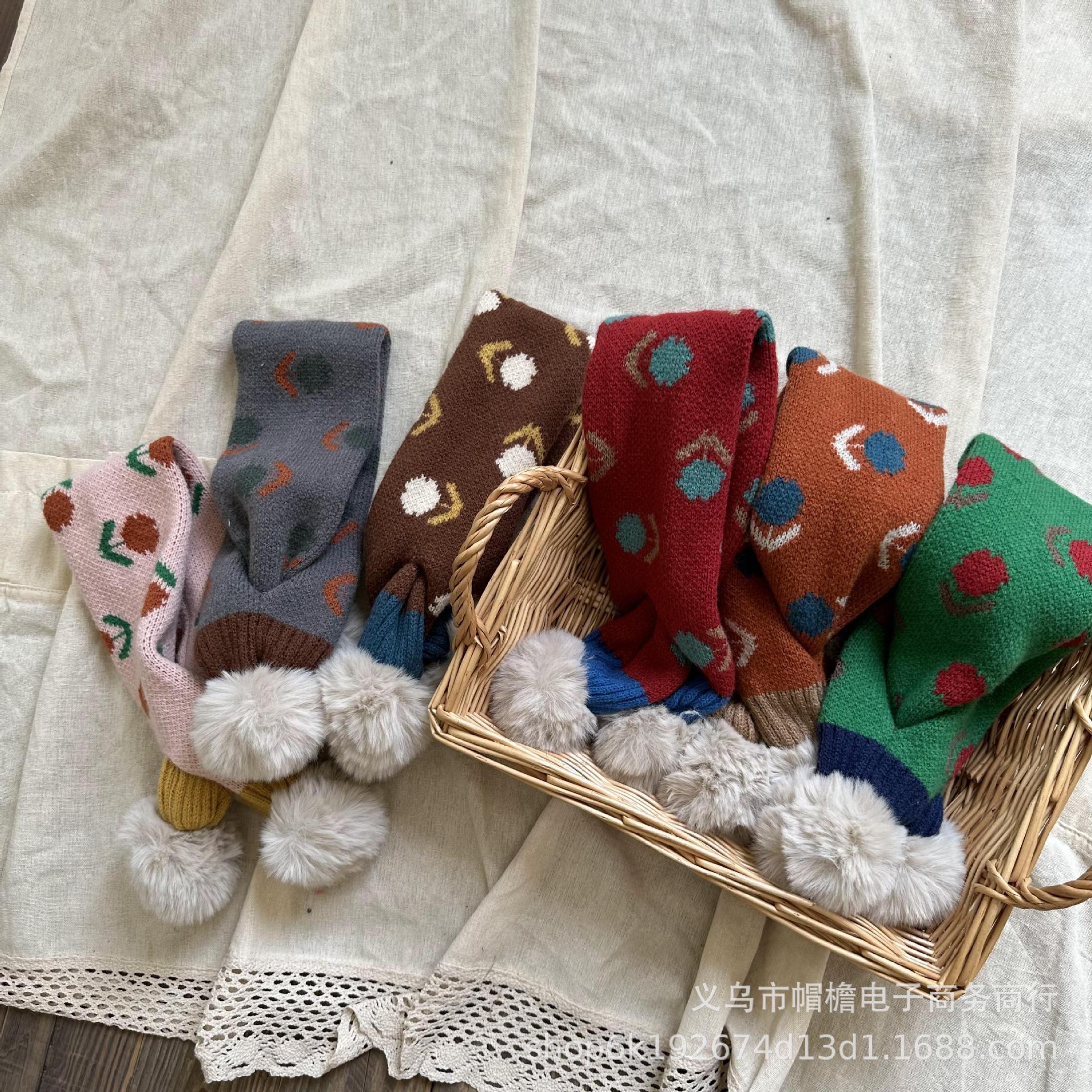 달콤한 복고풍 아기 모피 볼 크로스 스카프 가을과 겨울 야외 따뜻한 어린이 니트 작은 신선한 꽃 스카프스토어 가기