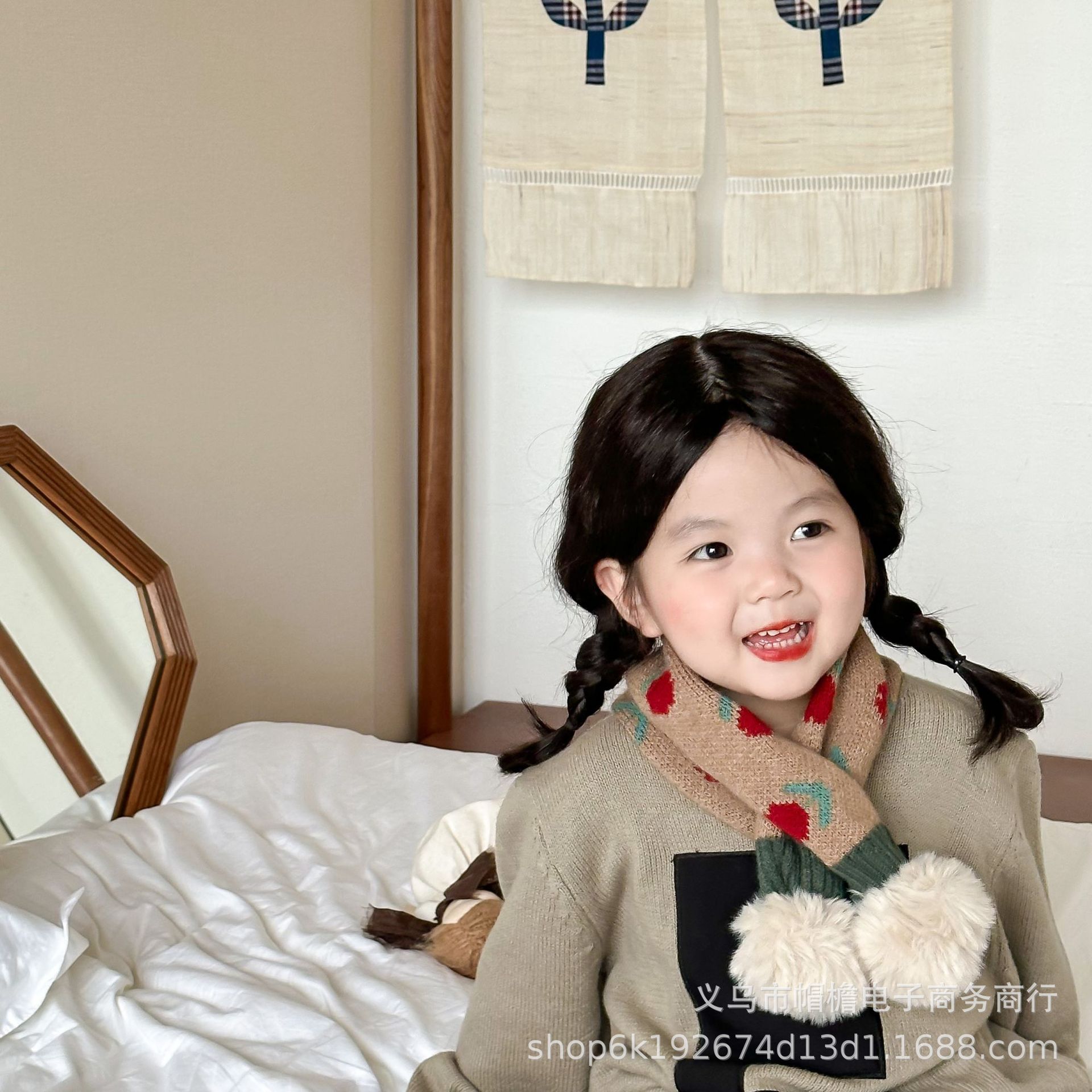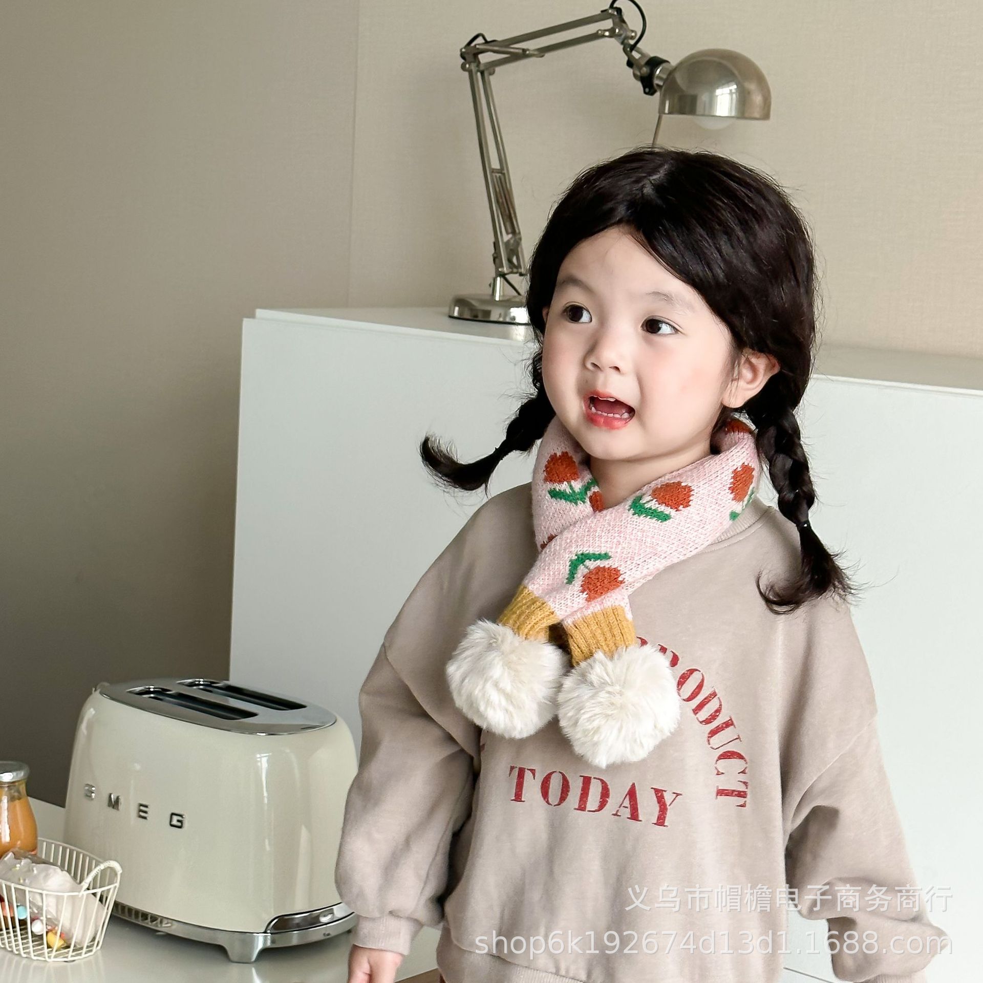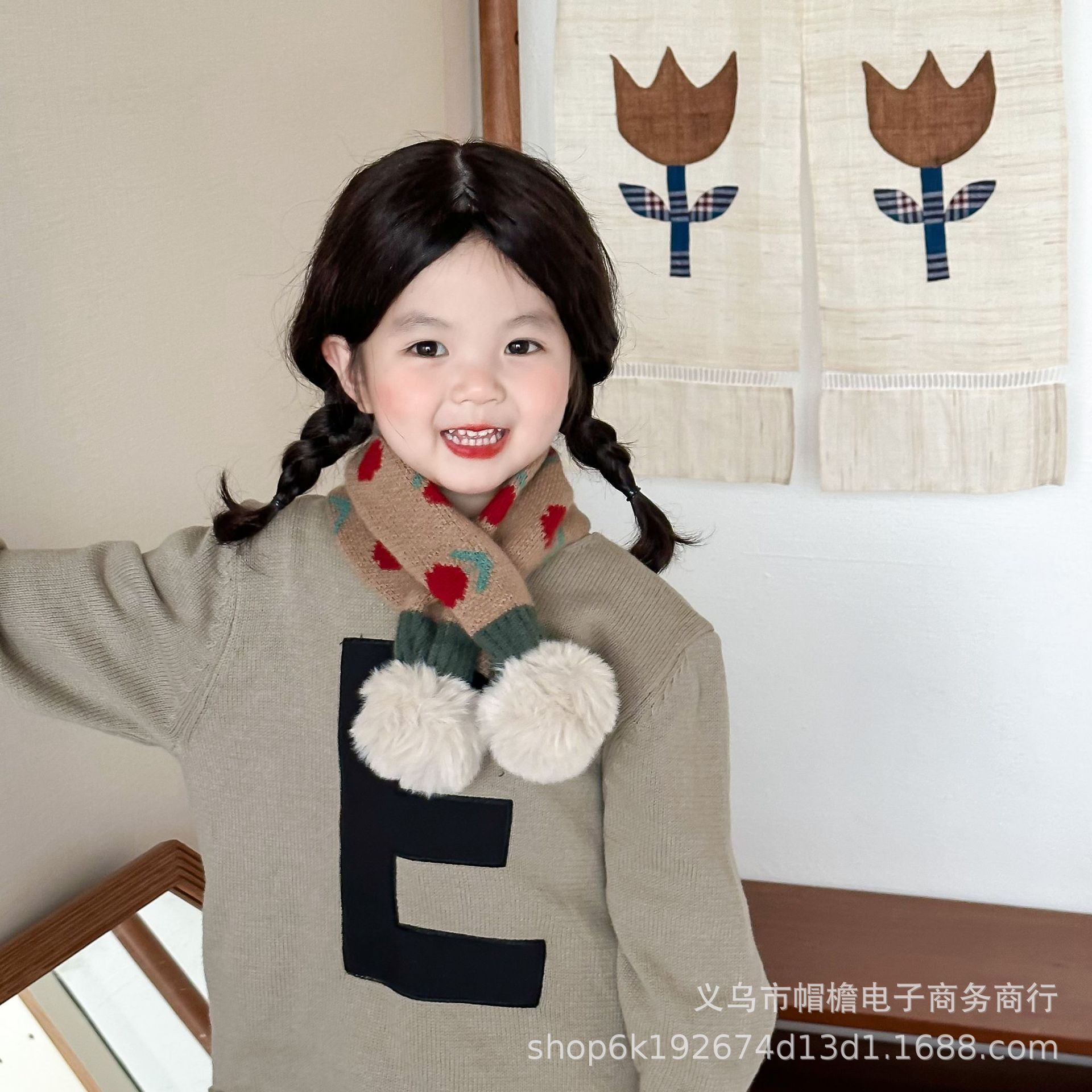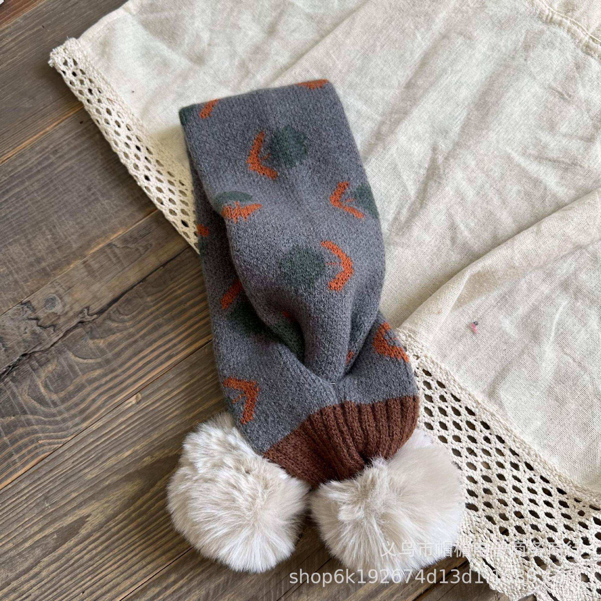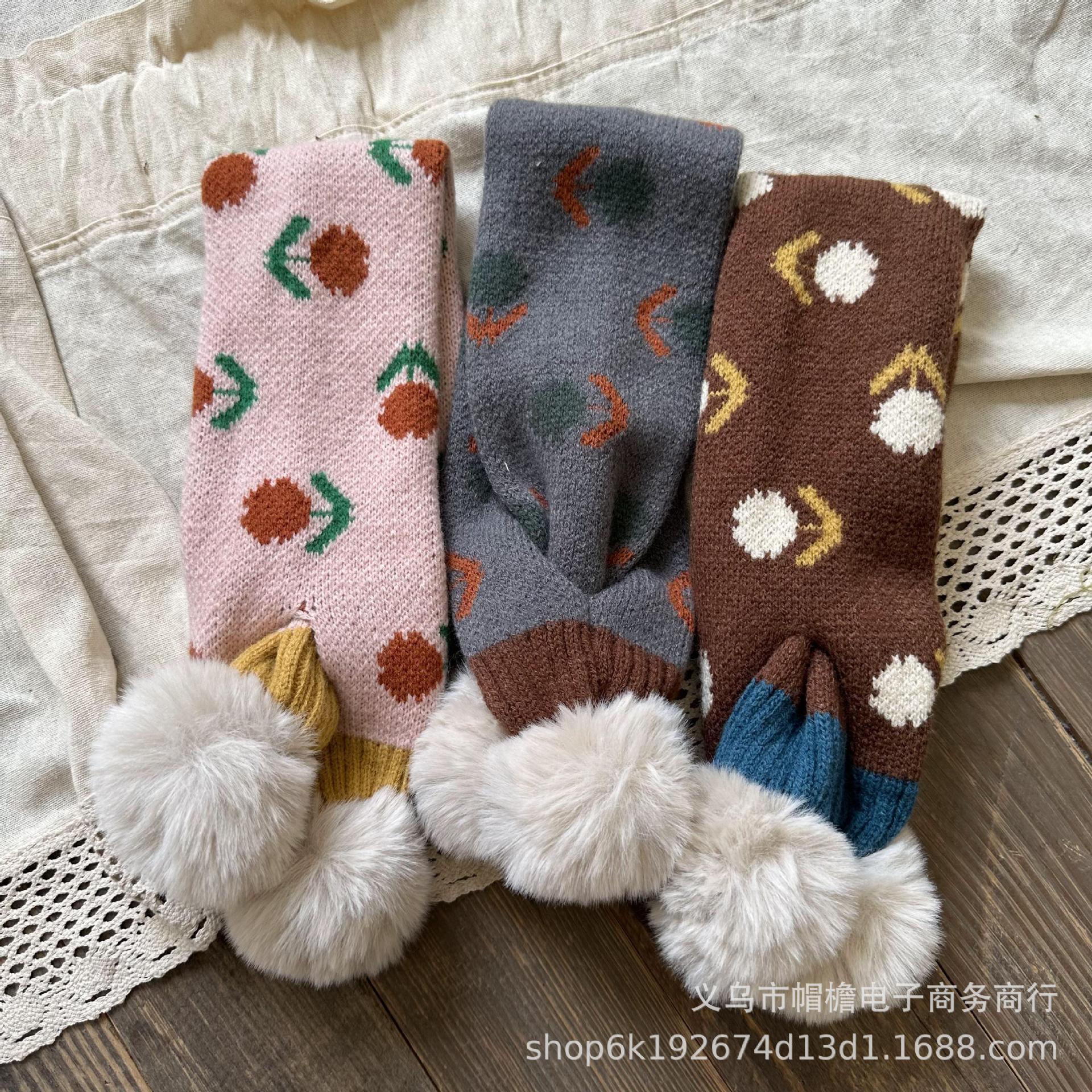달콤한 복고풍 아기 모피 볼 크로스 스카프 가을과 겨울 야외 따뜻한 어린이 니트 작은 신선한 꽃 스카프스토어 가기