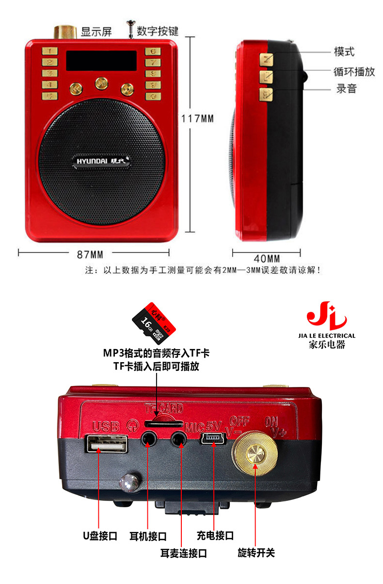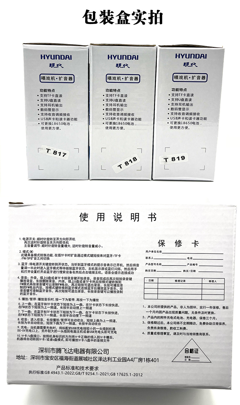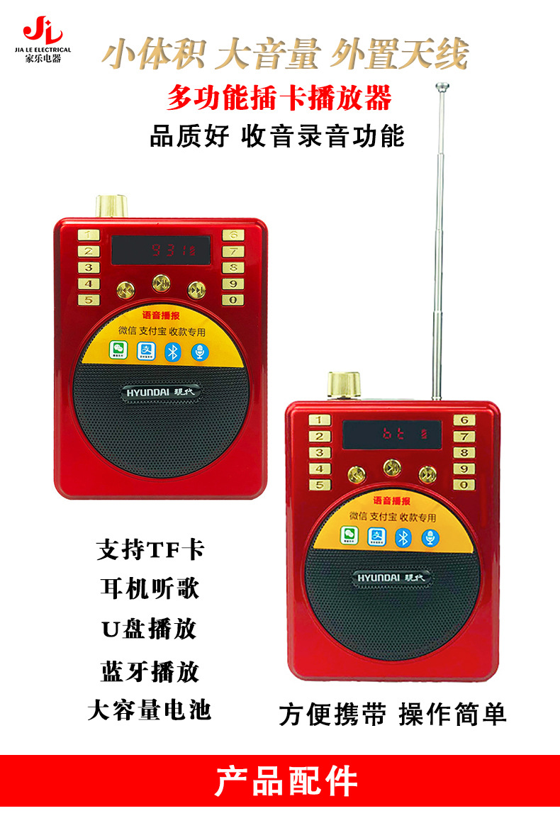 현대 817S 라디오 노인용 오디오 플레이어 카드 삽입형 스피커 야외 블루투스 스테레오 음향 증폭기