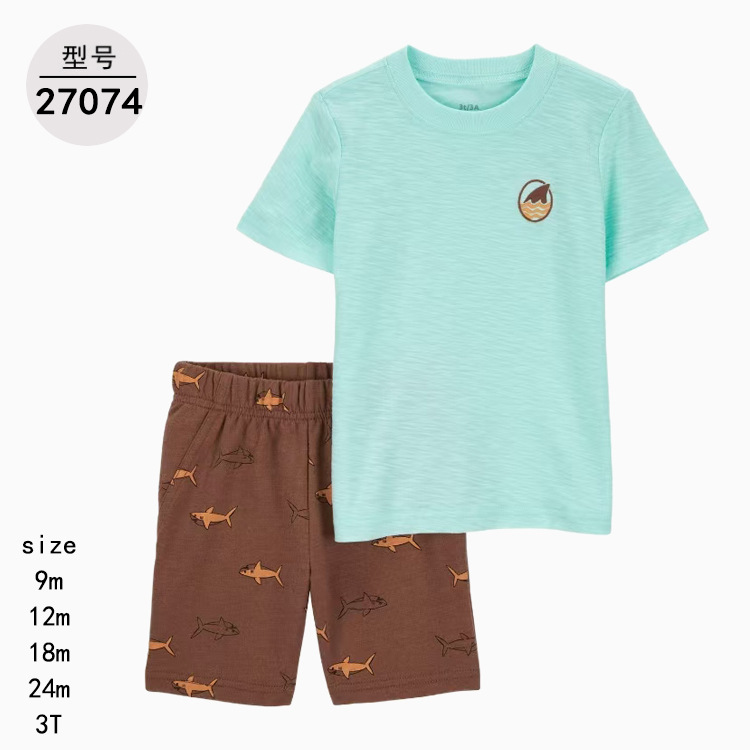 여름 투피스 유아용 반팔 티셔츠와 반바지 남녀 아기 만화 아동복 1-3세 [드롭쉬핑]스토어 가기