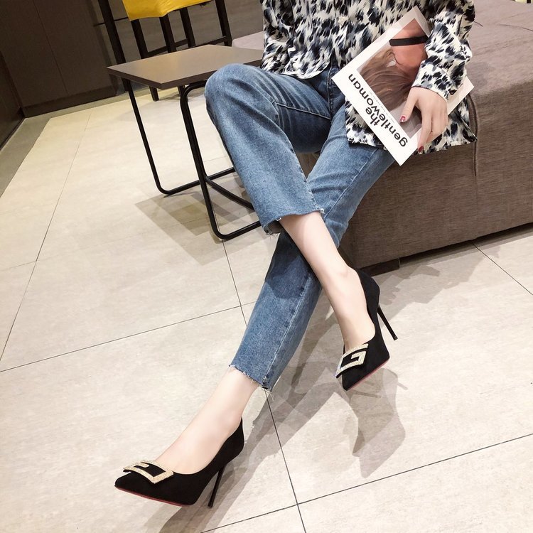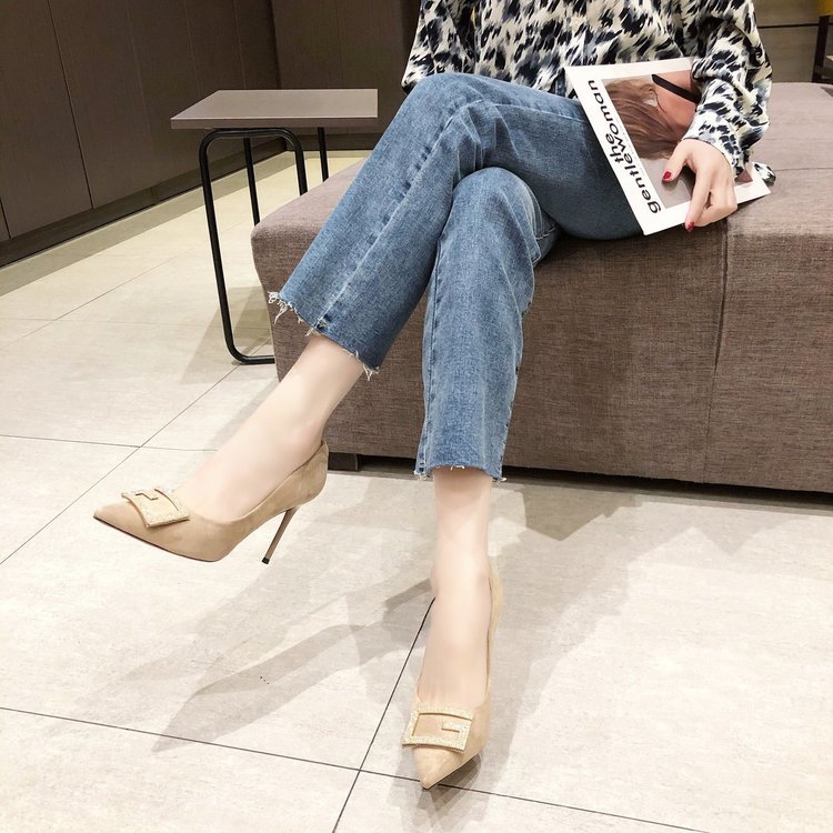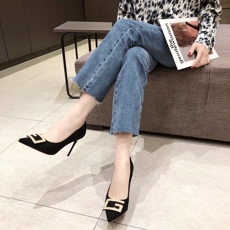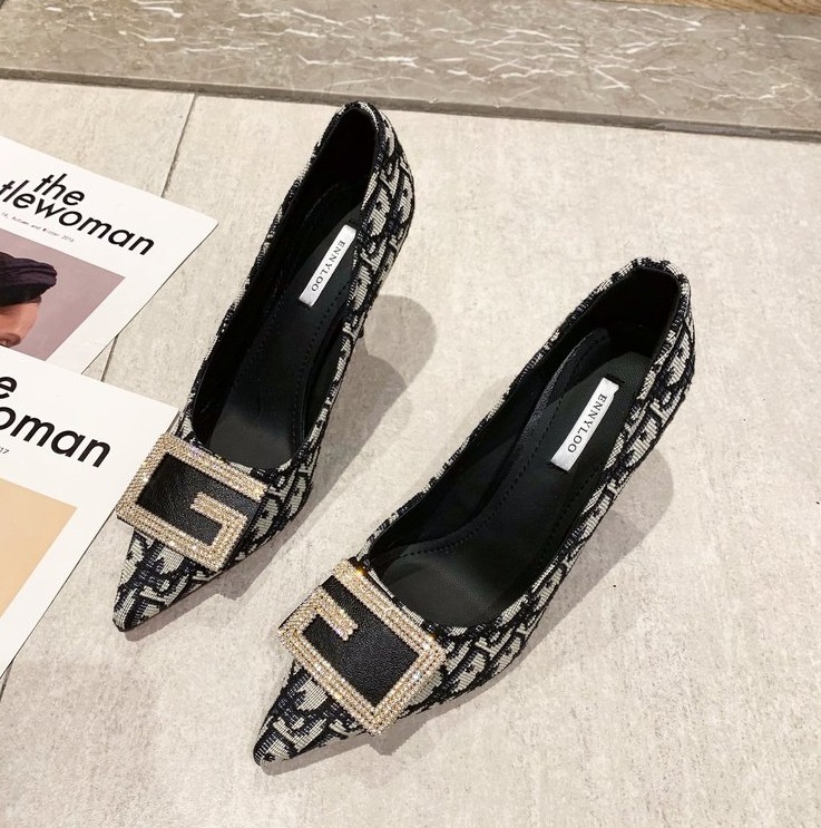 디자인 감각이 돋보이는 여성용 하이힐 2024 봄 가을 신상 패션 큐빅 장식 슈즈 뾰족코 얇은 굽 오피스 여성화스토어 가기
