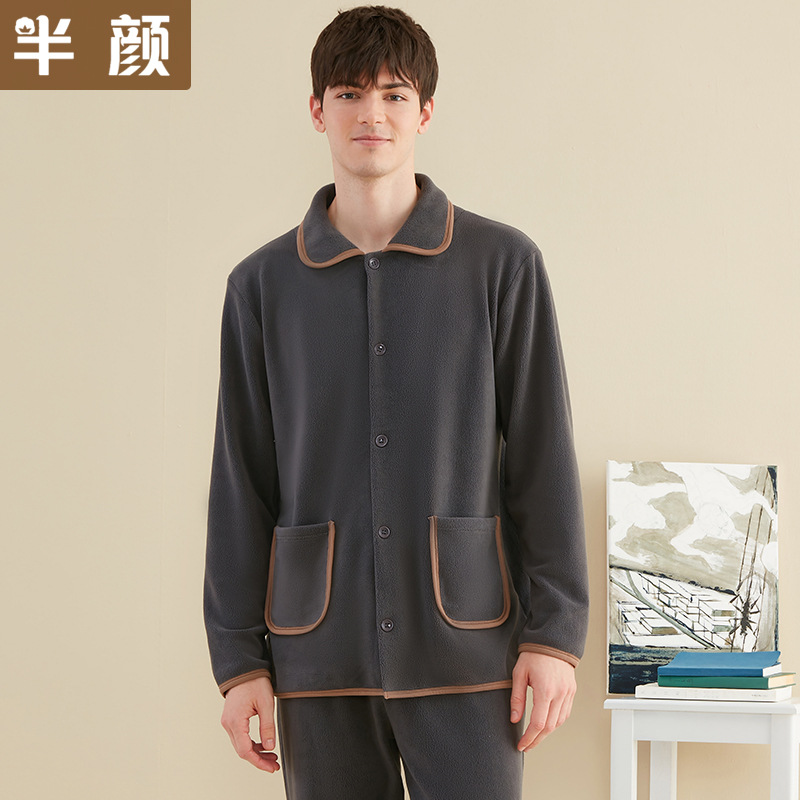 하이 퀄리티 공급 겨울 커플 남자의 옷깃 카디건 간단한 아웃웨어 두꺼운 슈퍼 소프트 스트레치 폴라 양털 잠옷스토어 가기