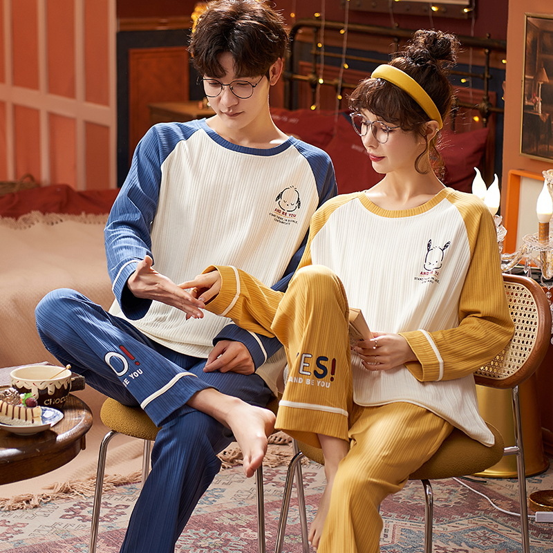 커플 잠옷 여자의 봄과 가을 얇은 달콤한 긴 소매 세트 귀여운 만화 플러스 사이즈 느슨한 남자의 가을과 겨울 가정 옷스토어 가기