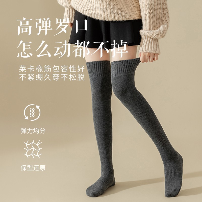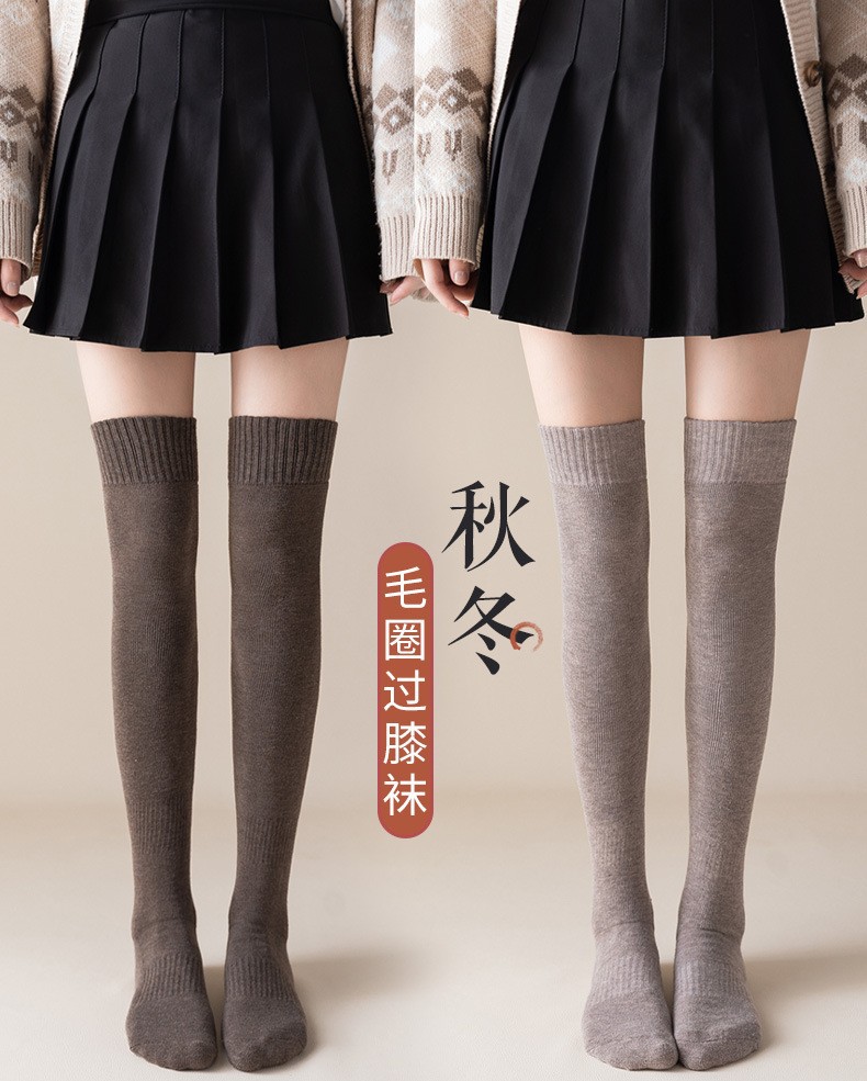 두꺼운 따뜻한 스타킹 여자의 테리 무릎 위 양말 단색 송아지 양말 가을과 겨울 학생 기모 높은 면 양말스토어 가기