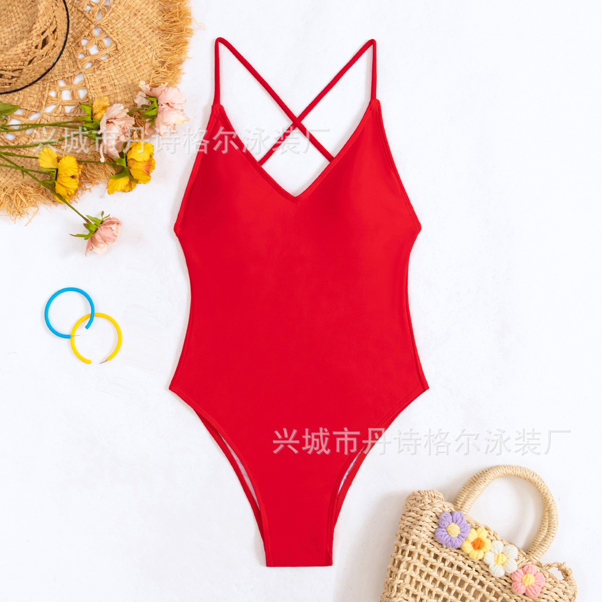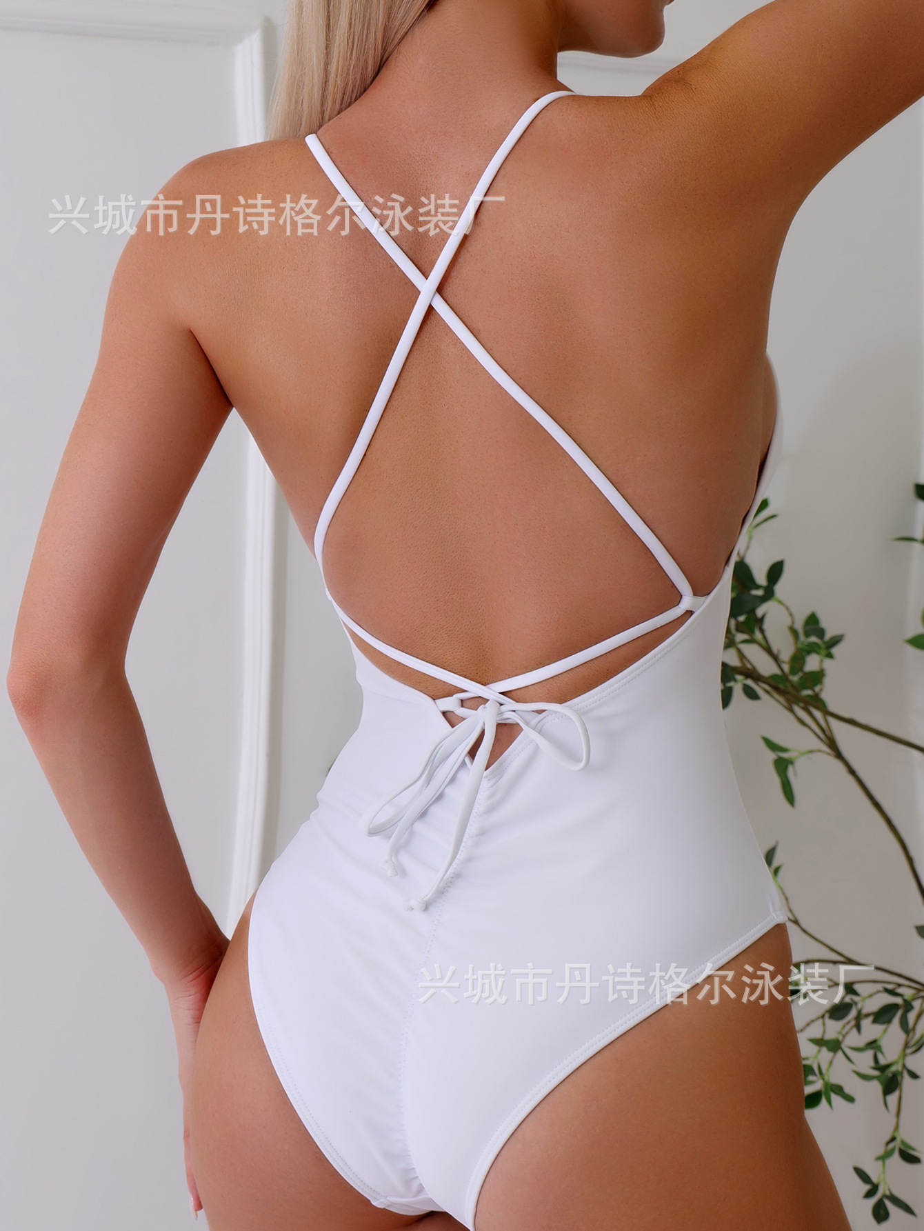 2023 새로운 유럽과 미국의 아마존 핫 세일 큰 백리스 섹시한 원피스 비치 비키니 조절 스트랩 수영복스토어 가기