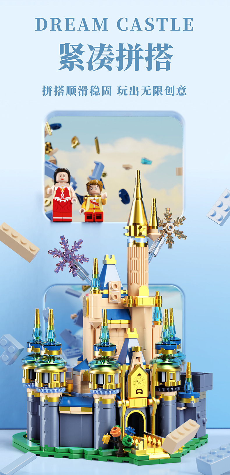작은 각도의 JD016 몽환적인 성 조립식 교육용 블록 어린이날 장난감 선물 다이아몬드 소형 블록