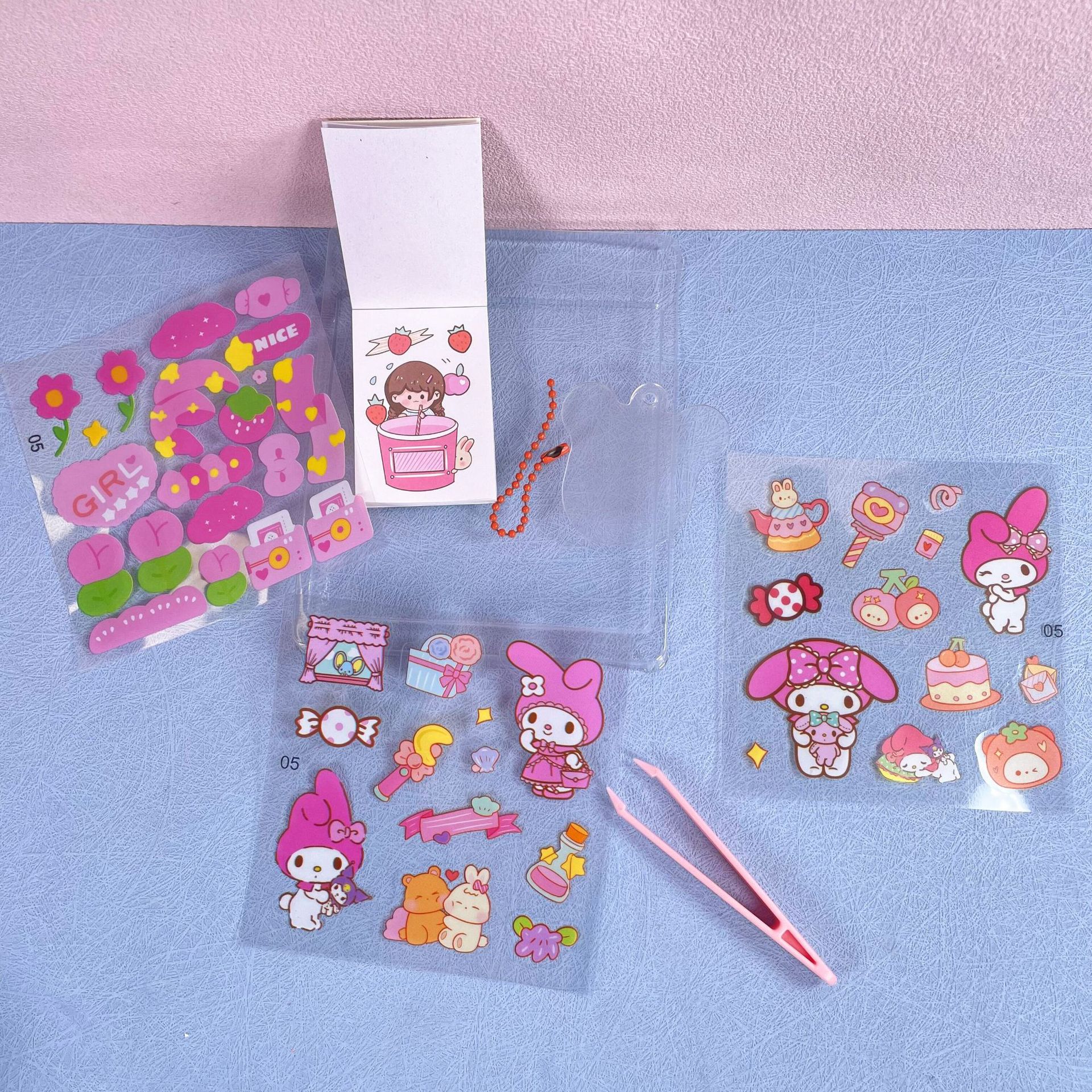 산리오 핸드북 스티커 8개 애니메이션 어린이 및 소녀 반투명 스티커 선물 선물 핸드북 소재 종이 도매