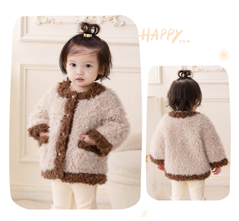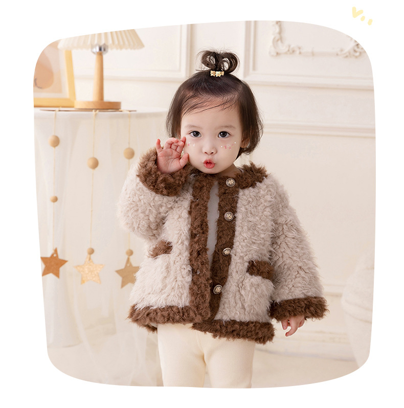 아이디어 소녀 플러시 패딩 코트 2023 가을과 겨울 기모 따뜻한 코트 아기 외부 아기 아동복 3293