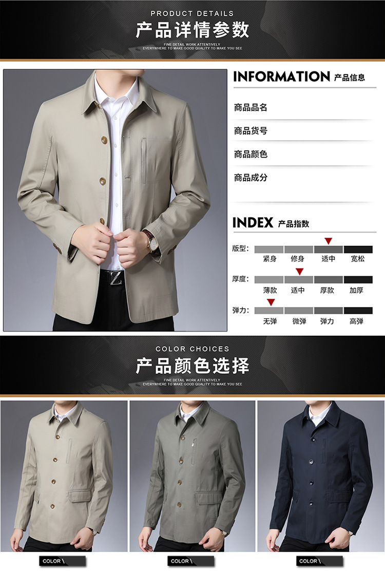 중년 및 노인 남성 자켓 봄과 가을 순면 중년 아버지의 특대 대형 코트 캐주얼 의류스토어 가기