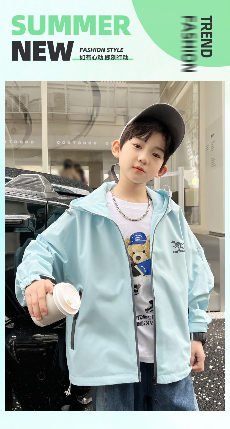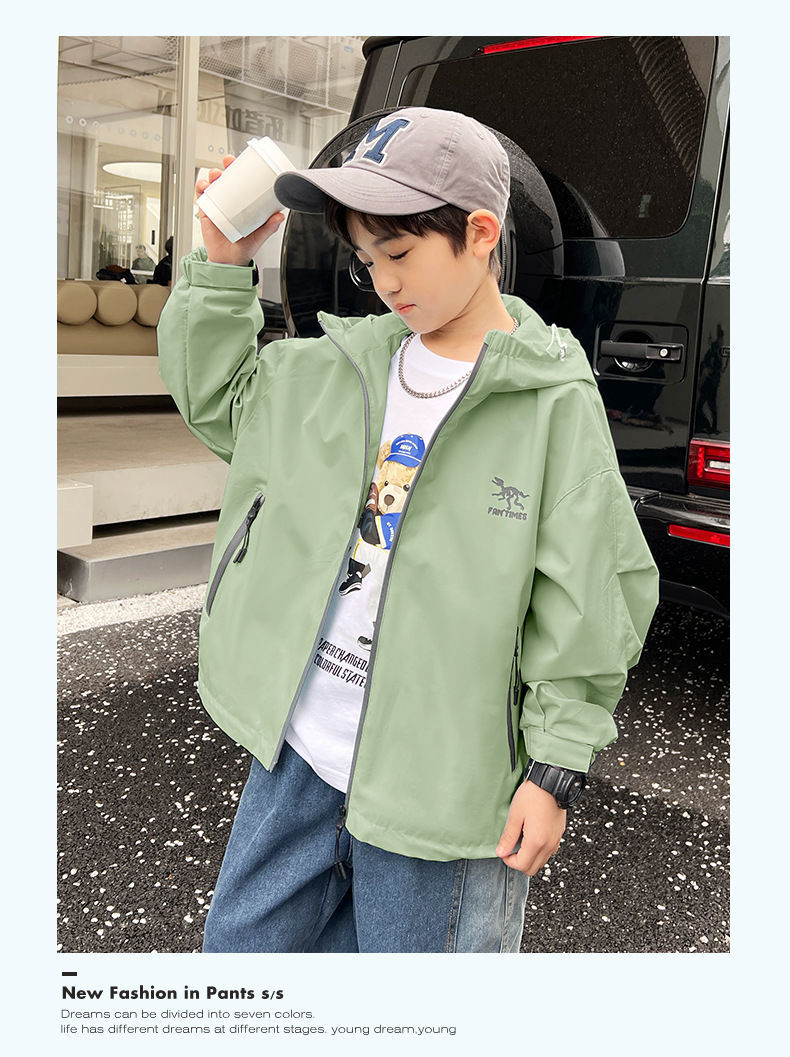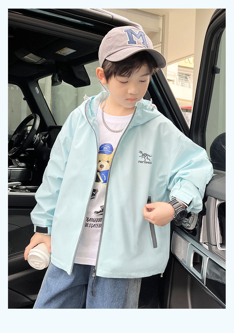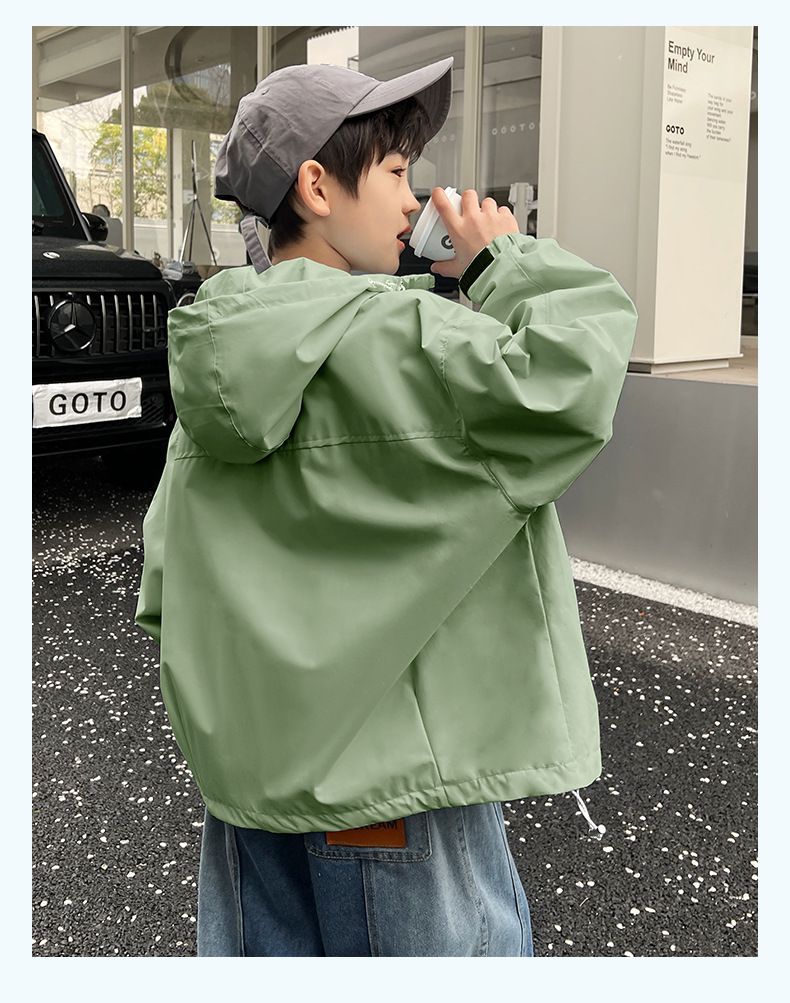 남아 긴 소매 후드 어린이 코트 가을 2023 새로운 스타일 중 및 대형 소년 재킷 재킷 트렌디 한 겉옷