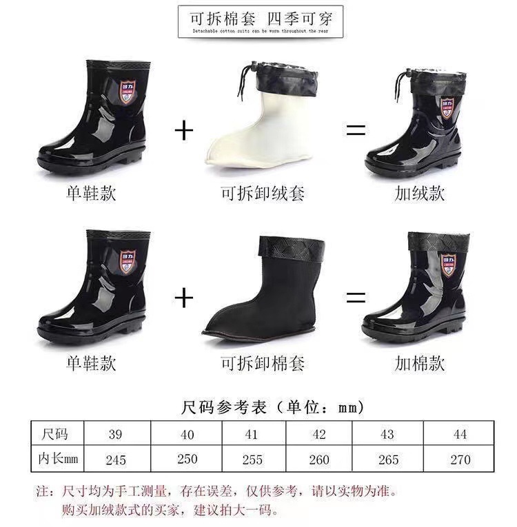 남성용 워터슈즈, 두꺼운 내마모성 588 숏 워터슈즈, 미끄럼 방지 및 보온 기능이 있는 남성용 레인슈즈