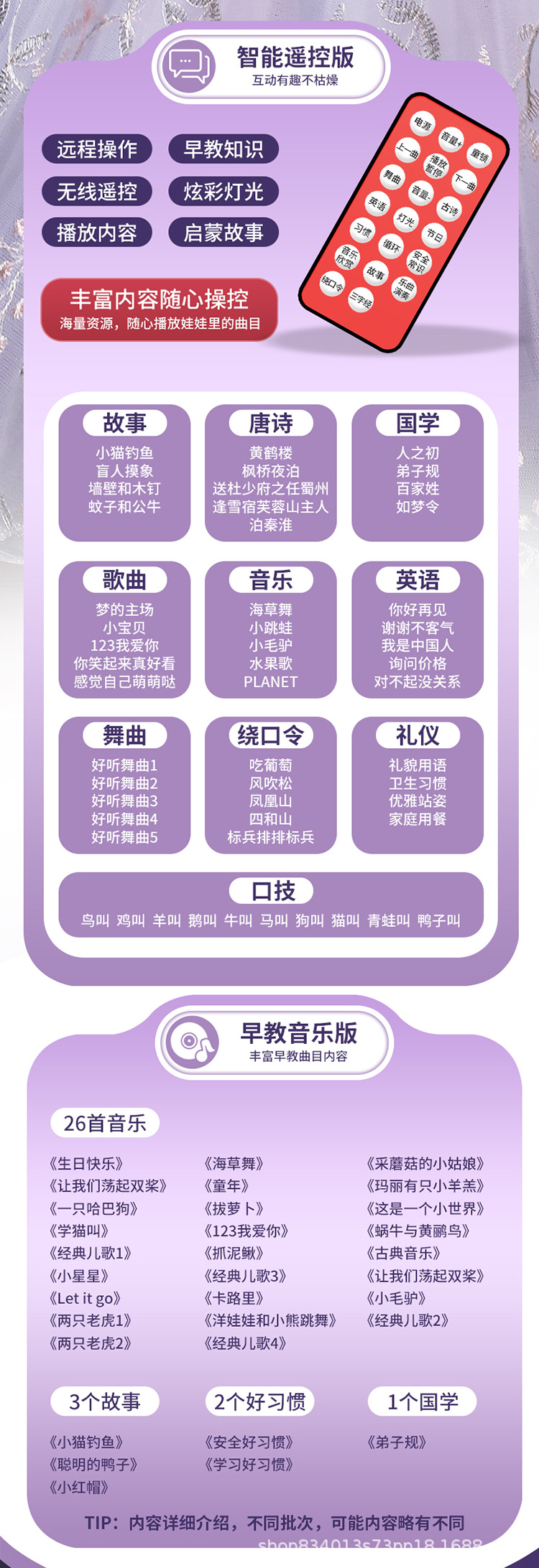 • 대화 버전 + 휴대용 선물 상자 + 머리 장식 + 목걸이 + 리모콘