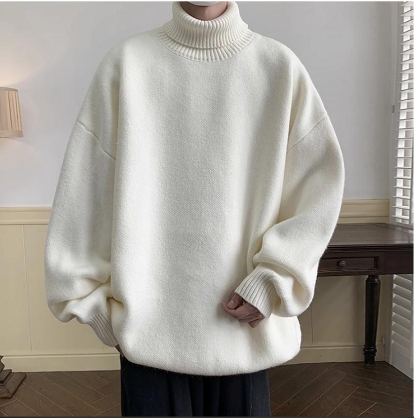 23 가을/겨울 남성용 홍콩 스타일 캐주얼 느슨한 솔리드 컬러 터틀넥 스웨터 커플 따뜻한 니트 셔츠 베이스 스웨터