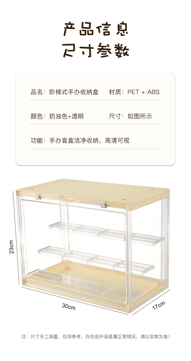 大号三层手办收纳盒产品尺寸:30*17*23cm 单独包装尺寸:23.5*9.5*31cm 8只装尺寸:50*38*64cm