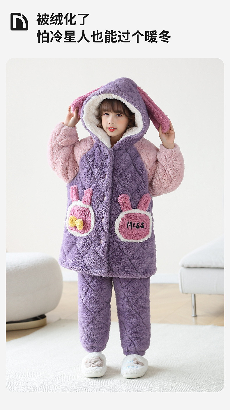 루루 소 소녀 잠옷 겨울 플란넬 면 길어진 두꺼운 대형 어린이 산호 양털 어린이 비 재고스토어 가기