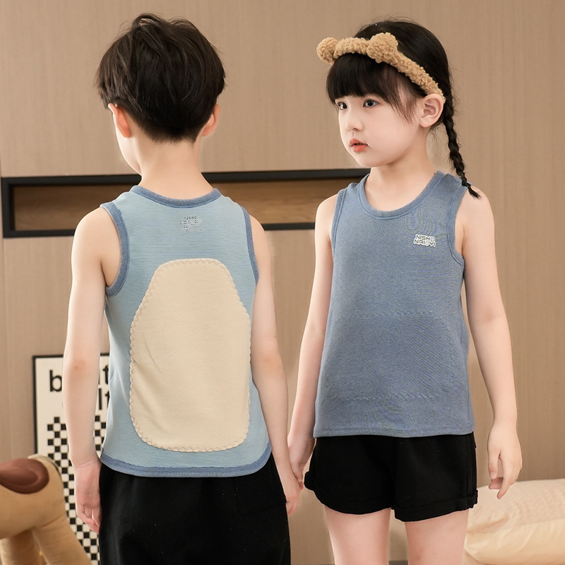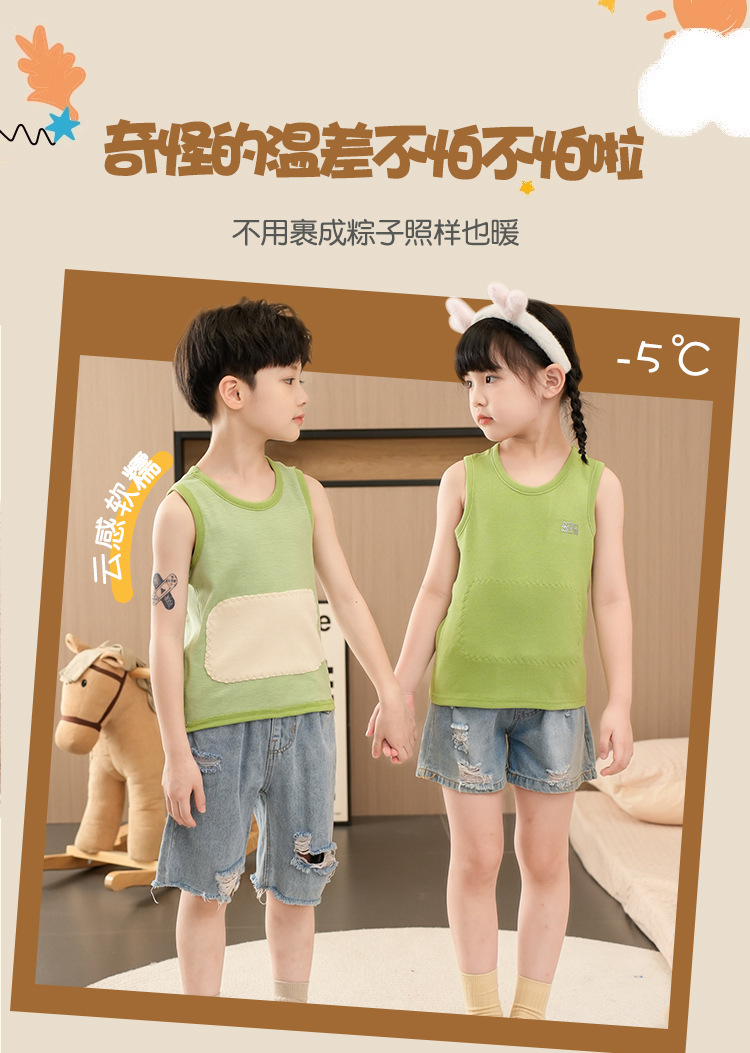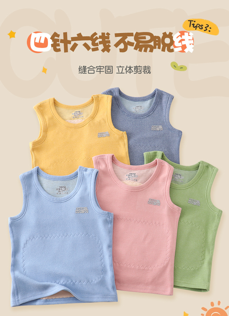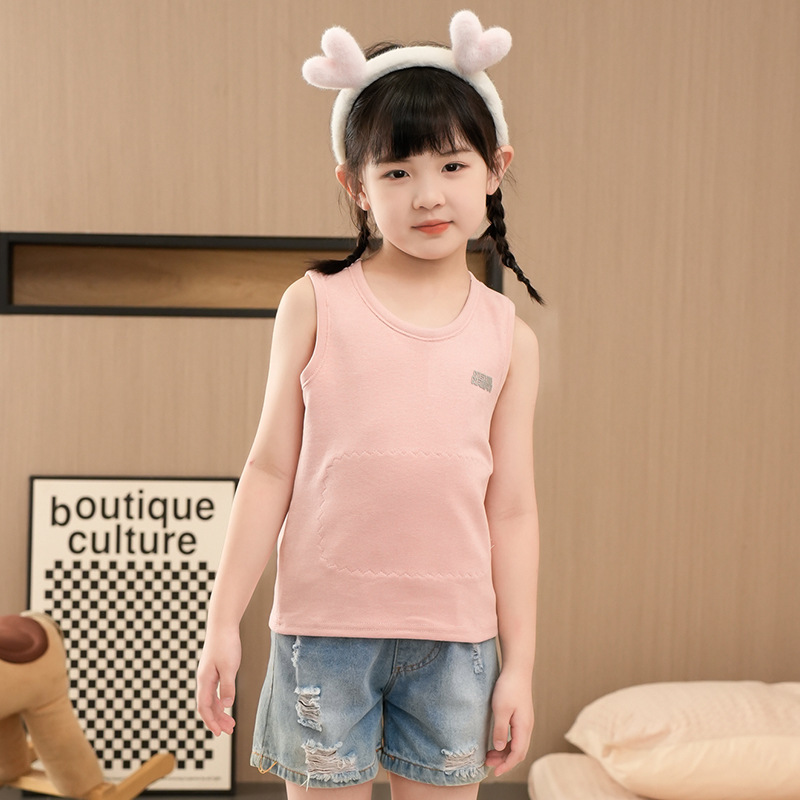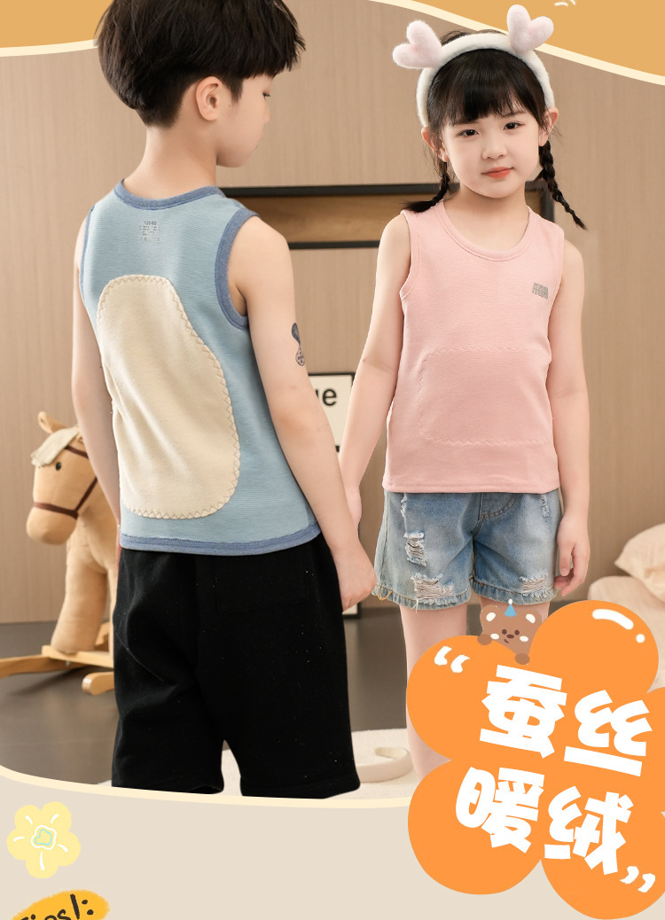 가을과 겨울 어린이 따뜻한 조끼 패치 실크 기모 두꺼운 배꼽 조끼베이스 탑 소년 소녀