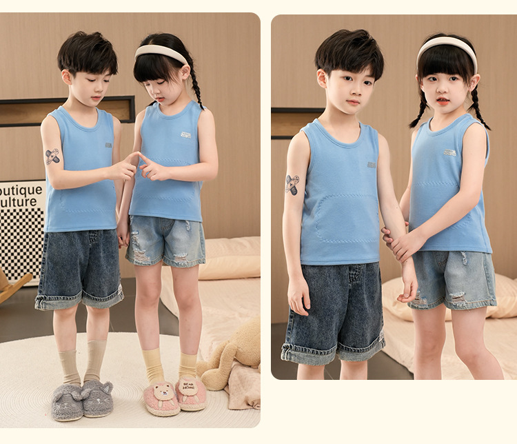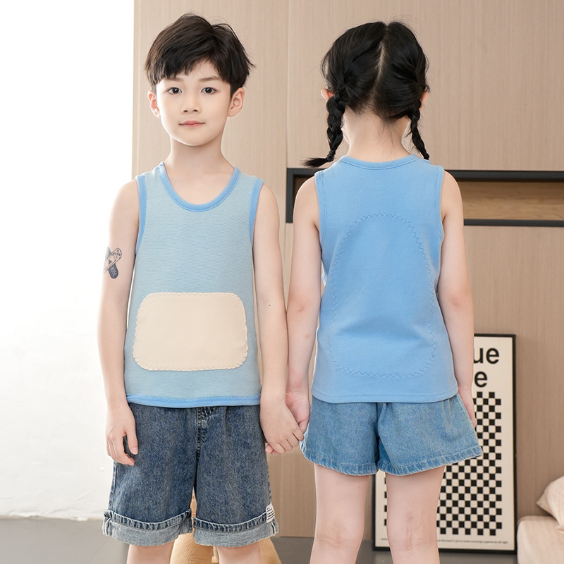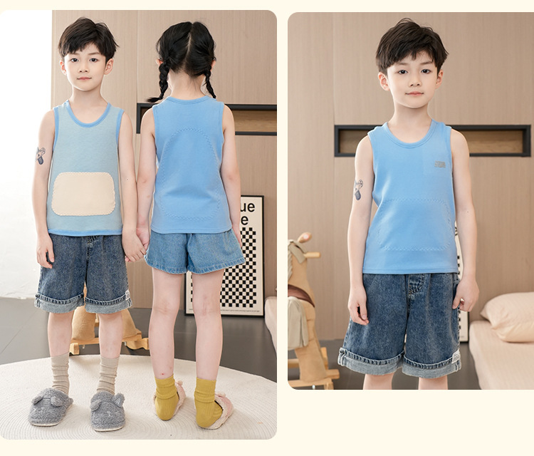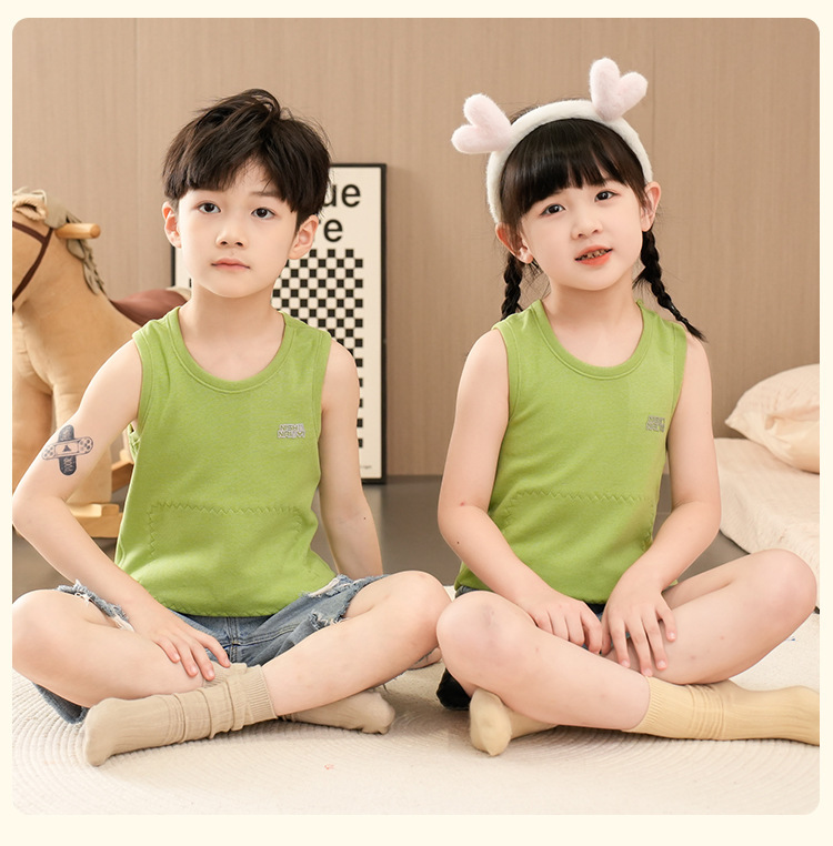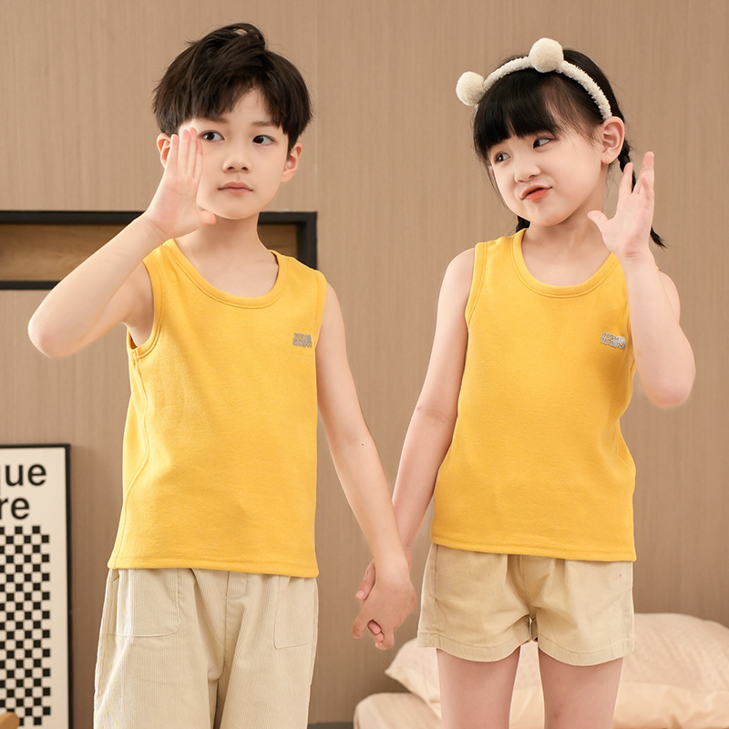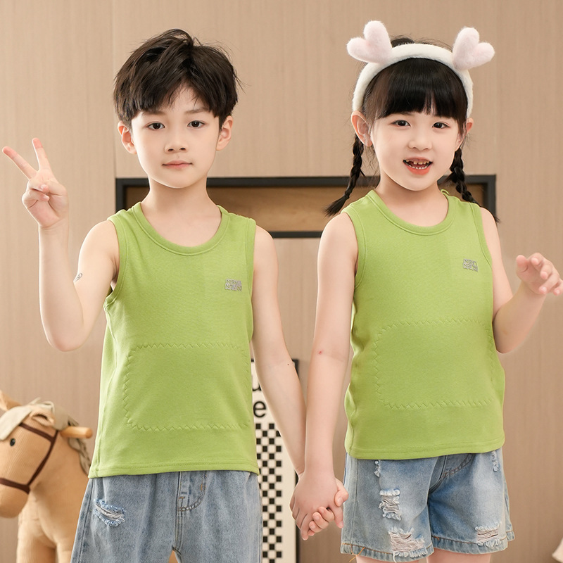 가을과 겨울 어린이 따뜻한 조끼 패치 실크 기모 두꺼운 배꼽 조끼베이스 탑 소년 소녀