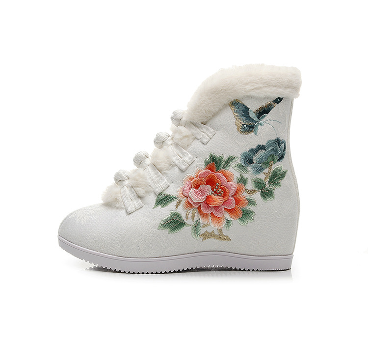 코튼 부츠 짧은 부츠 면 랩 자수 부츠 자수 신발 천 부츠 내부 힐 웨지 여성 신발 면