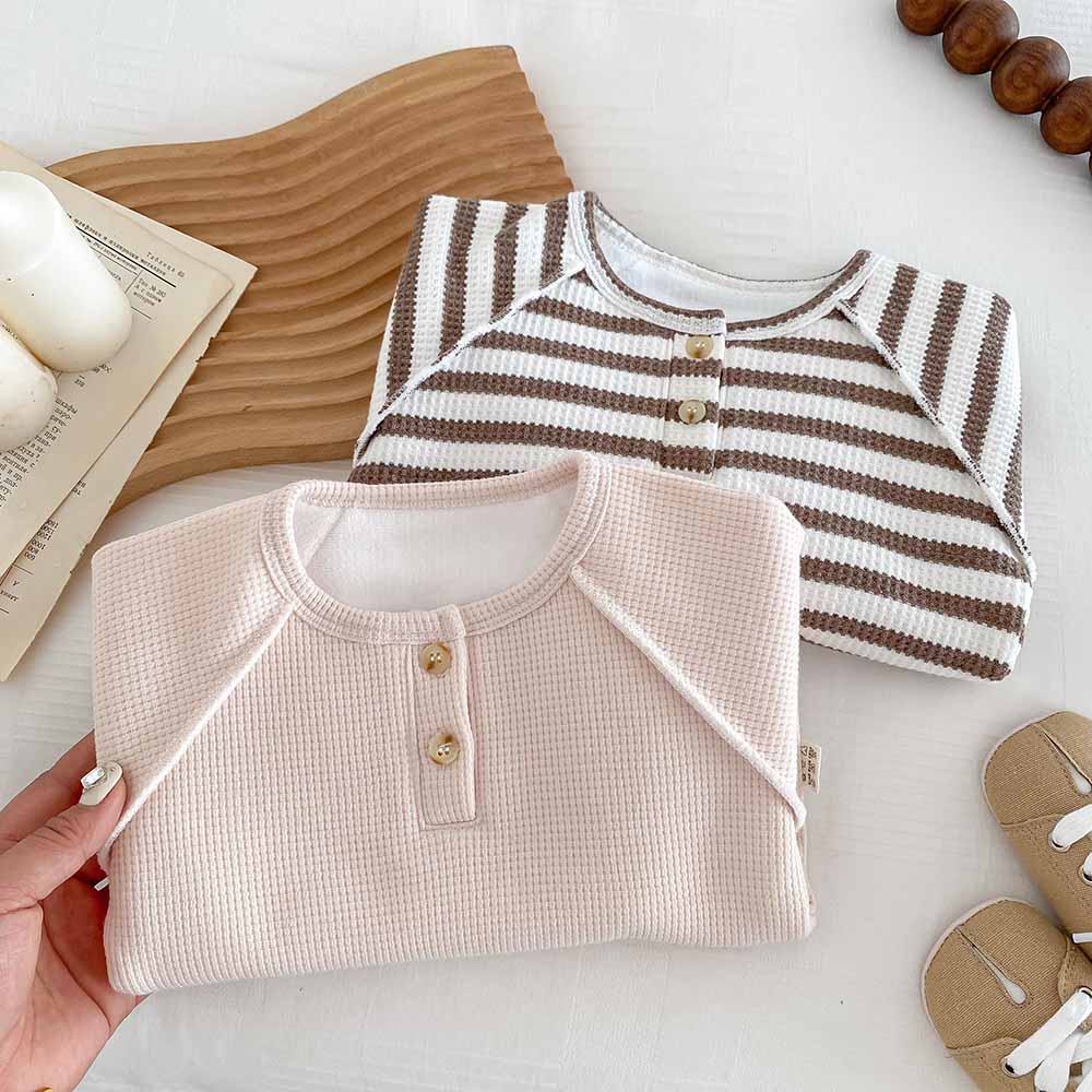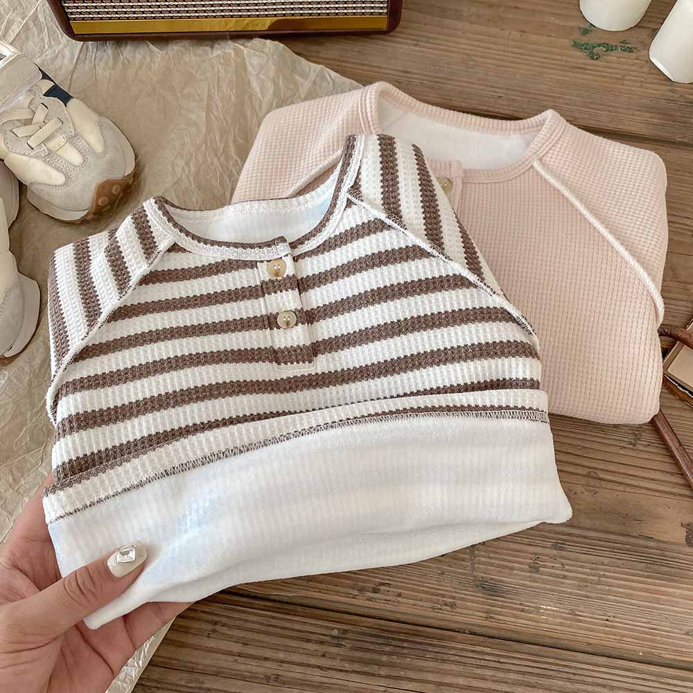 베이비 기모 베이스 셔츠 한국 가을 겨울 착용 소년 소녀 두꺼운 따뜻한 탑 모든 매치 어린이 크루넥 티셔츠 유행