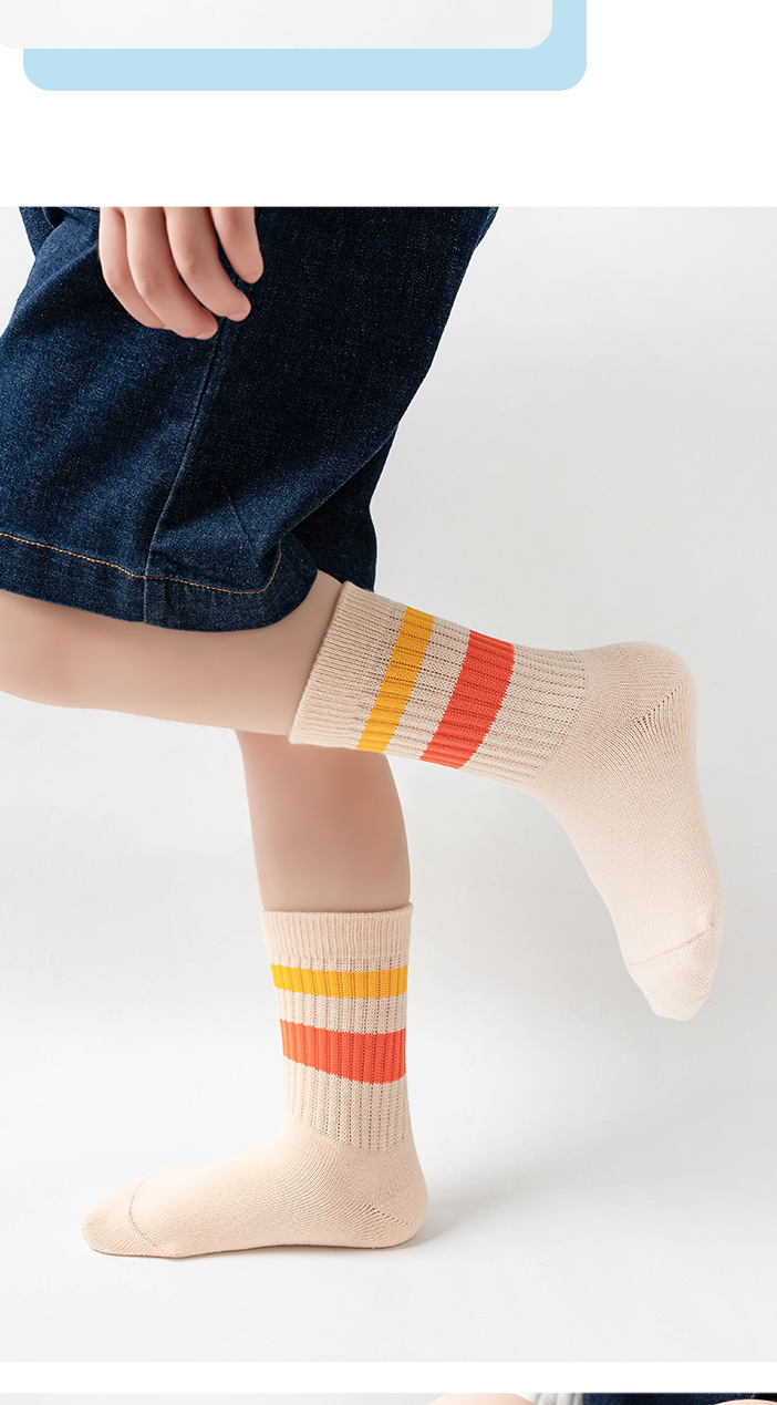 어린이 양말 봄과 가을 색 줄무늬 조수 외부 착용 그물 빨간면 양말 가을과 겨울 스타킹 소년과 소녀 스포츠 양말