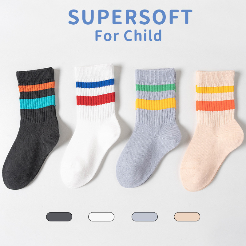 어린이 양말 봄과 가을 색 줄무늬 조수 외부 착용 그물 빨간면 양말 가을과 겨울 스타킹 소년과 소녀 스포츠 양말스토어 가기