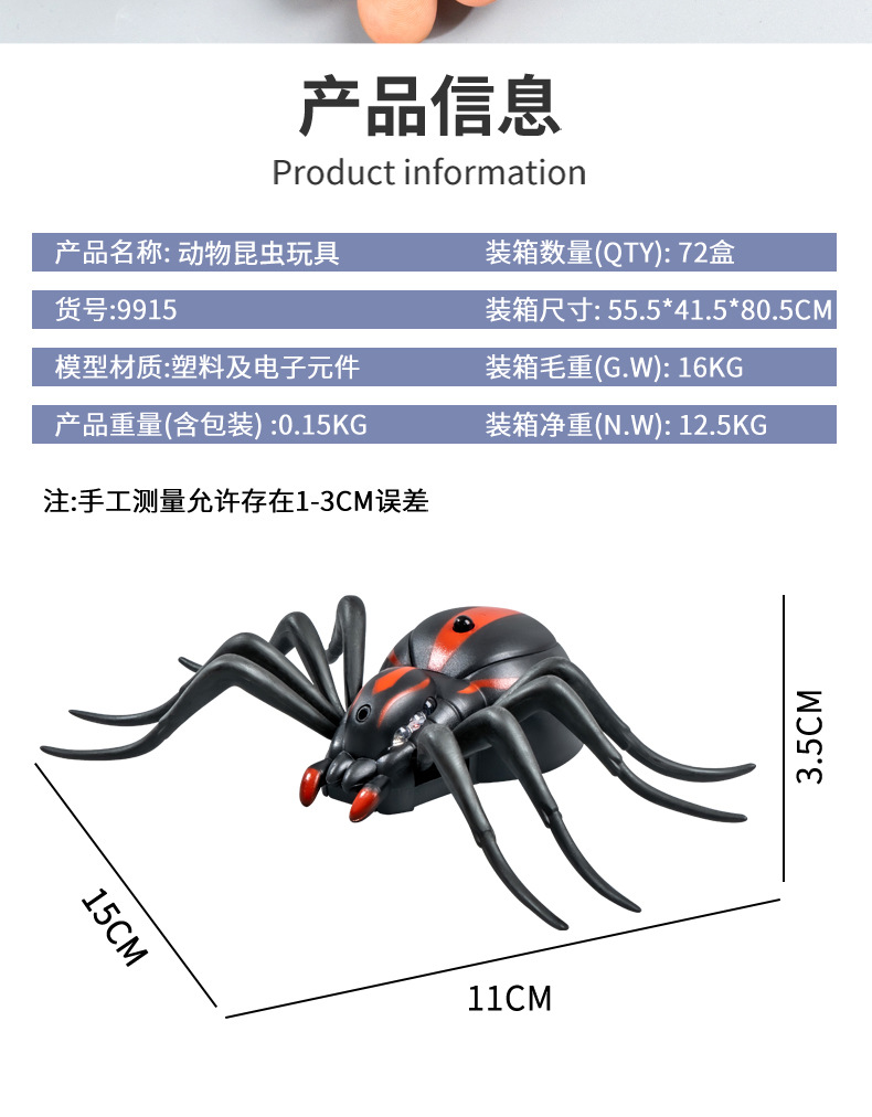국경 간 적외선 원격 제어 거미 시뮬레이션 트릭 블랙 위도우 퍼즐 조기 교육 과학 및 교육 완구 전자 애완 동물 선물