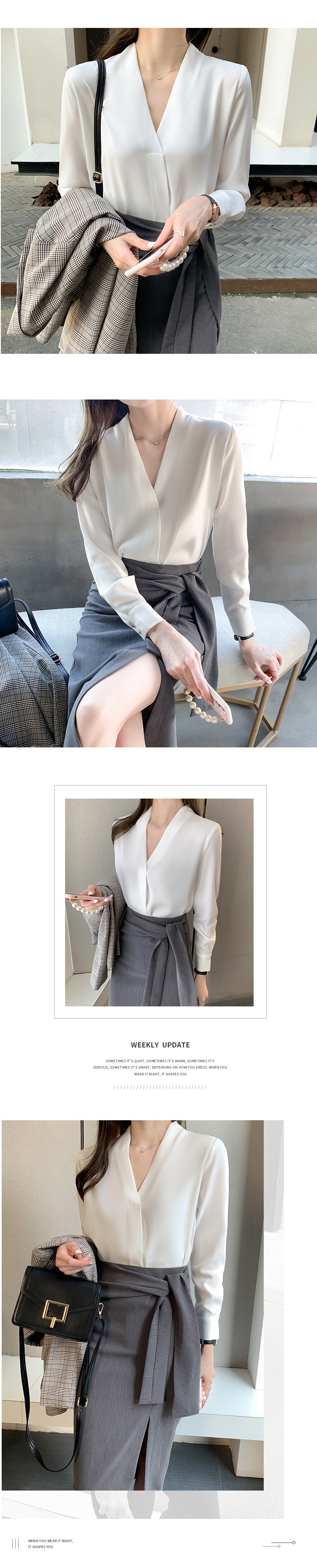 인터뷰 셔츠 25 봄 여름 한국 스타일 다목적 한국 스타일 브이넥 긴팔 기질 슬림 여성 쉬폰 셔츠 봄 탑스토어 가기