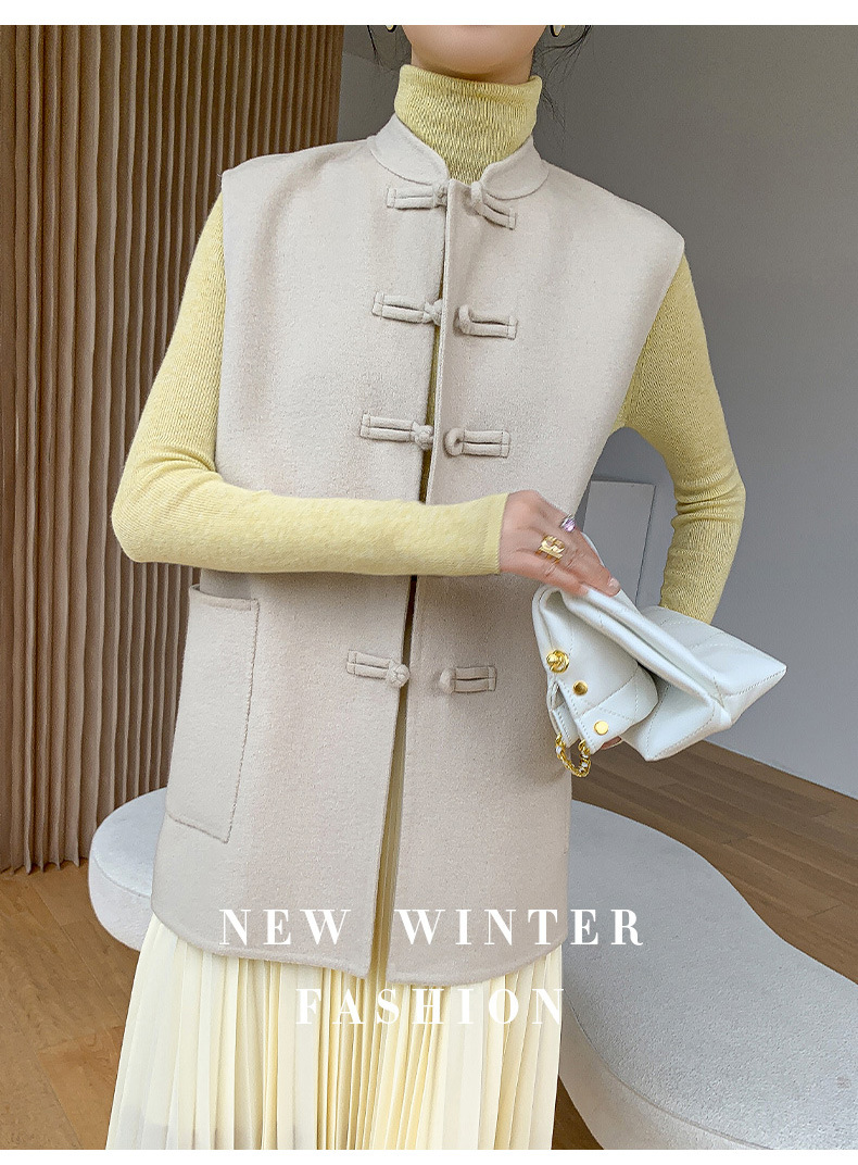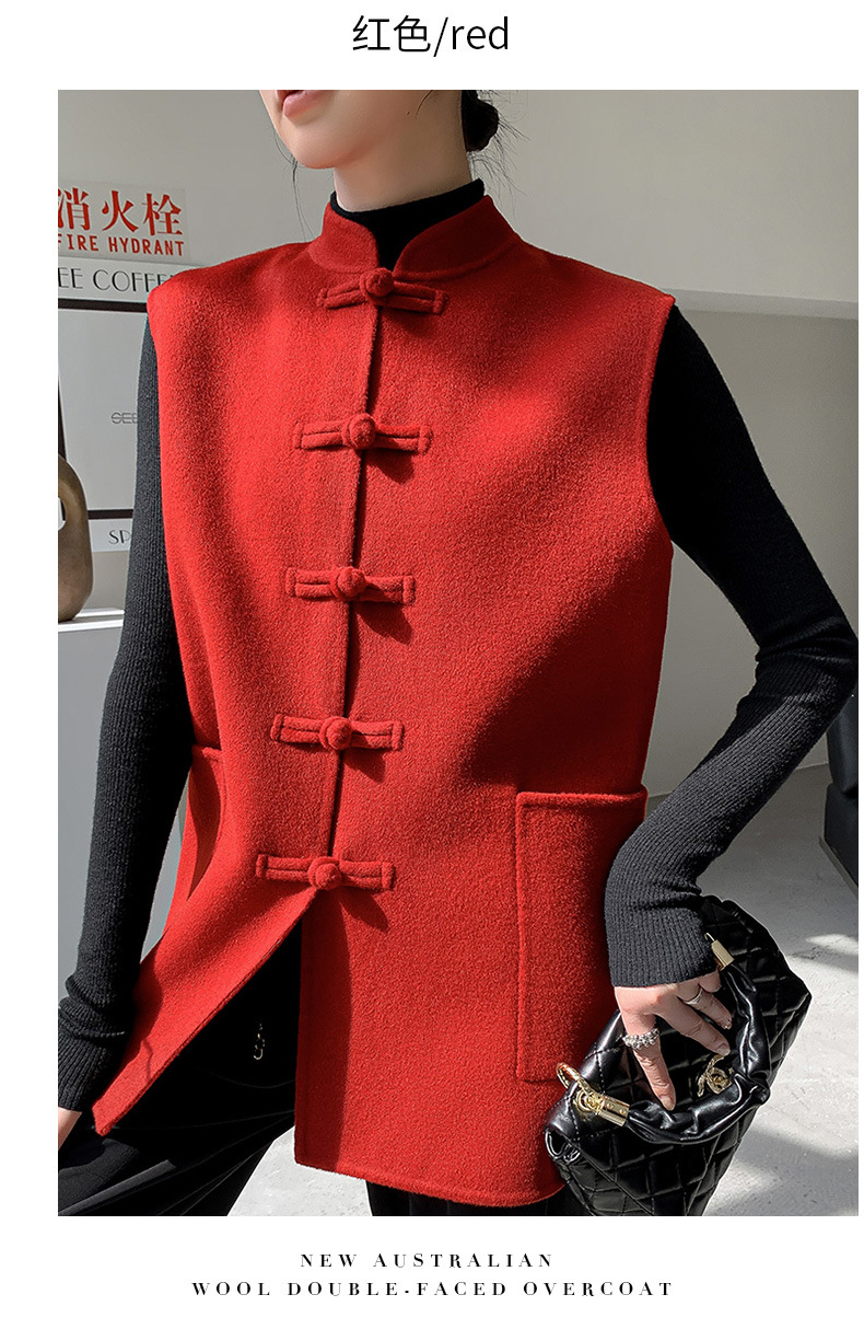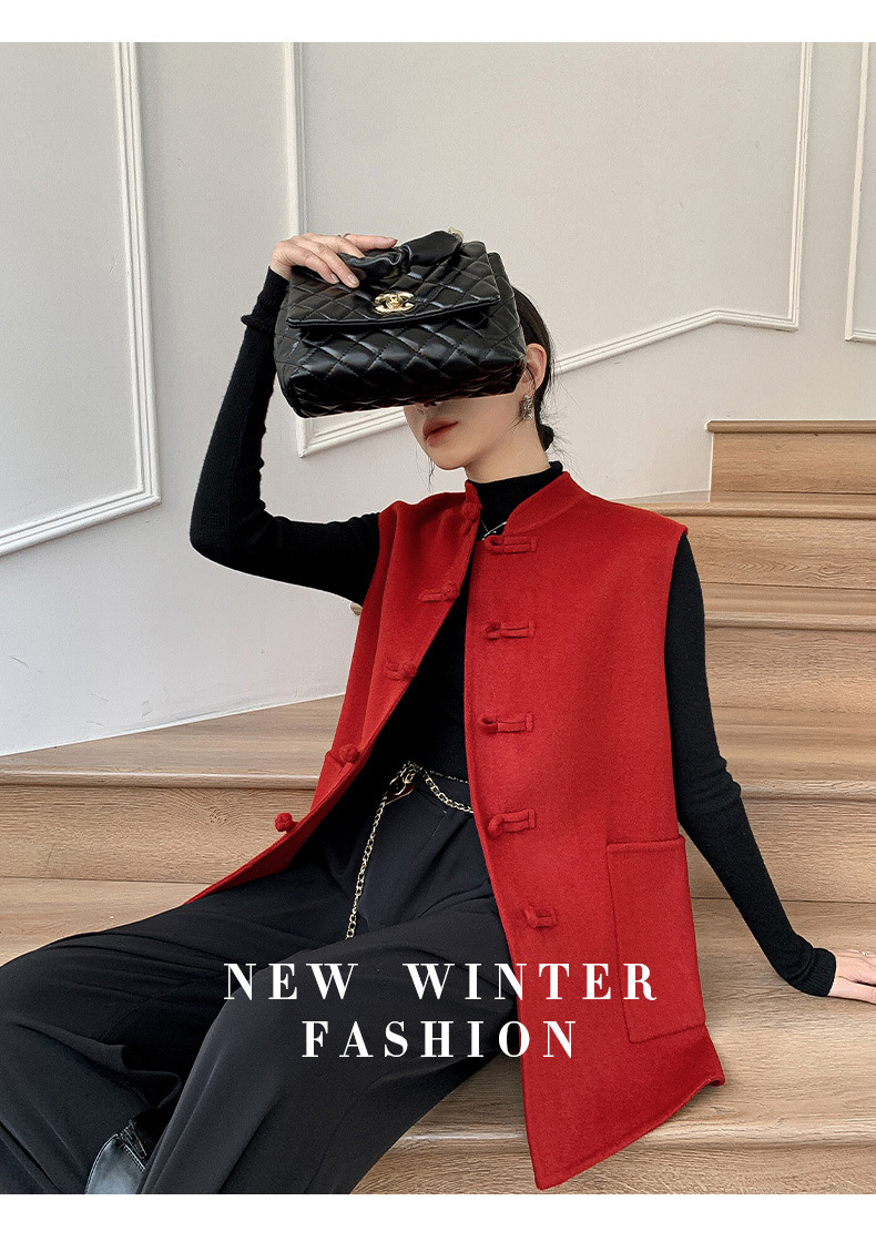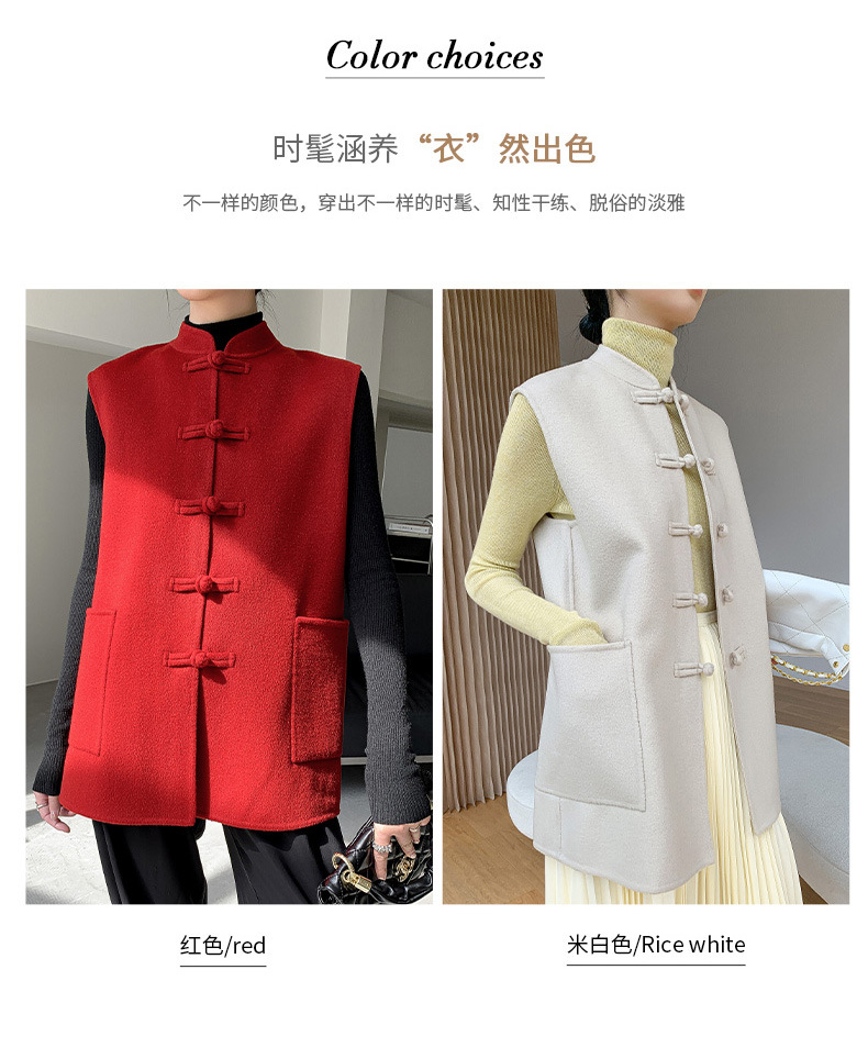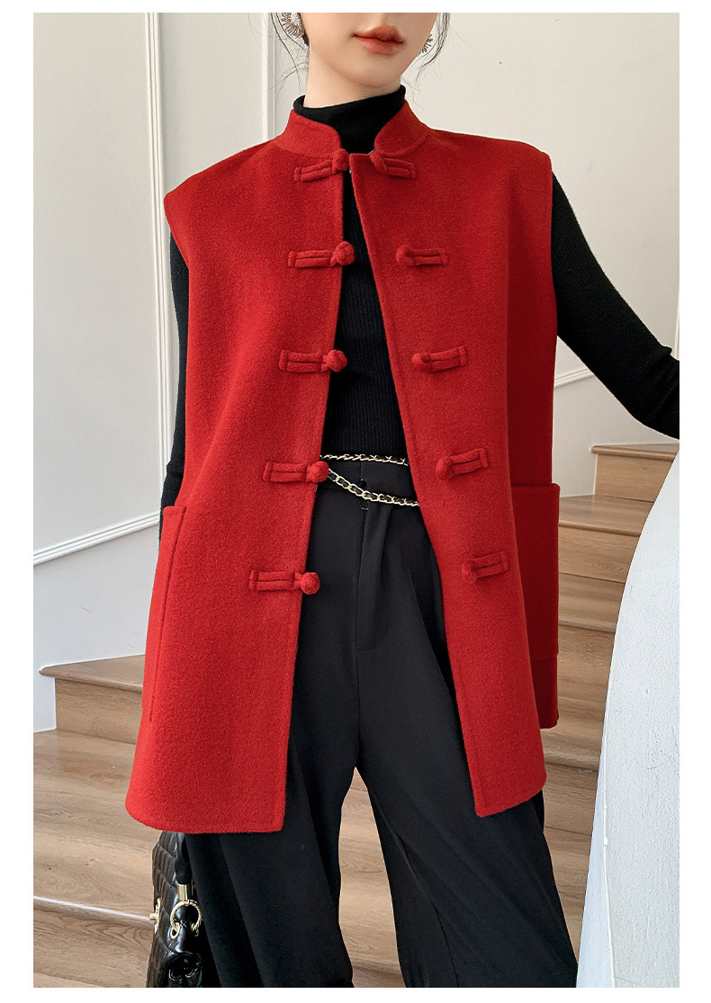 신중국풍 단추 장식 여성 조끼 양면 울 조끼 민족풍 레트로 스타일 슬림핏 상의스토어 가기