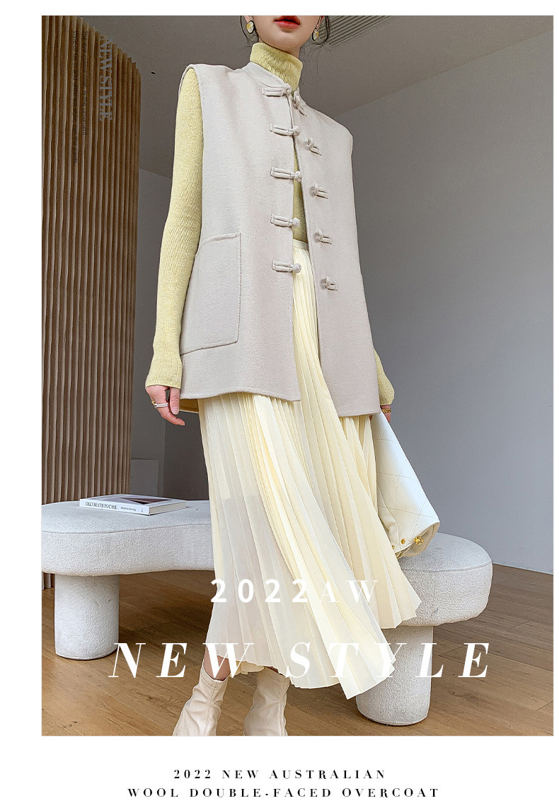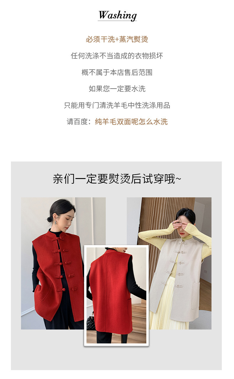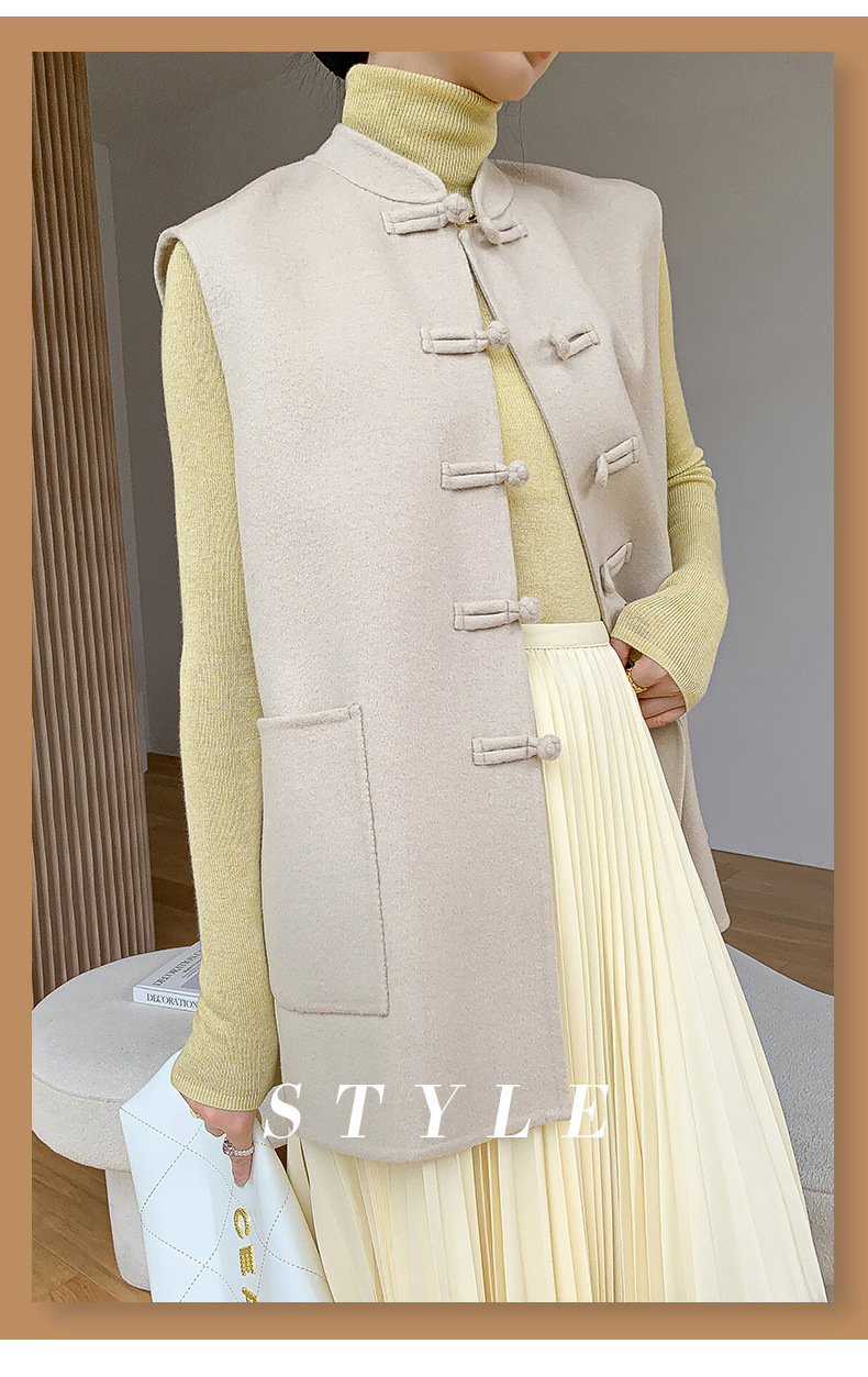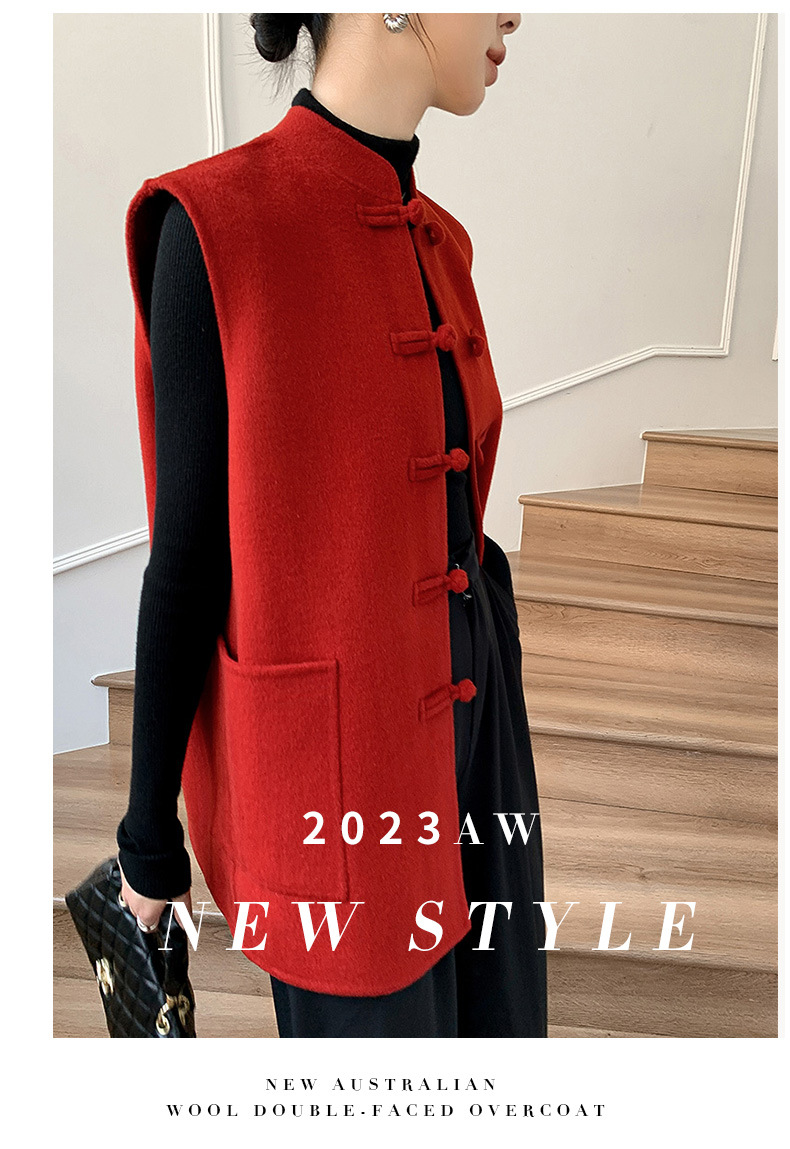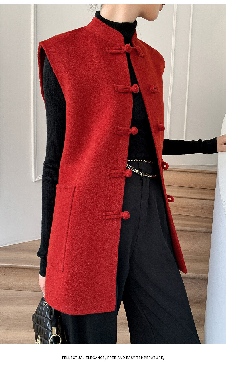 신중국풍 단추 장식 여성 조끼 양면 울 조끼 민족풍 레트로 스타일 슬림핏 상의스토어 가기